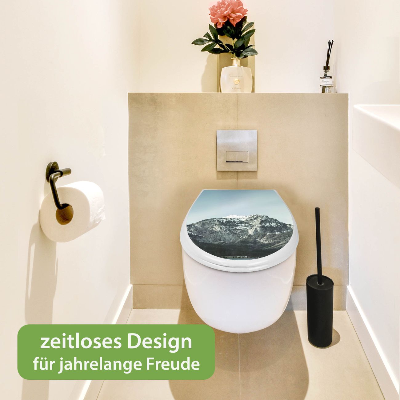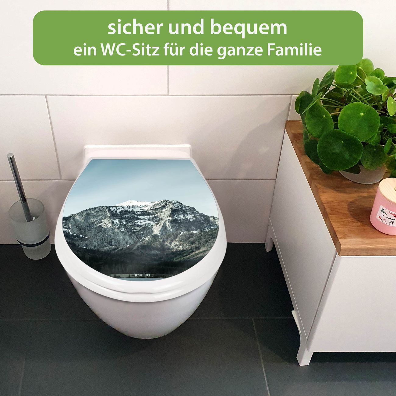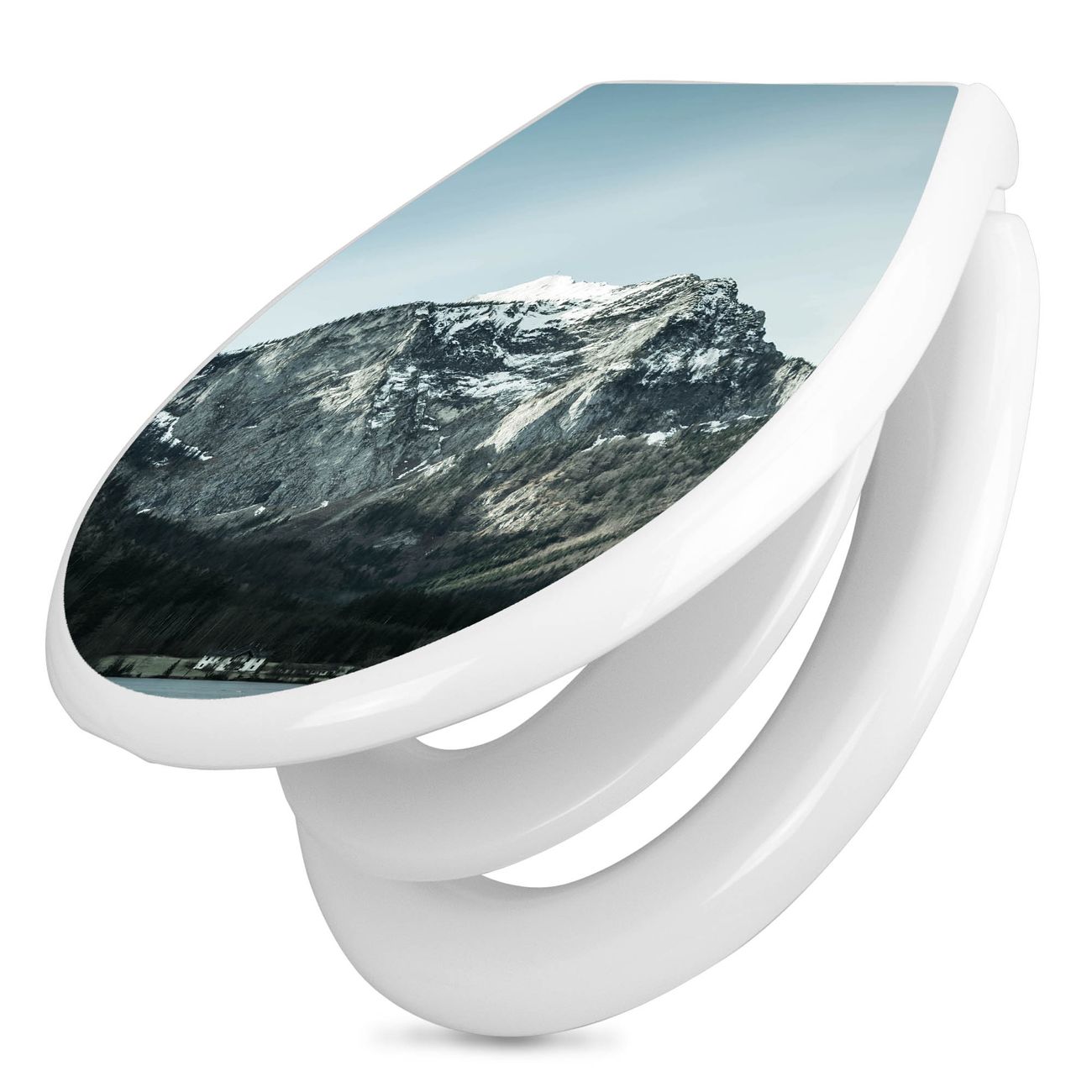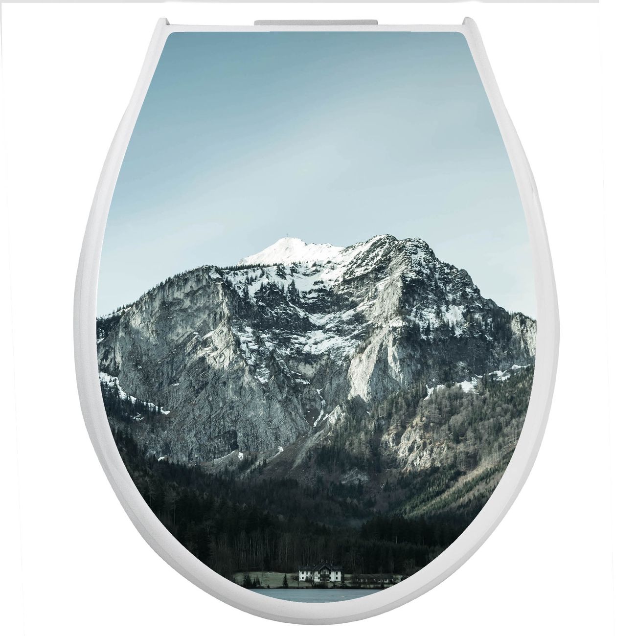 Toilettendeckel weiß mit Absenkautomatik Motiv Im Schatten des Bergs