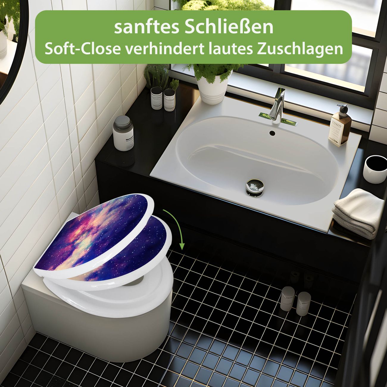 Toilettendeckel weiß mit Absenkautomatik Motiv Im Weltall 1