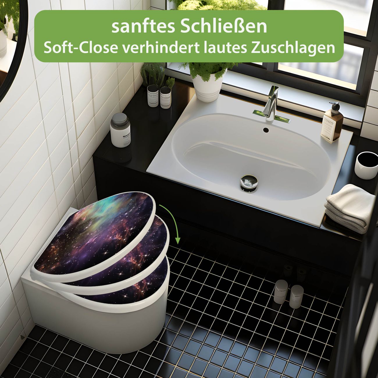 Toilettendeckel weiß mit Absenkautomatik Motiv Im Weltall 2