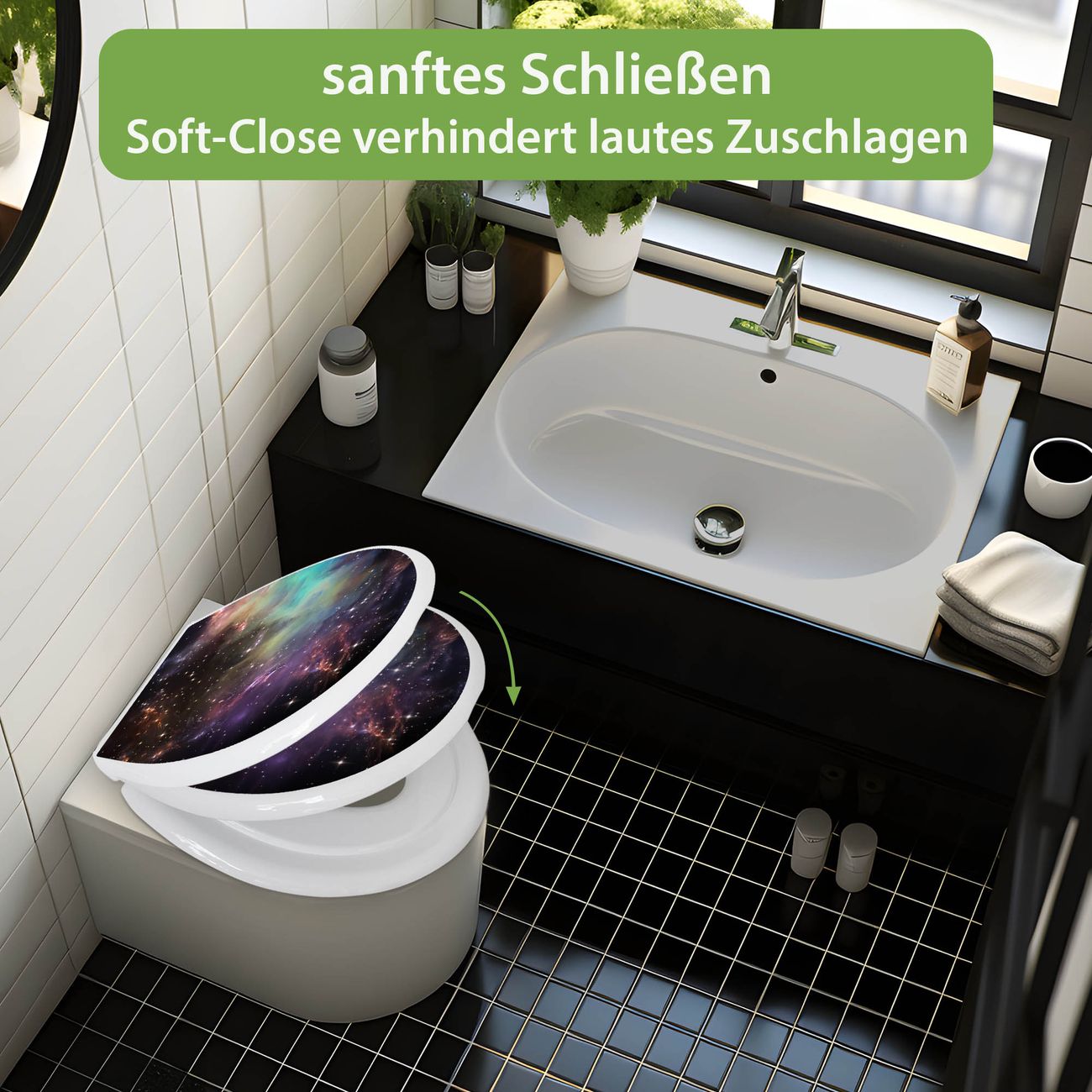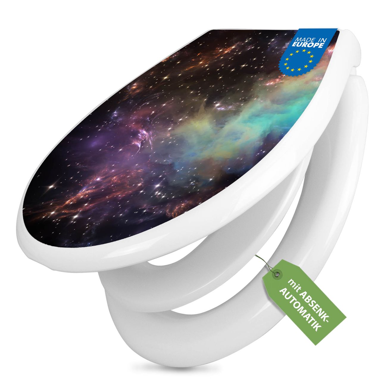 Toilettendeckel weiß mit Absenkautomatik Motiv Im Weltall 2