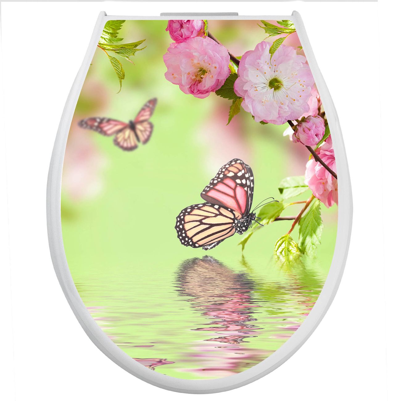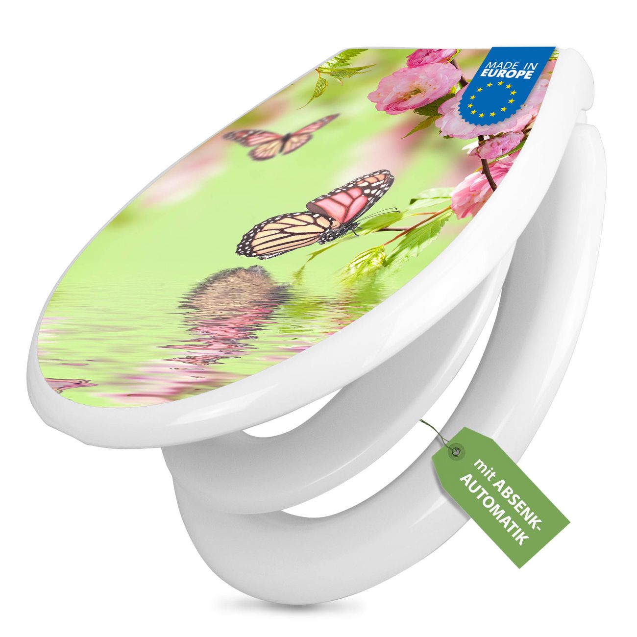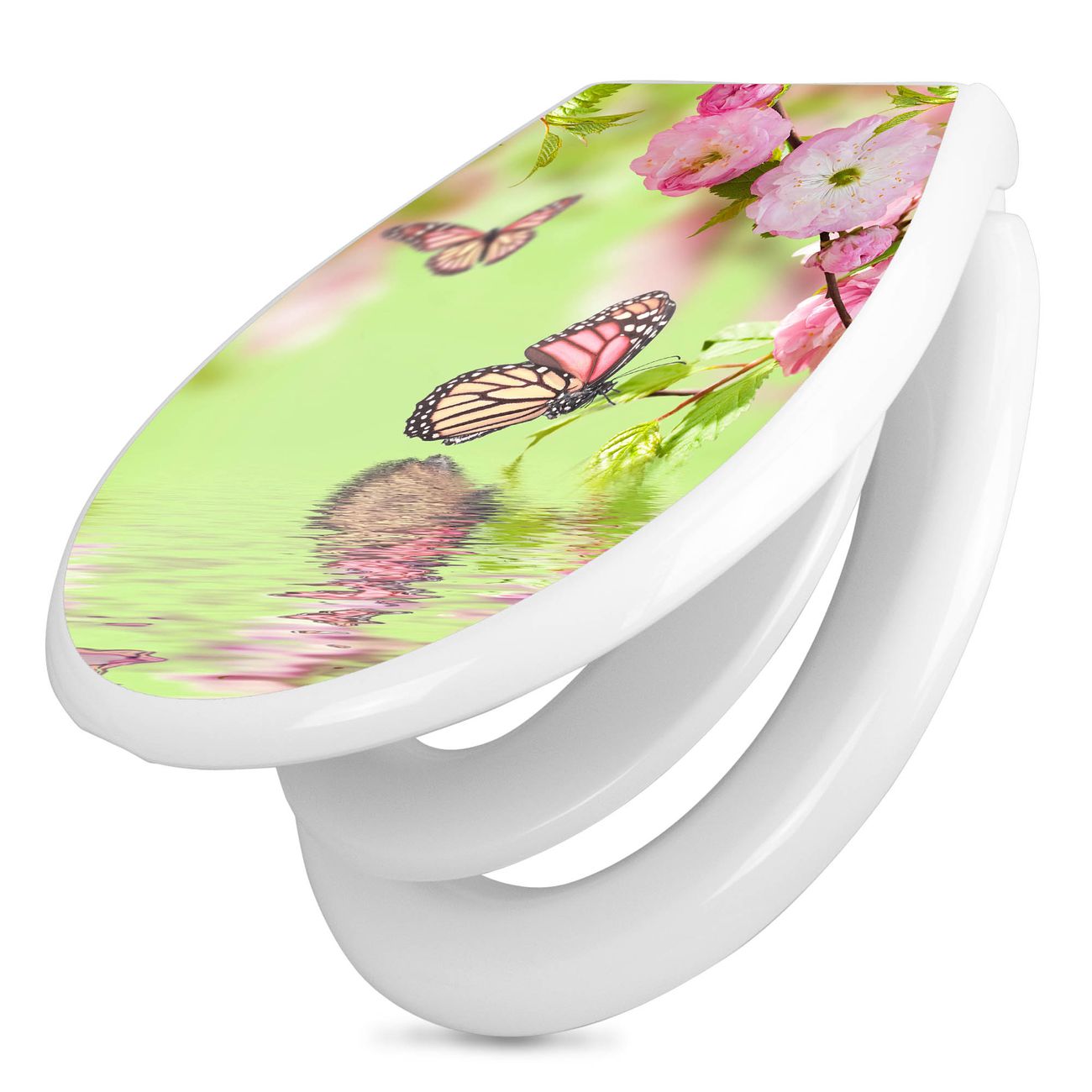 Toilettendeckel weiß mit Absenkautomatik Motiv Japanische Kirschblüte
