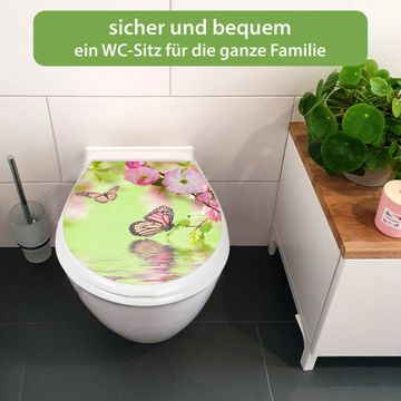 FUNKTION:Mit dem banjado Familien WC Sitz mit Absenkautomatik und dem Motiv Motiv Japanische Kirschblüte verbinden Sie Design mit Funktionalität. Sie erhalten den Toilettendeckel in bewährt guter Qualität mit Montagematerial passend auf alle Euro-WC-Becken. Die Gesamtgröße beträgt 37,1cm x 44,9cm x 5cm, die Grundfarbe ist weiß.</p> DESIGN:Der Klodeckel in weiß mit Motiv Motiv Japanische Kirschblüte hat eine ansprechende Optik, eine besondere Form und ist sehr stabil. Das Motiv besteht aus einer farbbrillianten Motivfolie, die durch ein Schutzlaminat zusätzlich vor Kratzern schützt. Der integrierte Kindersitz fügt sich harmonisch ein. DETAILS:Der Toilettensitz mit Soft Close besteht aus hochwertigem Polypropylen, ist geruchlos, ungiftig und kann mit handelsüblicher Seife gereinigt werden. Die Montage kann von von oben oder von unten erfolgen und ist kinderleicht. NUTZEN:Mit Hilfe der detaillierten Aufbauanleitung ermöglichen wir eine schnelle und unkomplizierte Montage. Die banjado Klobrille ist universell geeignet für alle Euro-WC-Schüsseln. Der Kindersitz kann unkompliziert entfernt werden. BANJADO:Ihr WC-Deckel wird in Sachsen in einer kleinen Manufaktur von Hand veredelt. Die Motivfolie ist lösungsmittelfrei und schutzlaminiert für einen langen Halt. Wir wünschen viel Freude bei der Auswahl eines schönen Motivs.