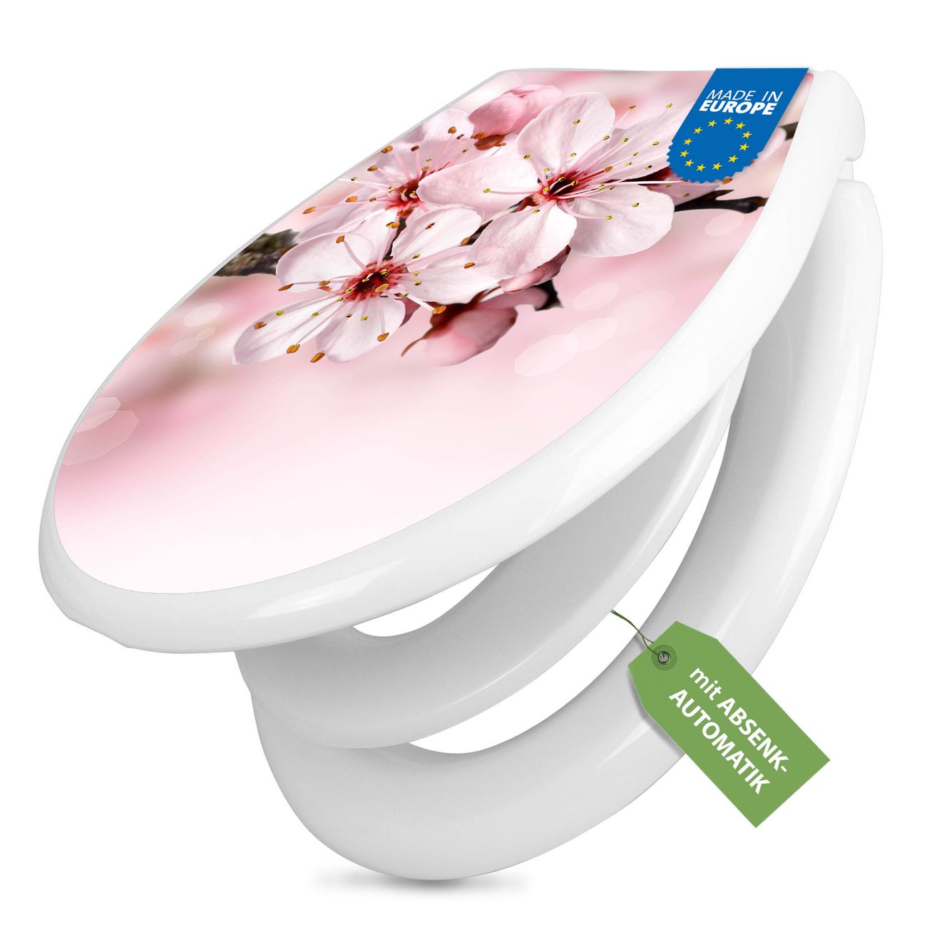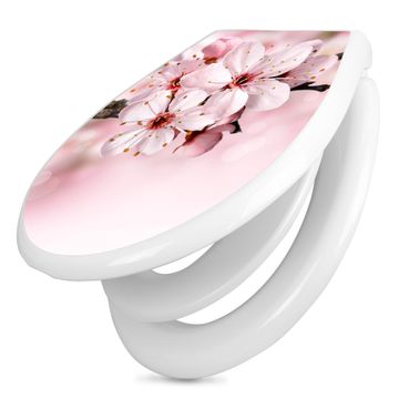 Toilettendeckel weiß mit Absenkautomatik Motiv Japanische Kirsche