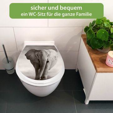 FUNKTION:Mit dem banjado Familien WC Sitz mit Absenkautomatik und dem Motiv Motiv Joseline verbinden Sie Design mit Funktionalität. Sie erhalten den Toilettendeckel in bewährt guter Qualität mit Montagematerial passend auf alle Euro-WC-Becken. Die Gesamtgröße beträgt 37,1cm x 44,9cm x 5cm, die Grundfarbe ist weiß.</p> DESIGN:Der Klodeckel in weiß mit Motiv Motiv Joseline hat eine ansprechende Optik, eine besondere Form und ist sehr stabil. Das Motiv besteht aus einer farbbrillianten Motivfolie, die durch ein Schutzlaminat zusätzlich vor Kratzern schützt. Der integrierte Kindersitz fügt sich harmonisch ein. DETAILS:Der Toilettensitz mit Soft Close besteht aus hochwertigem Polypropylen, ist geruchlos, ungiftig und kann mit handelsüblicher Seife gereinigt werden. Die Montage kann von von oben oder von unten erfolgen und ist kinderleicht. NUTZEN:Mit Hilfe der detaillierten Aufbauanleitung ermöglichen wir eine schnelle und unkomplizierte Montage. Die banjado Klobrille ist universell geeignet für alle Euro-WC-Schüsseln. Der Kindersitz kann unkompliziert entfernt werden. BANJADO:Ihr WC-Deckel wird in Sachsen in einer kleinen Manufaktur von Hand veredelt. Die Motivfolie ist lösungsmittelfrei und schutzlaminiert für einen langen Halt. Wir wünschen viel Freude bei der Auswahl eines schönen Motivs.