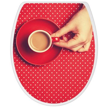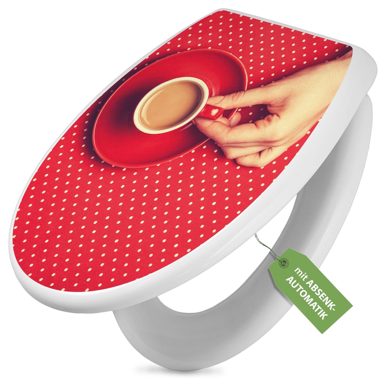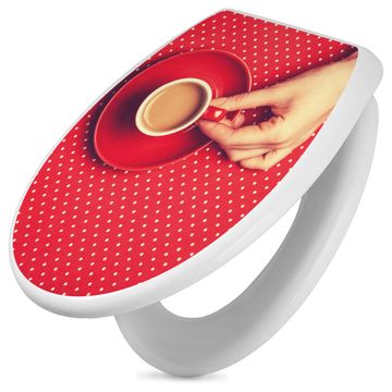 Toilettendeckel weiß mit Absenkautomatik Motiv Kaffee Rot Weiss