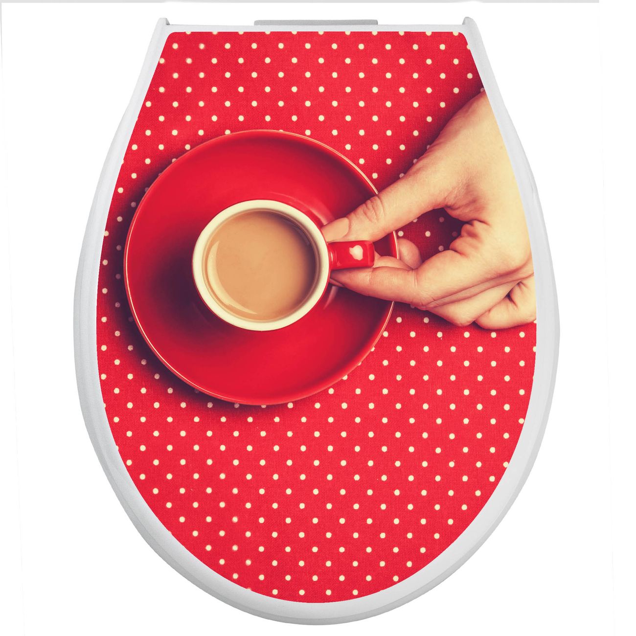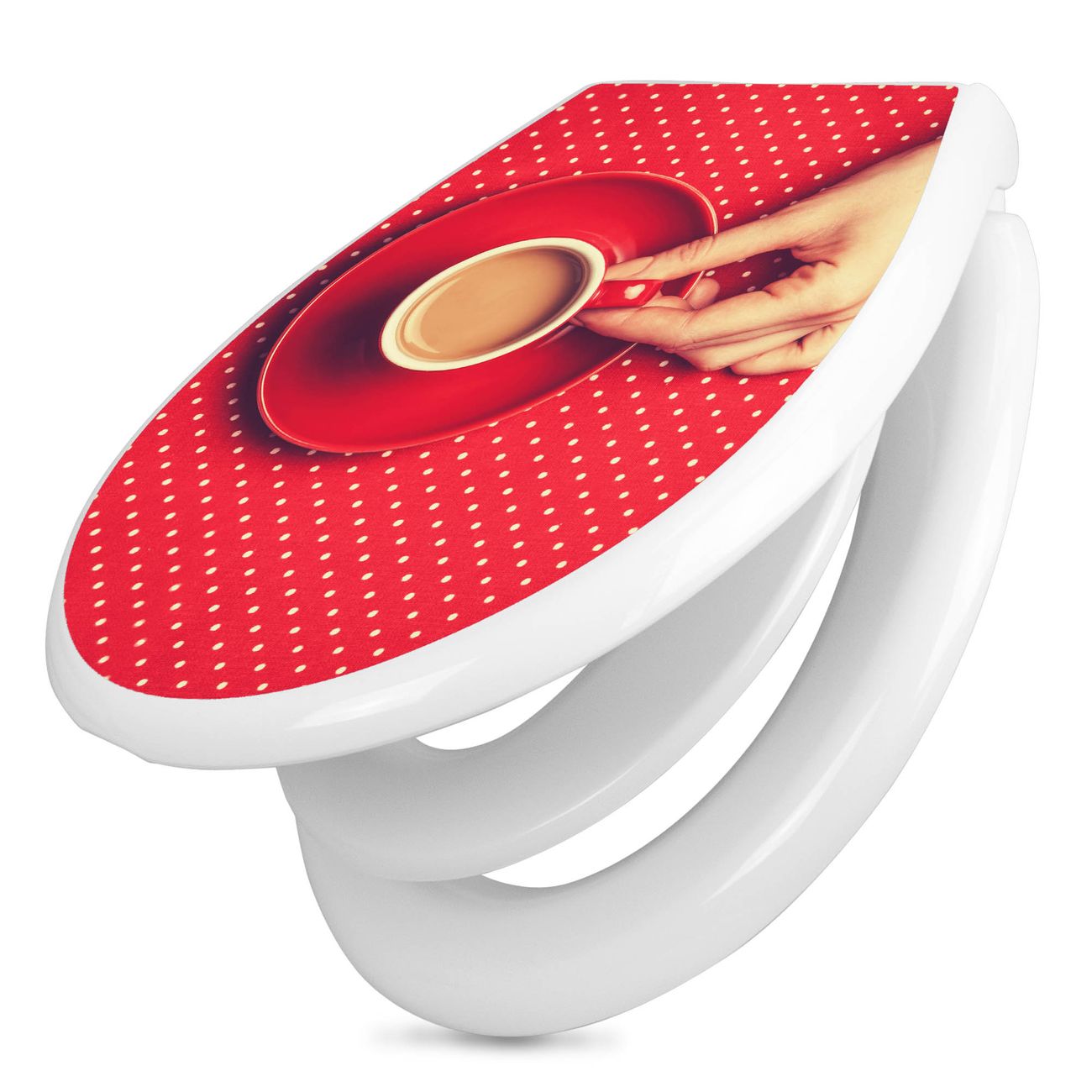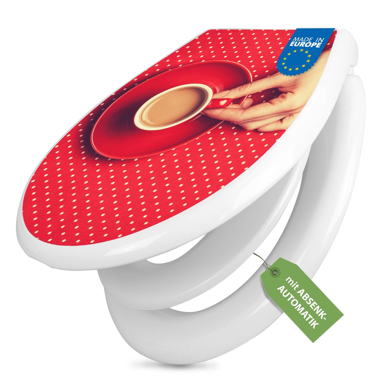 Toilettendeckel weiß mit Absenkautomatik Motiv Kaffee Rot Weiss