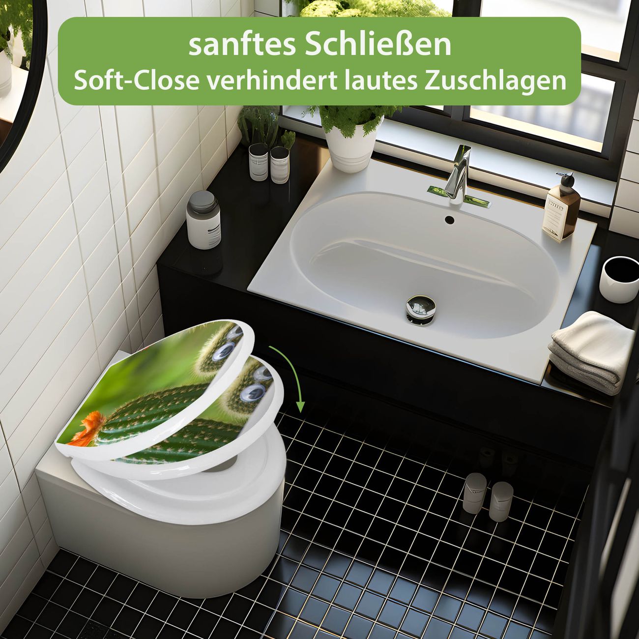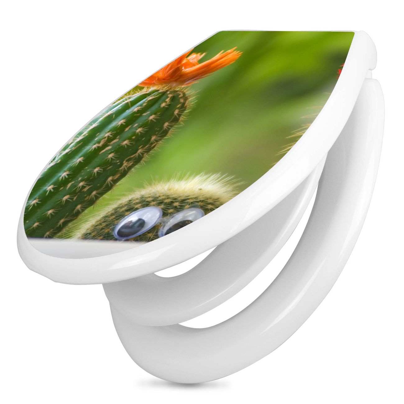 Toilettendeckel weiß mit Absenkautomatik Motiv Kakteen