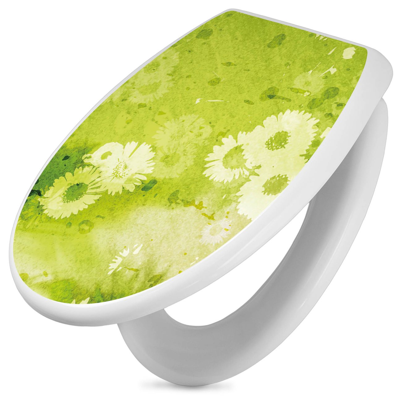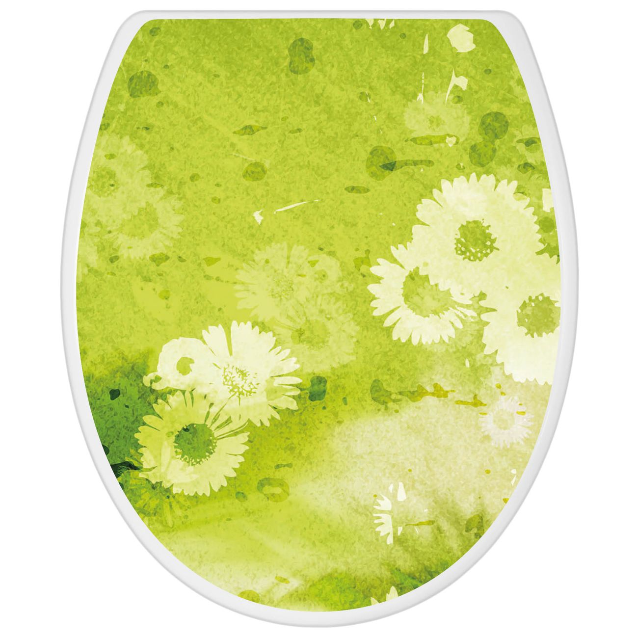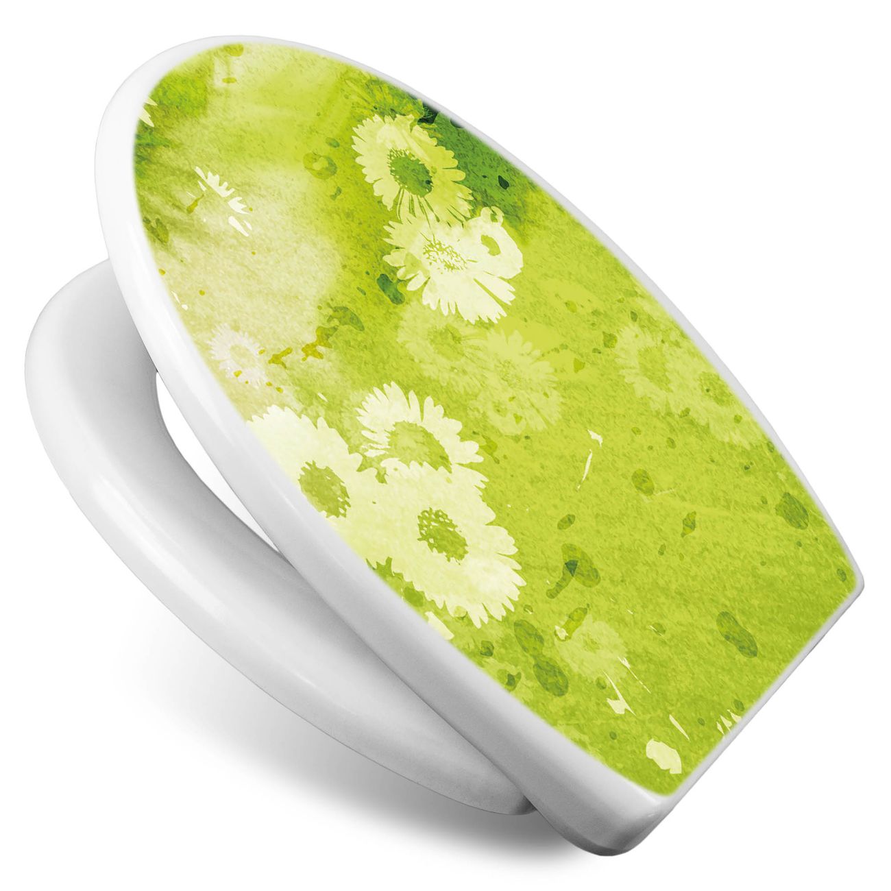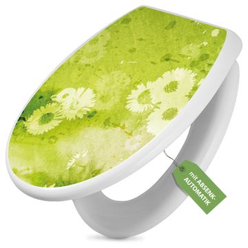 Toilettendeckel weiß mit Absenkautomatik Motiv Kamille Grün
