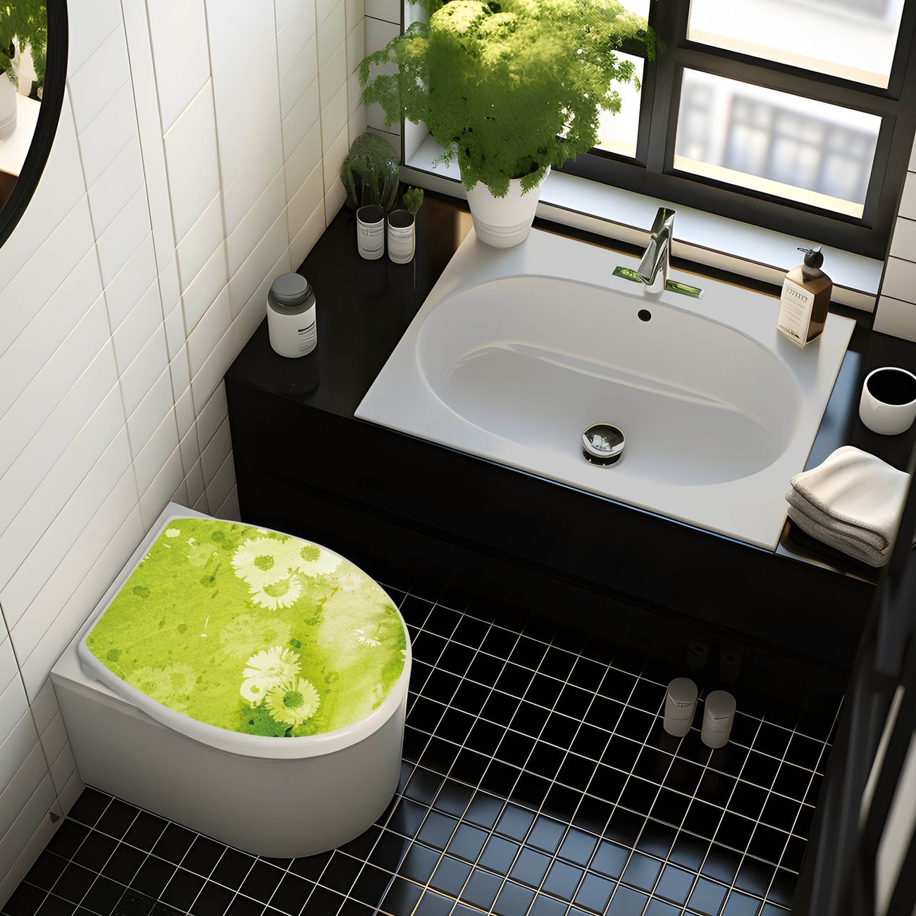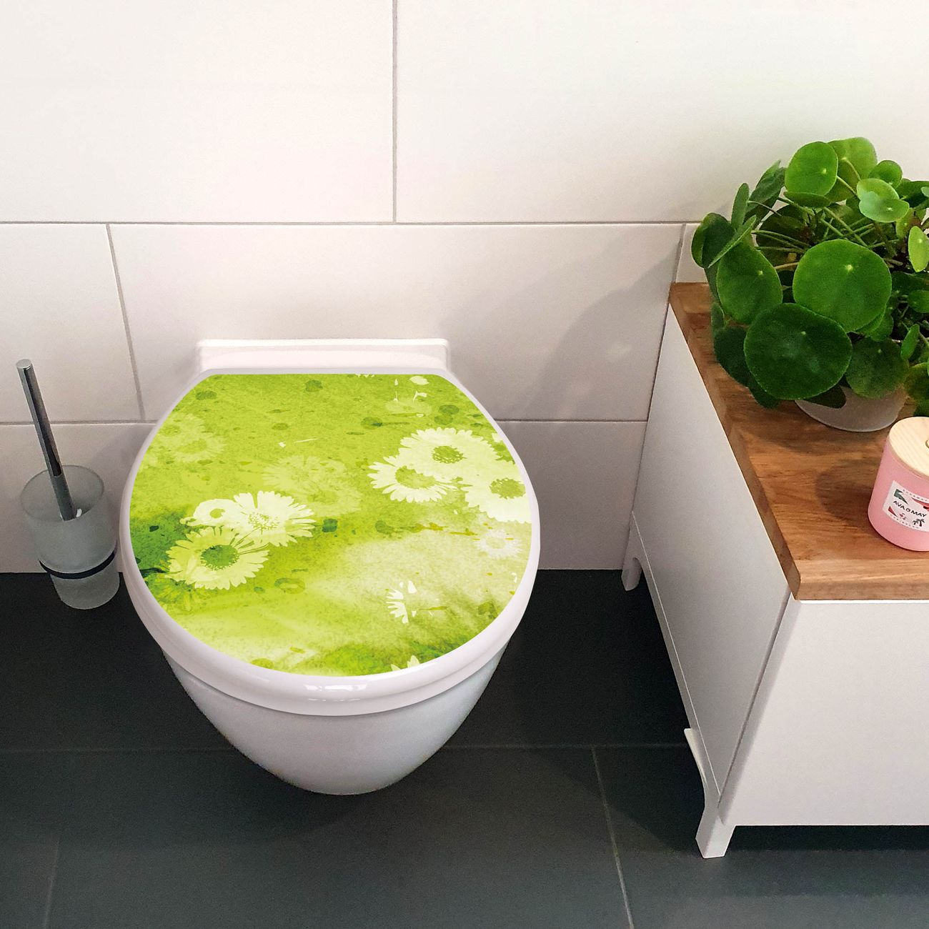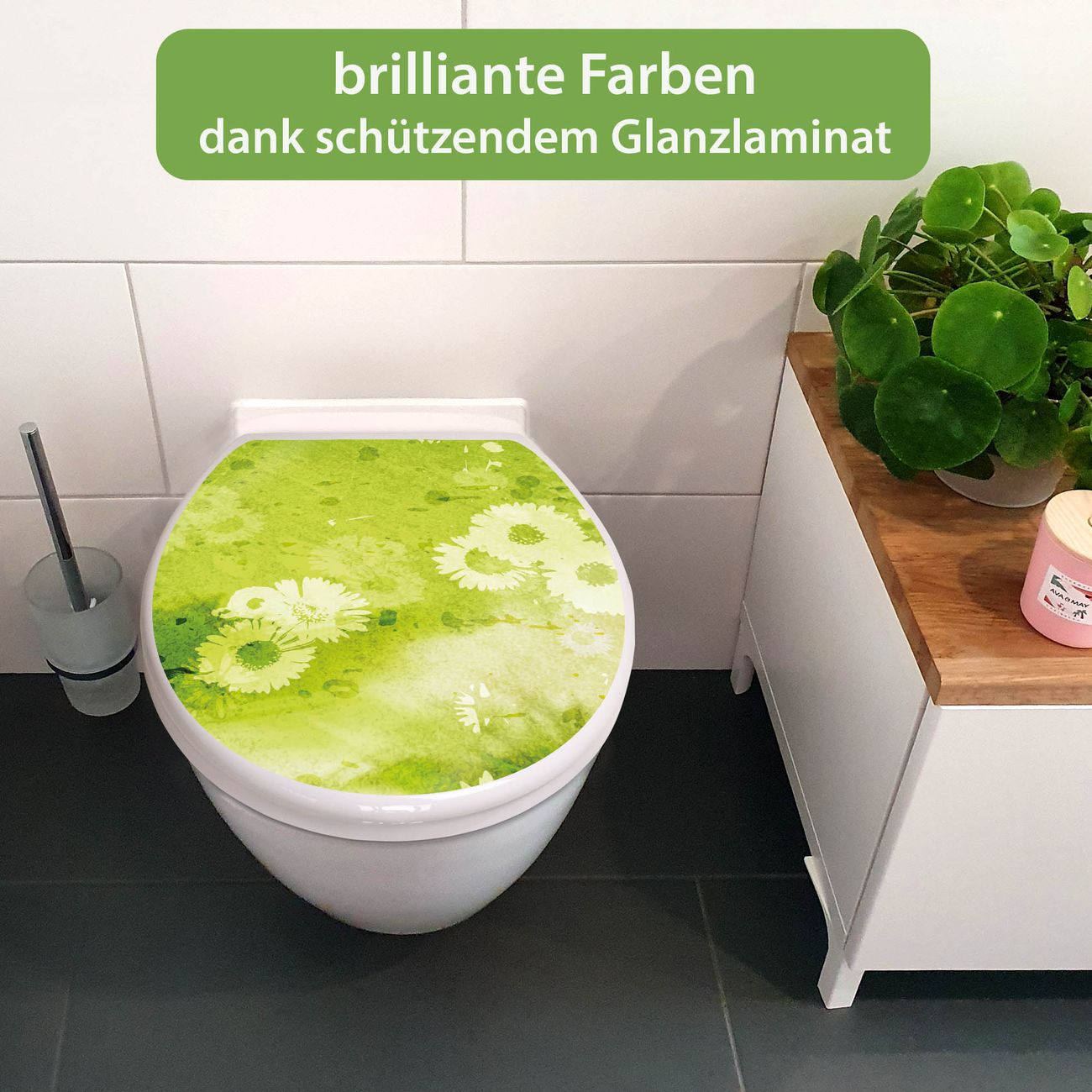 Toilettendeckel weiß mit Absenkautomatik Motiv Kamille Grün