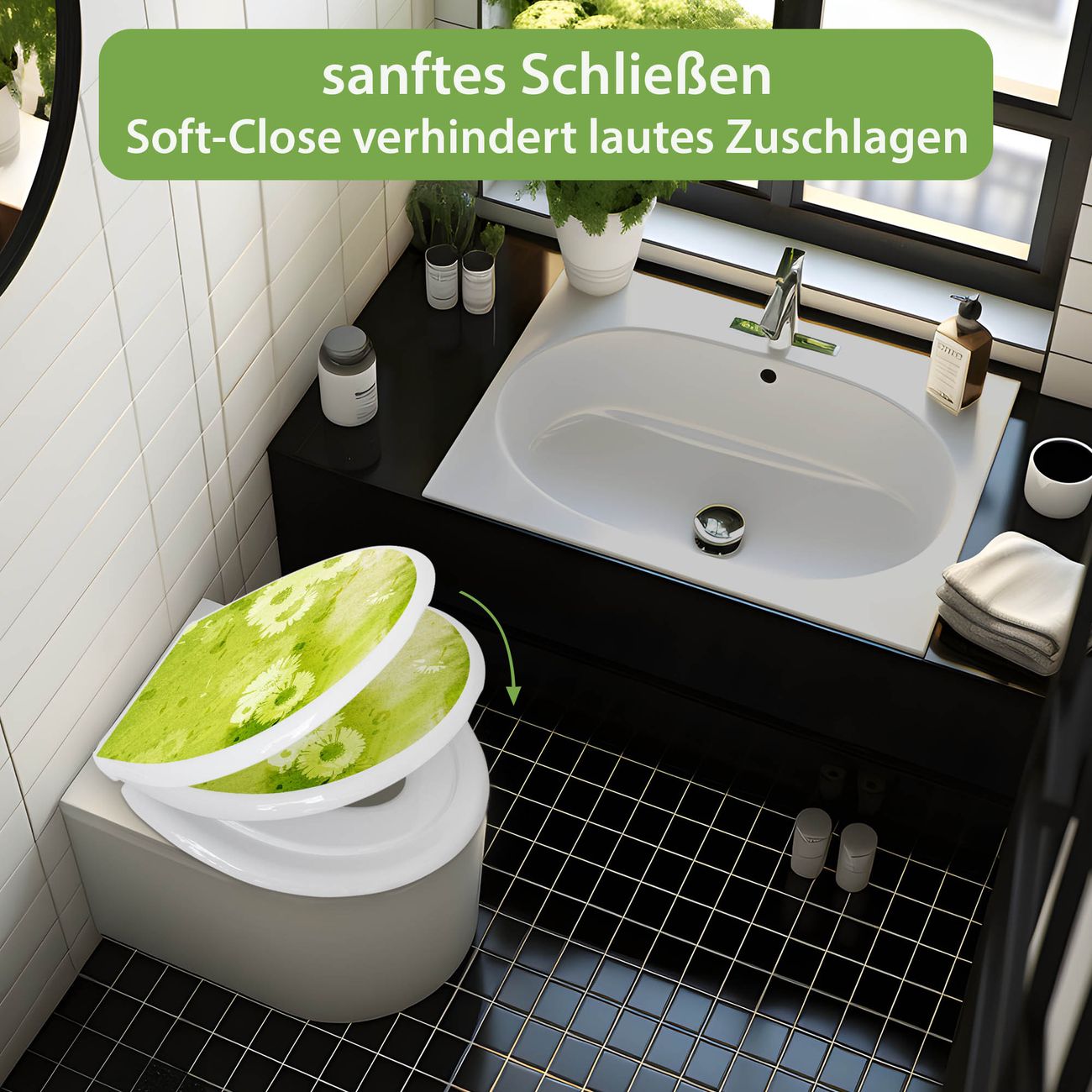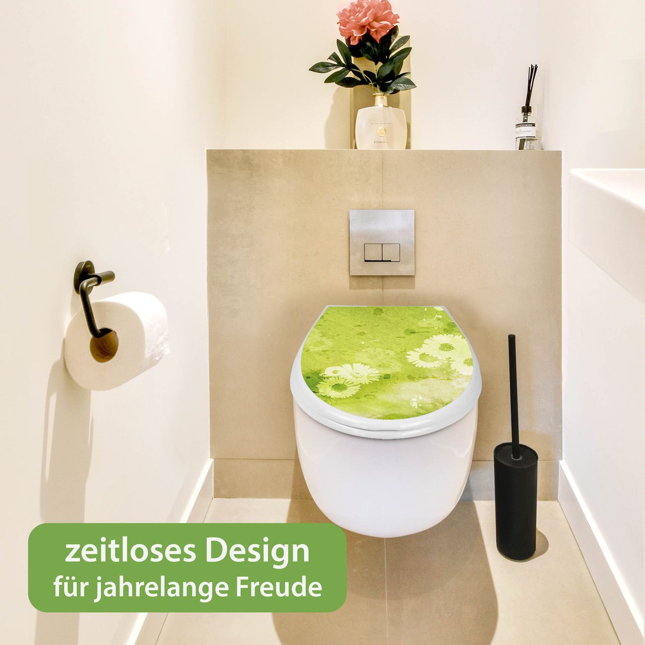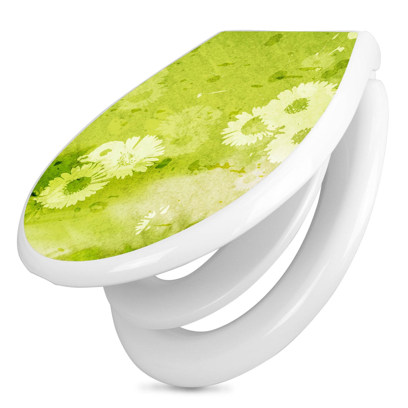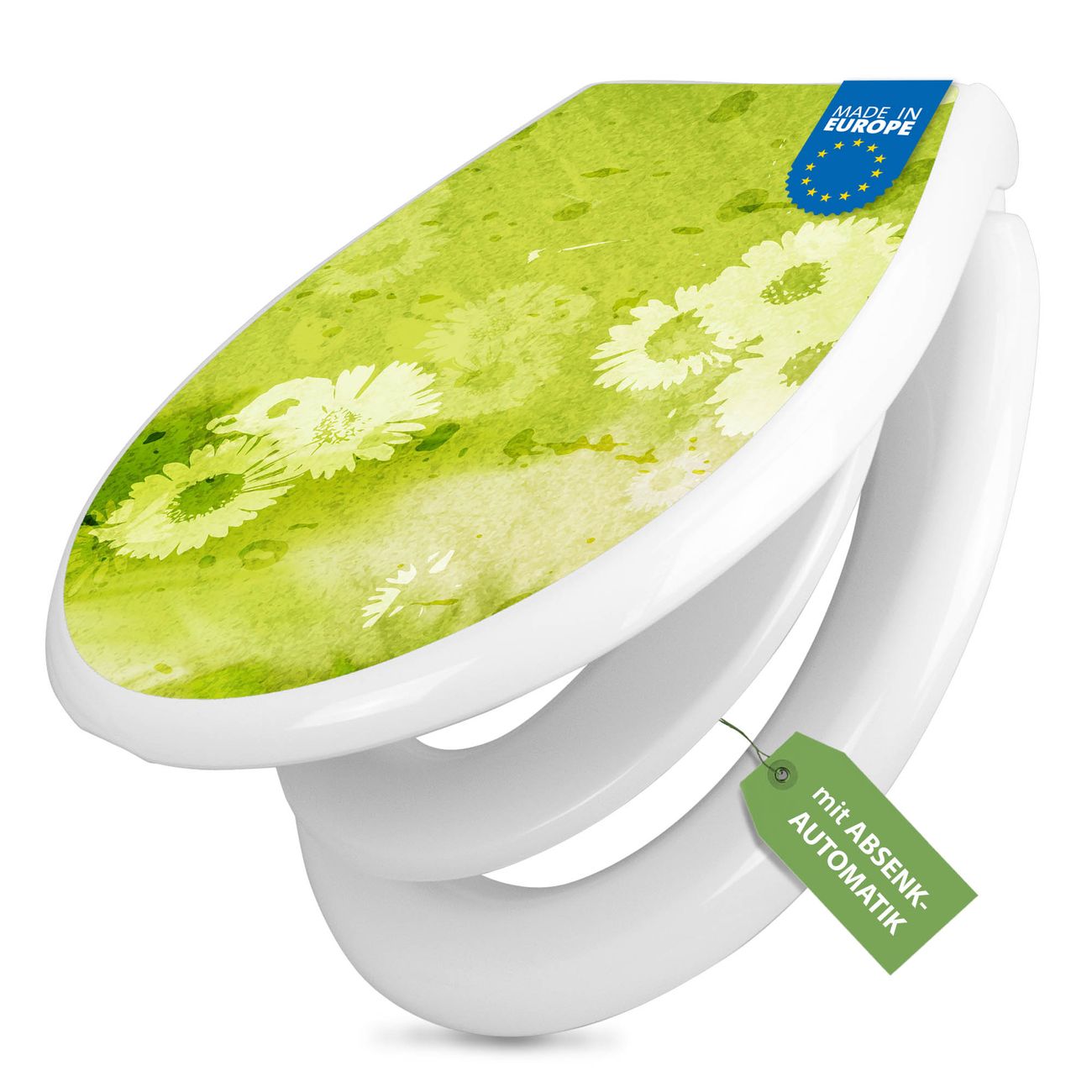 Toilettendeckel weiß mit Absenkautomatik Motiv Kamille Grün