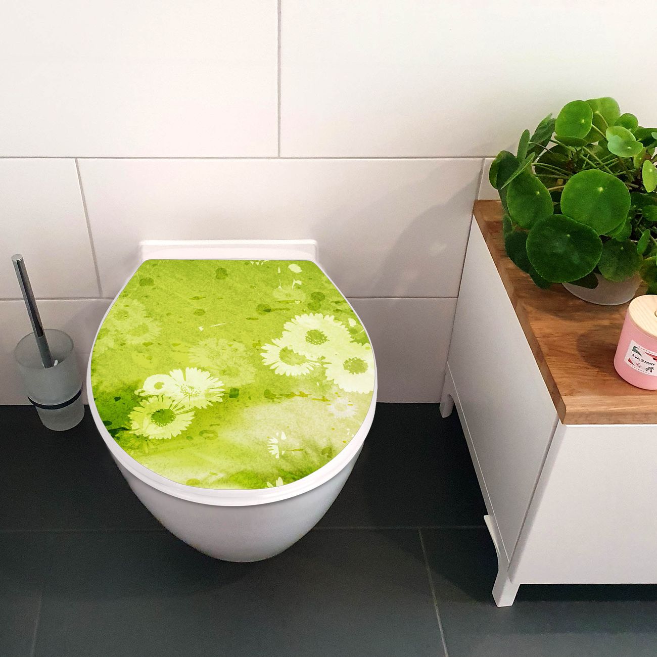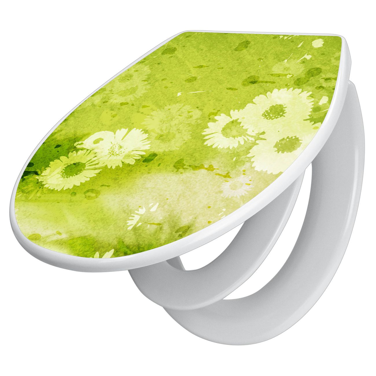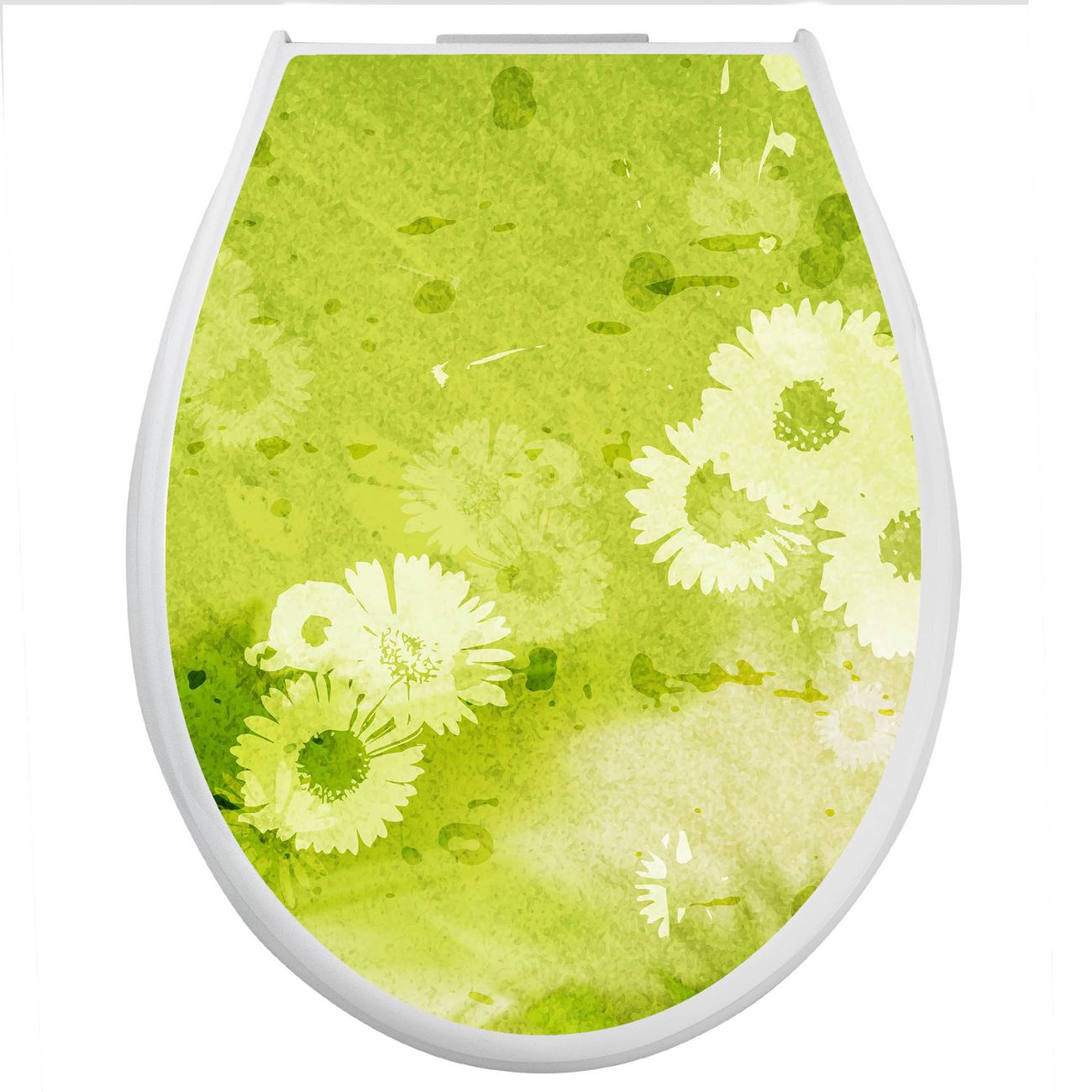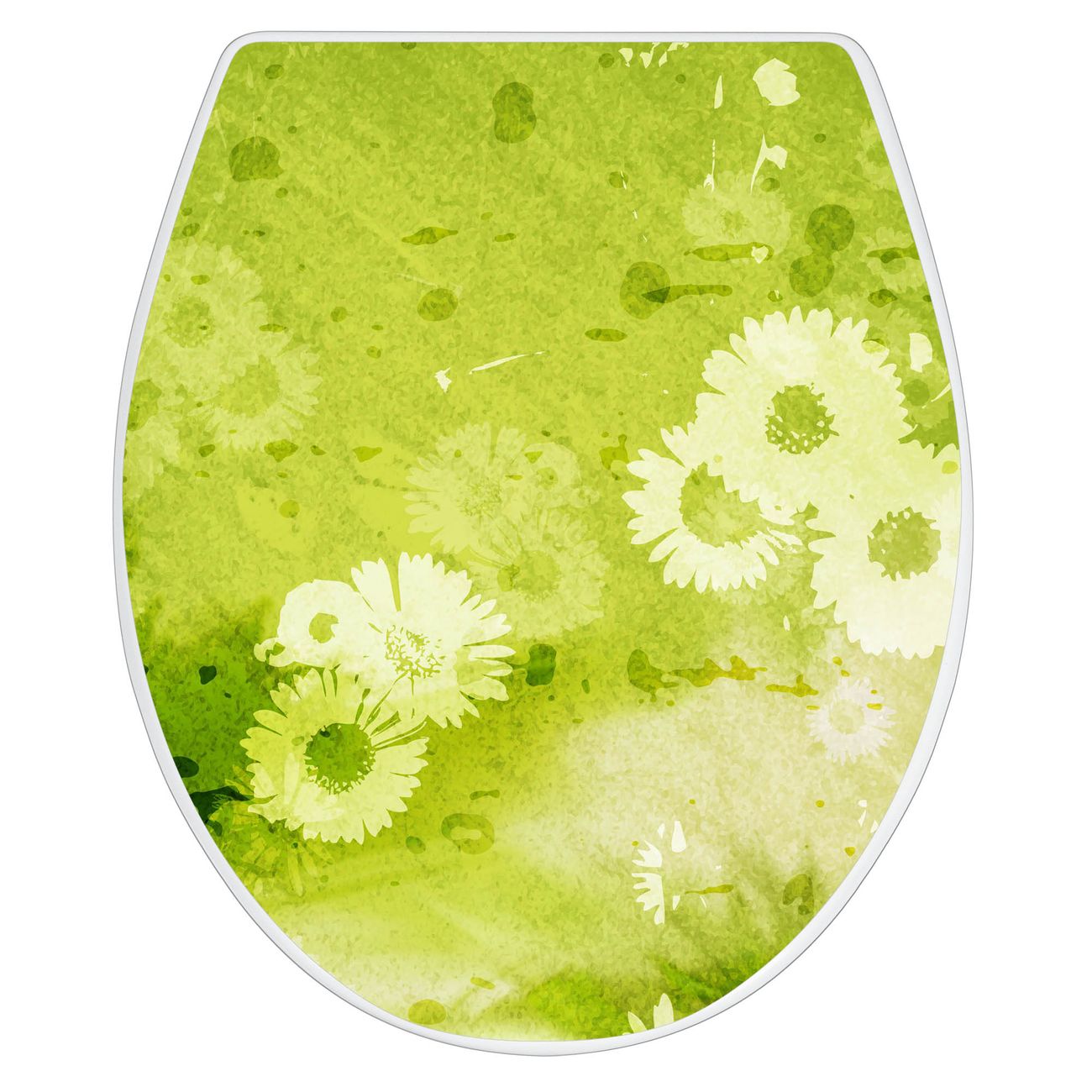 Toilettendeckel weiß mit Absenkautomatik Motiv Kamille Grün