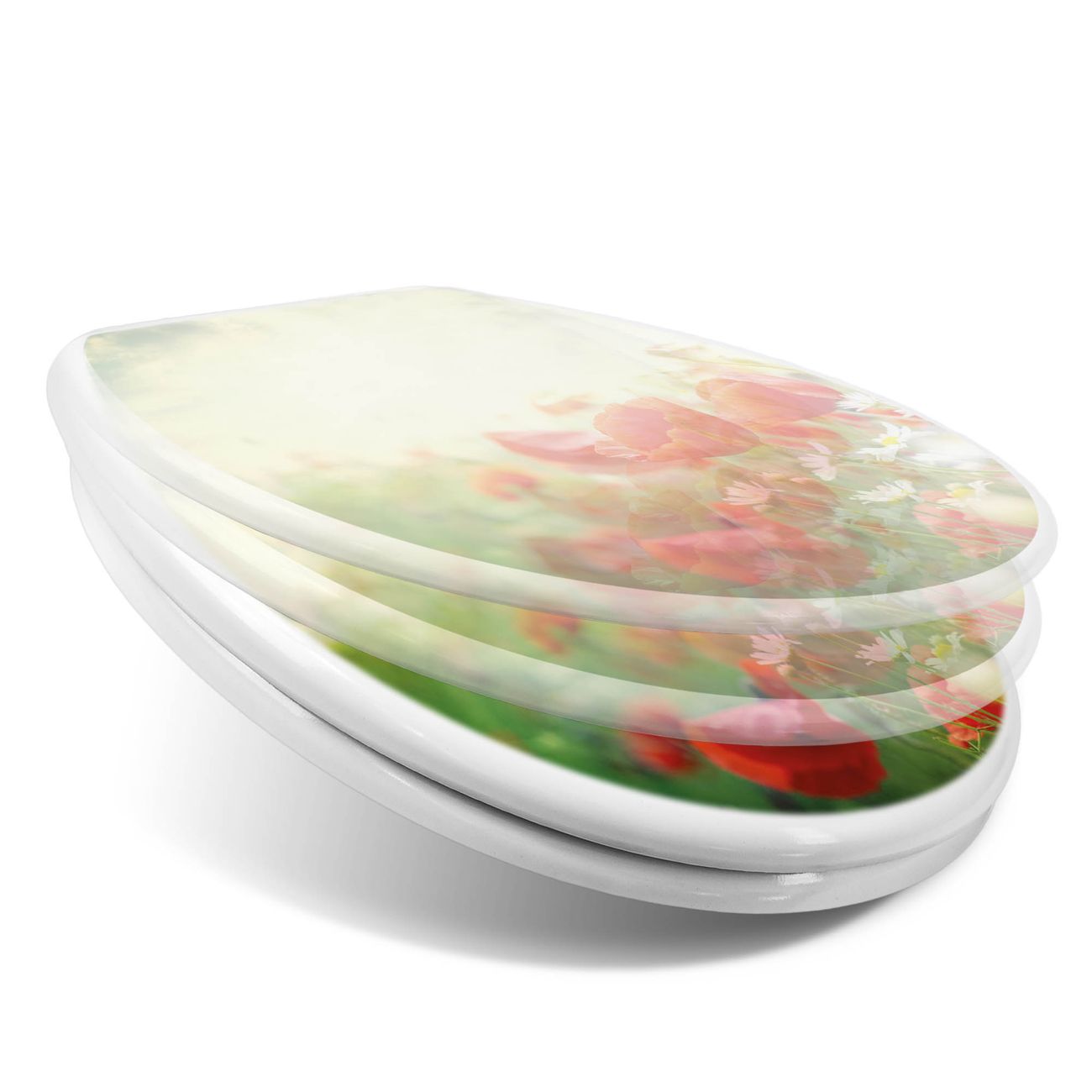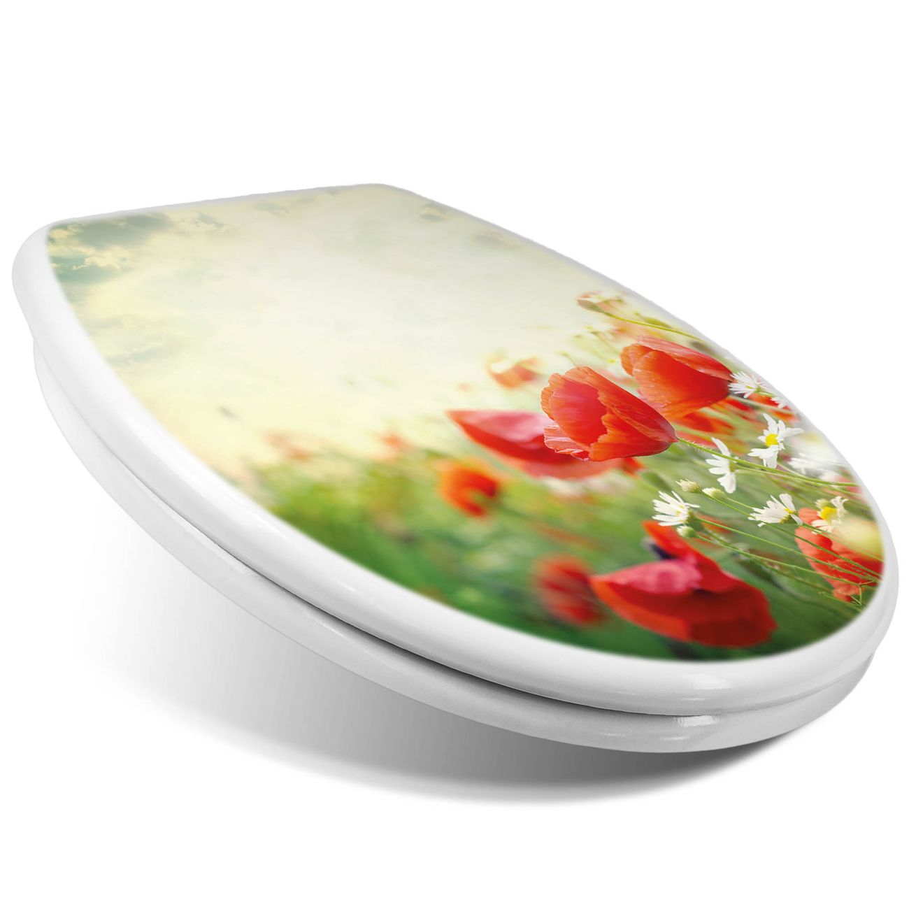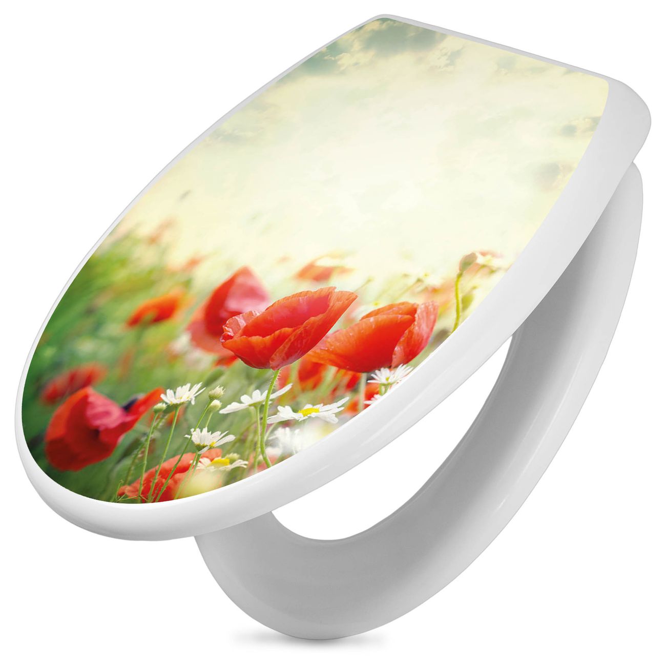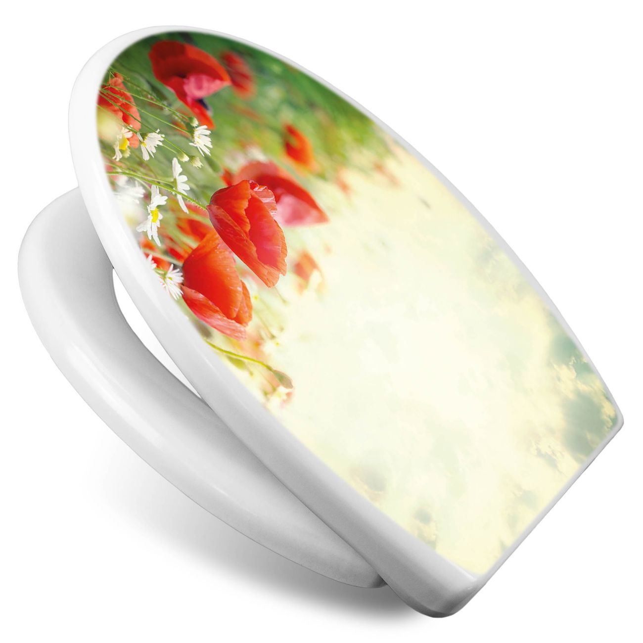 Toilettendeckel weiß mit Absenkautomatik Motiv Kamille Und Mohn