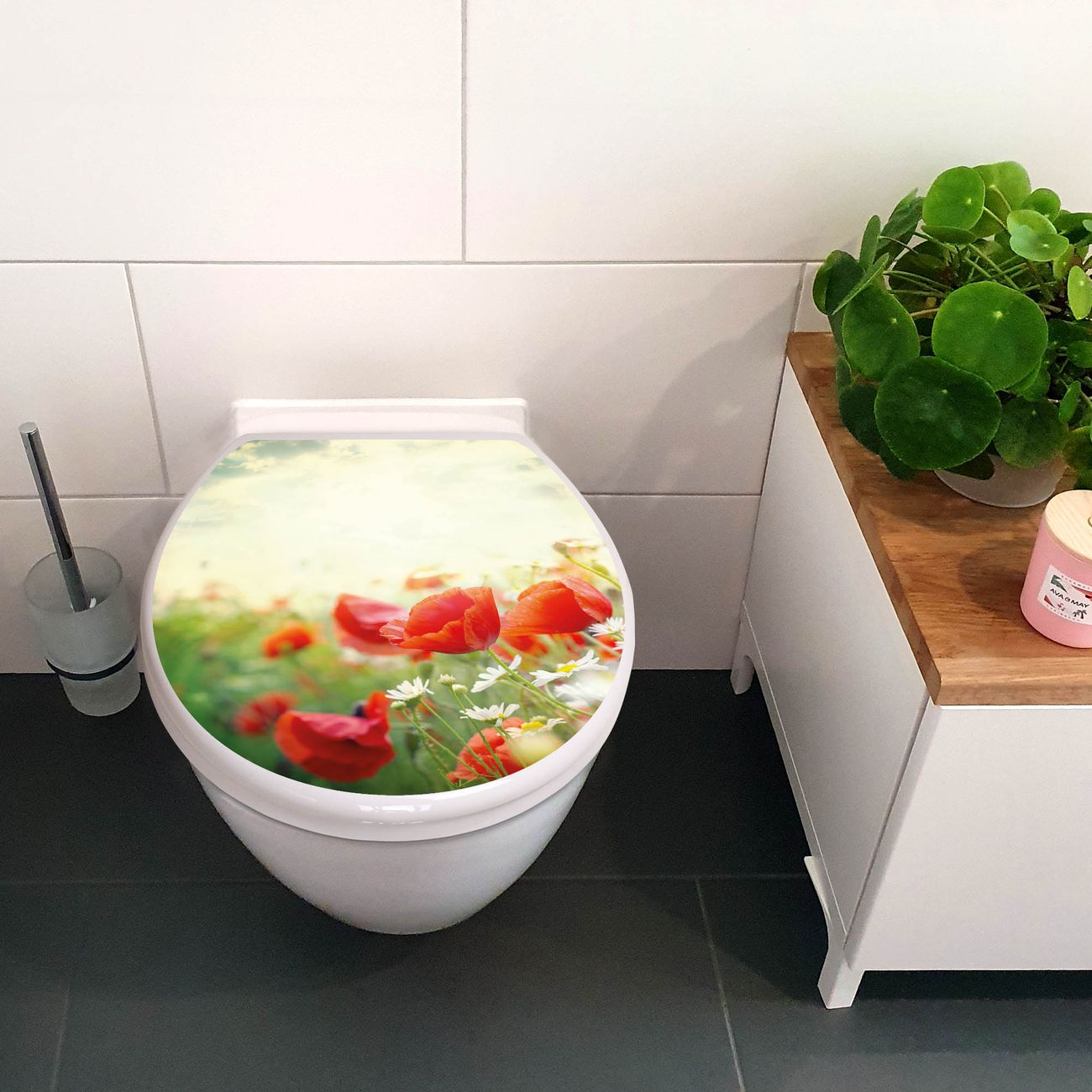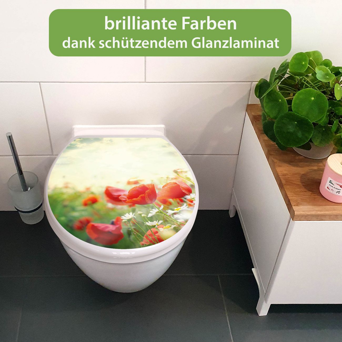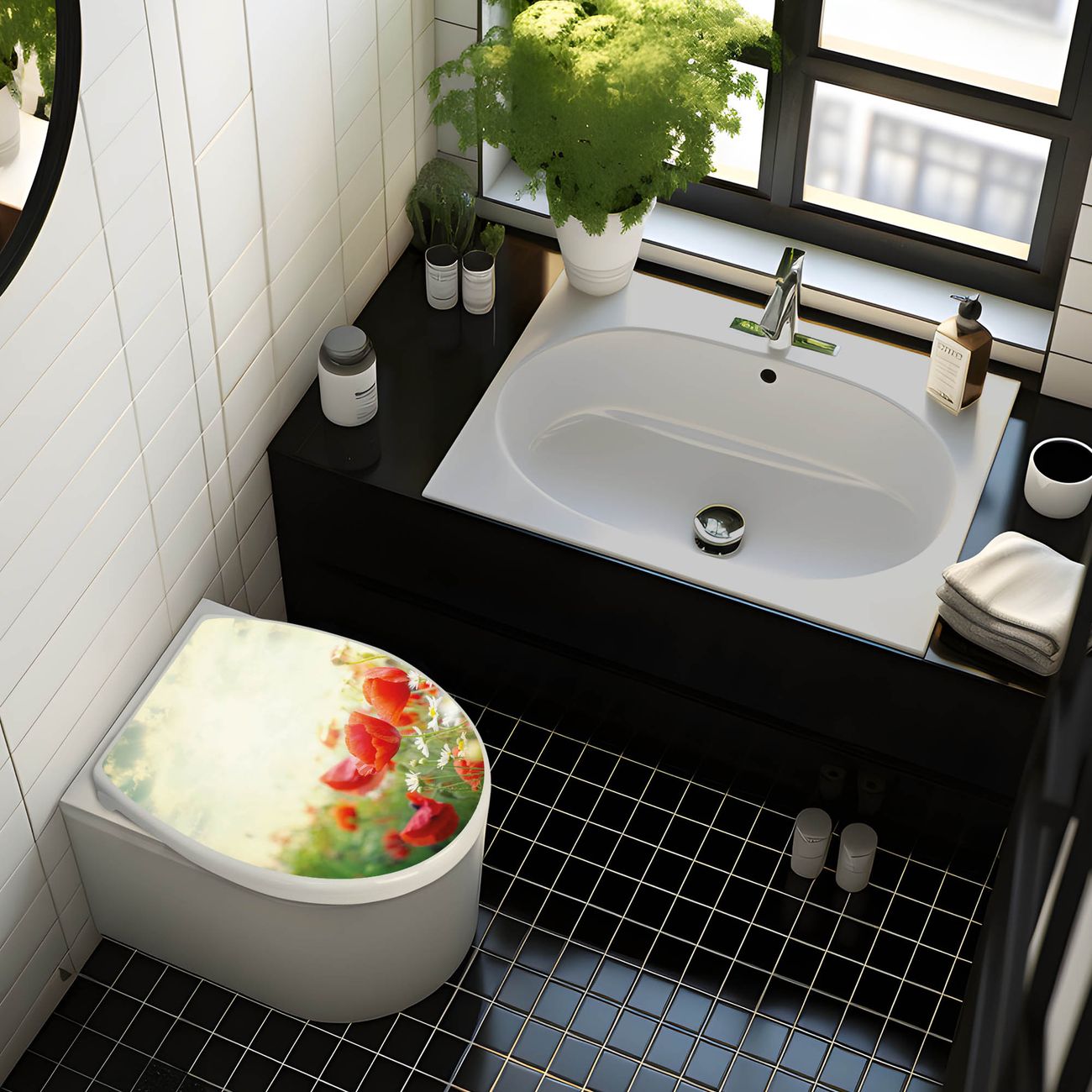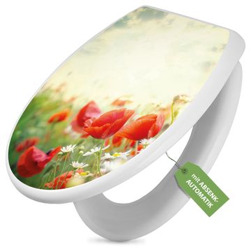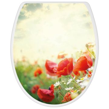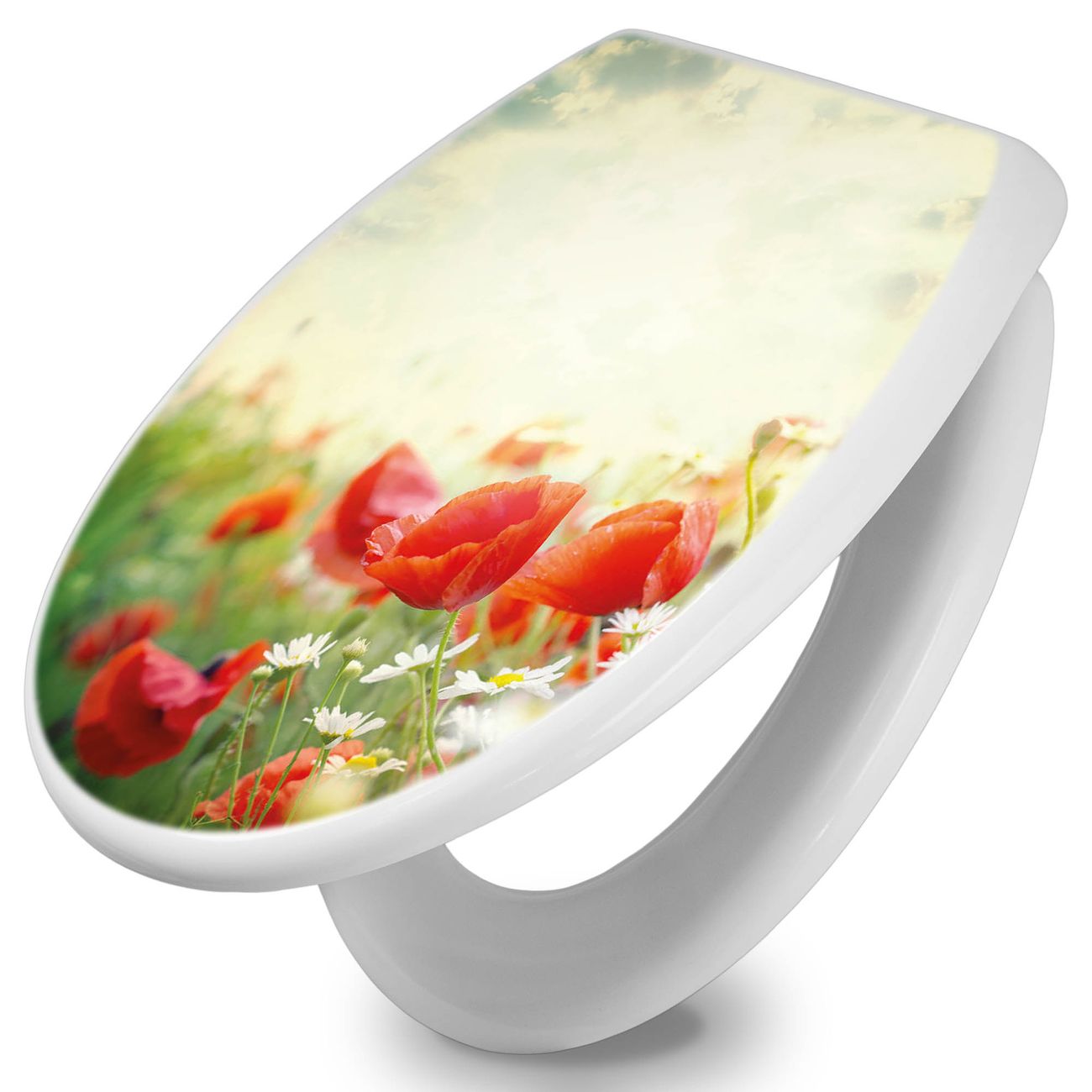 Toilettendeckel weiß mit Absenkautomatik Motiv Kamille Und Mohn