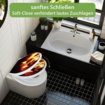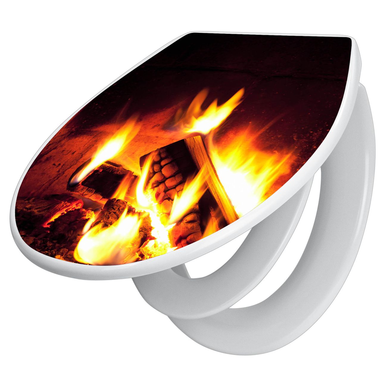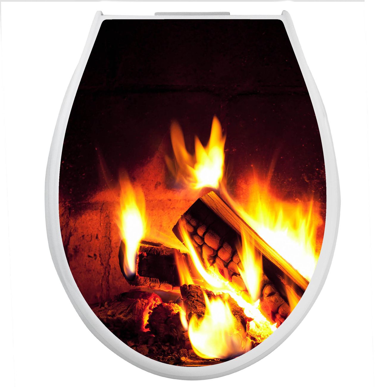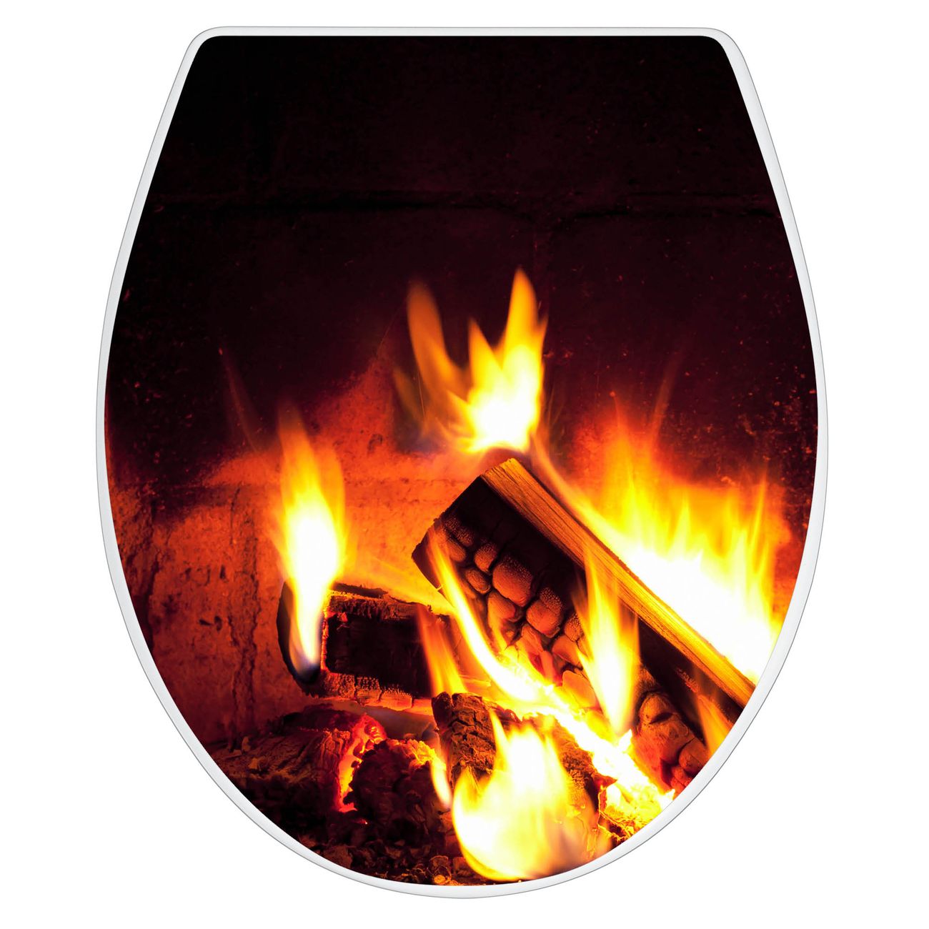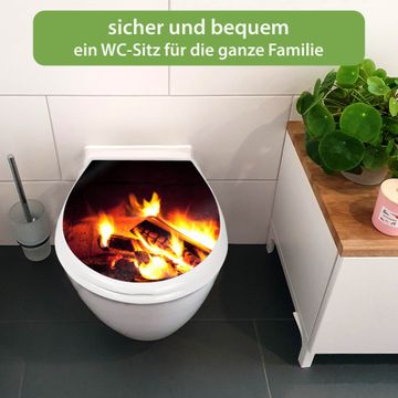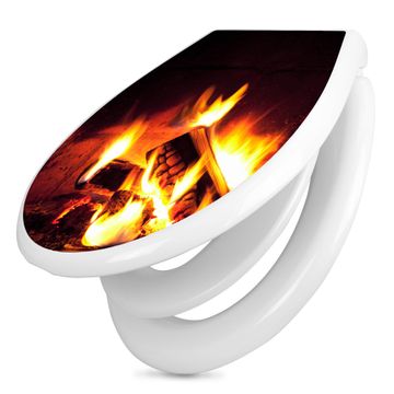 Toilettendeckel weiß mit Absenkautomatik Motiv Kaminfeuer
