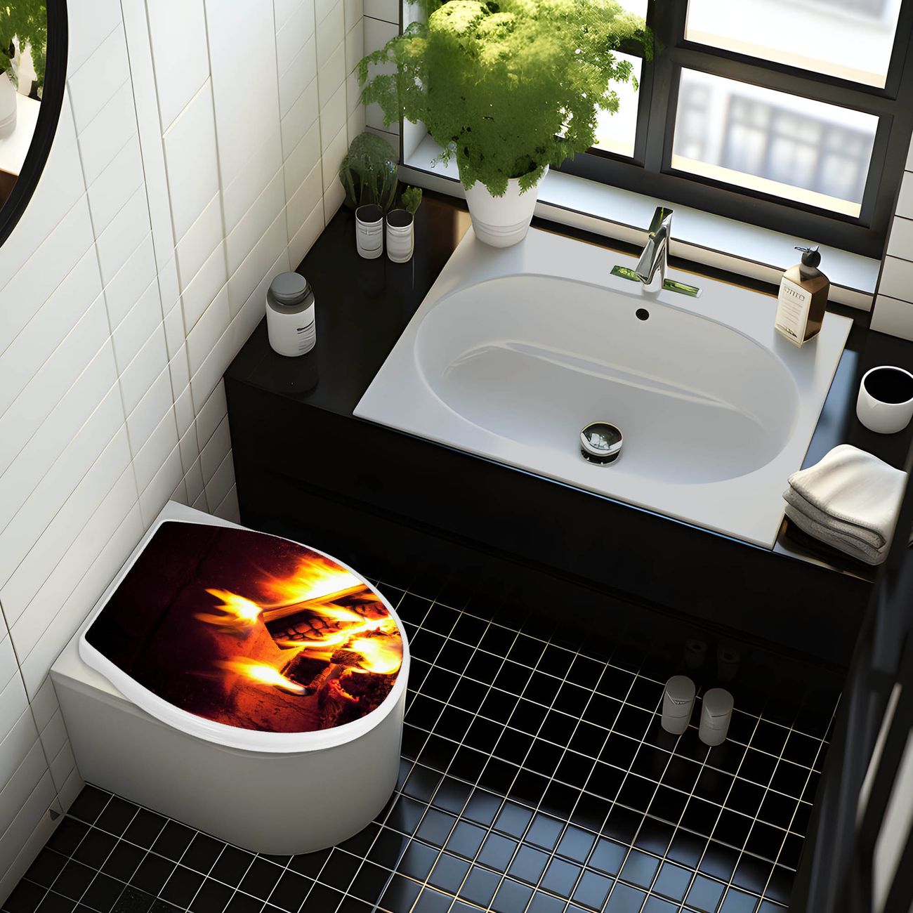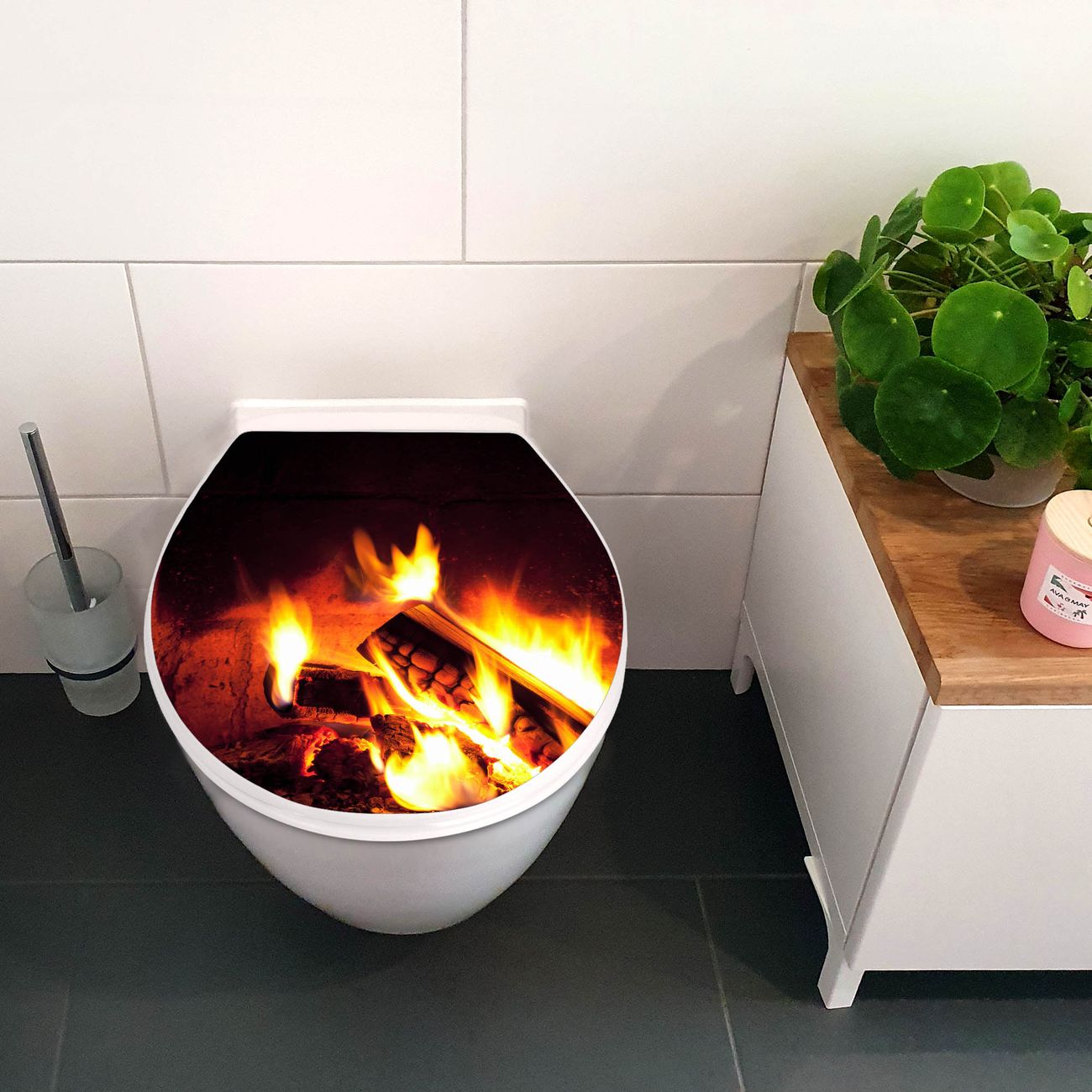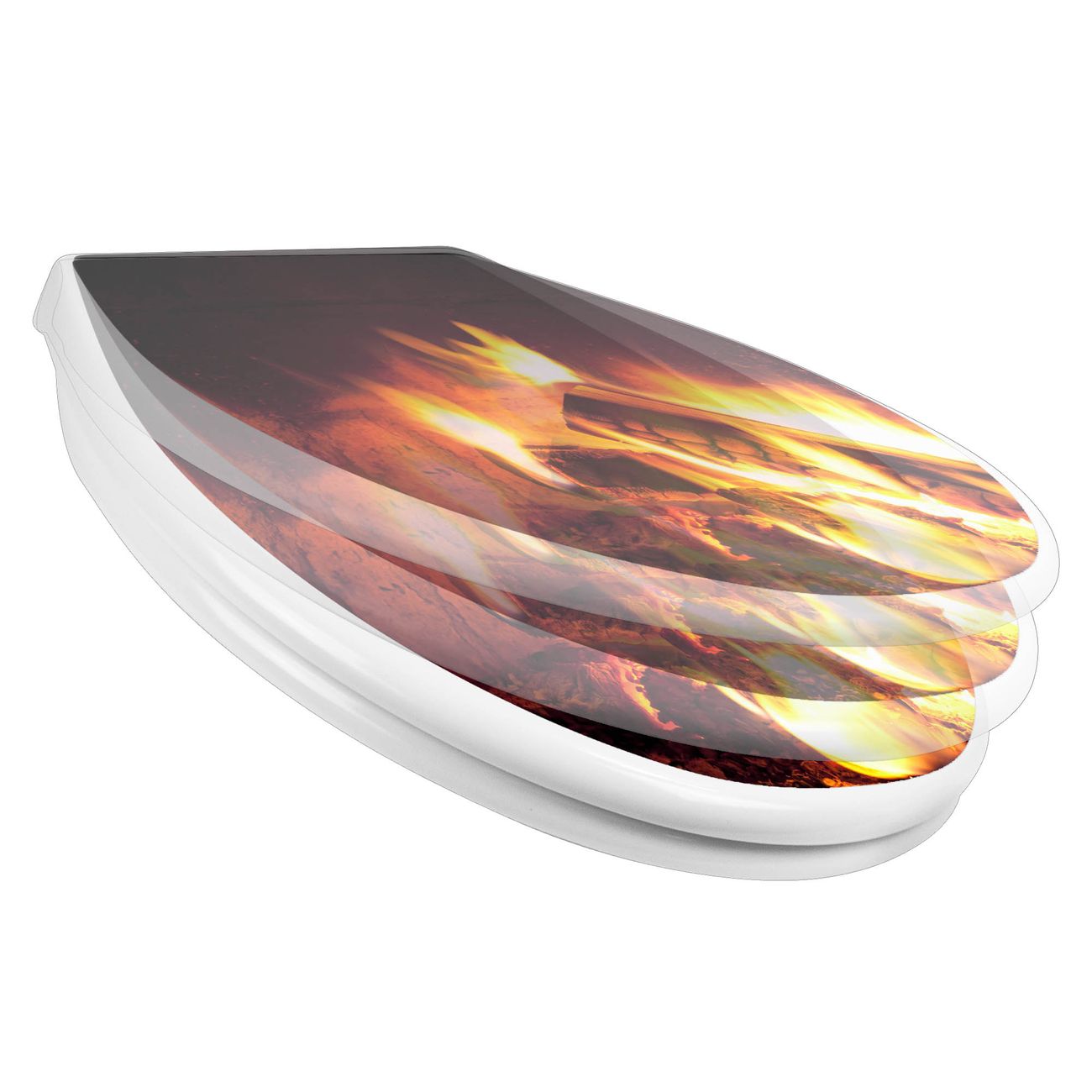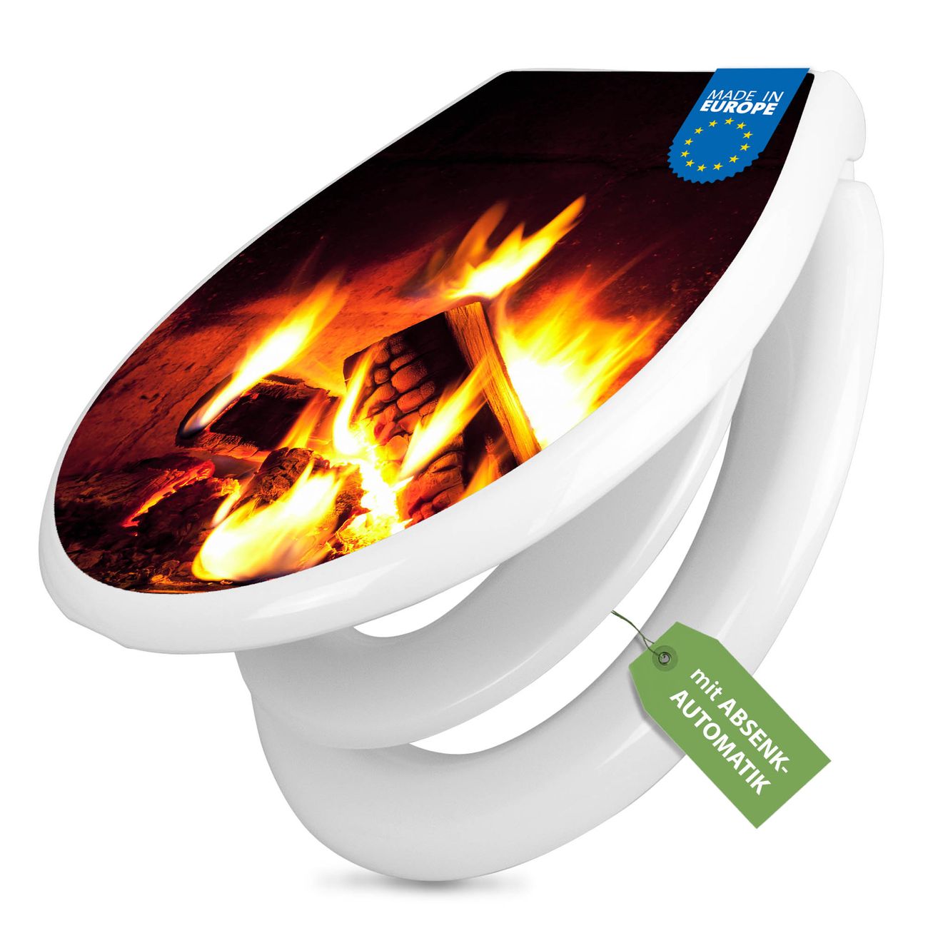 Toilettendeckel weiß mit Absenkautomatik Motiv Kaminfeuer