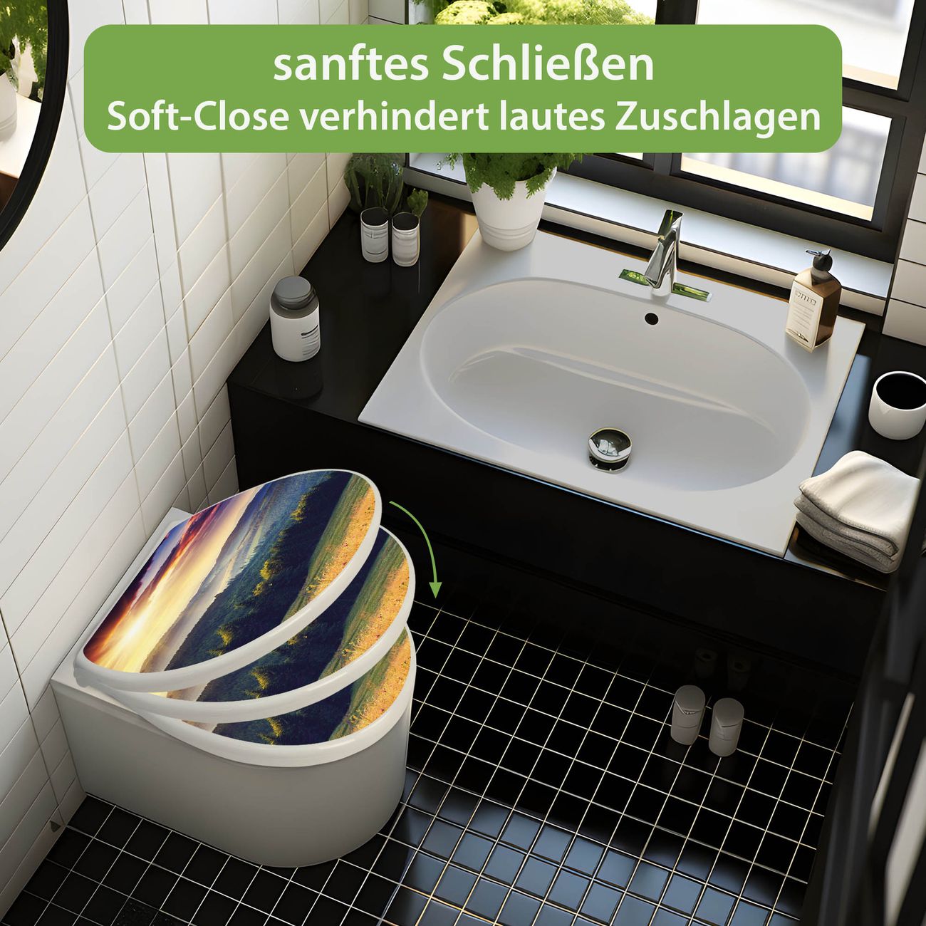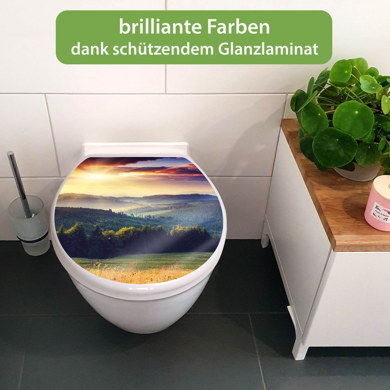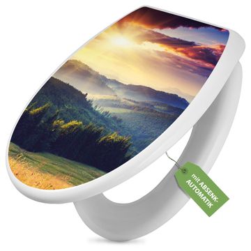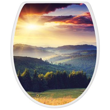 Toilettendeckel weiß mit Absenkautomatik Motiv Karpaten Sonnenuntergang