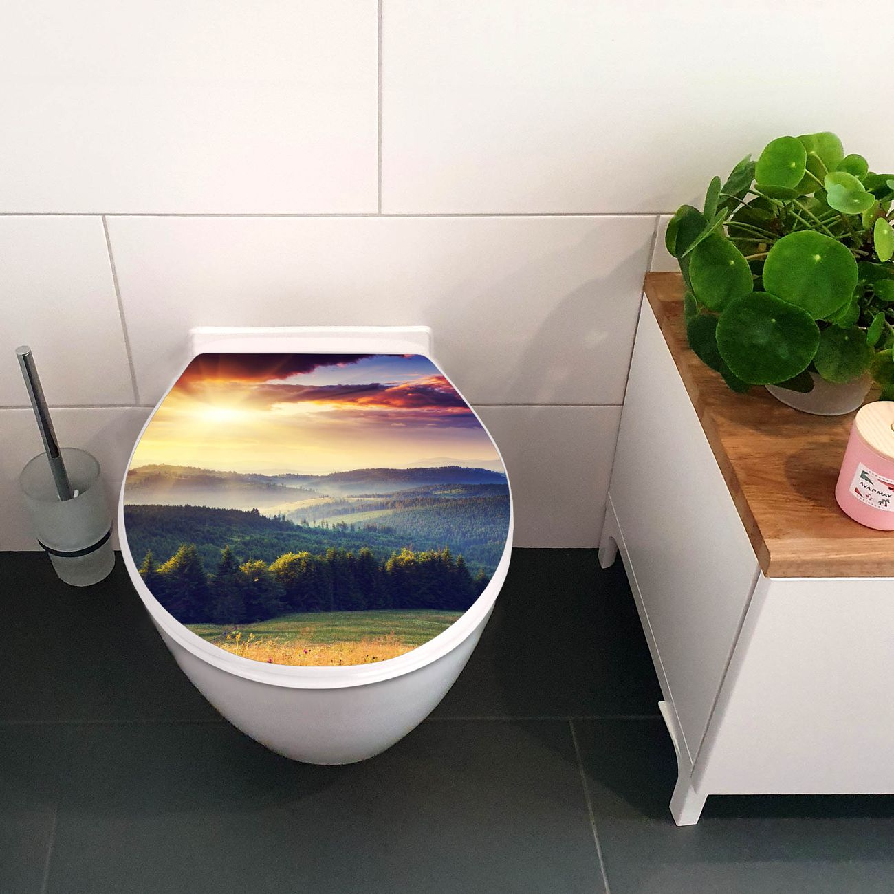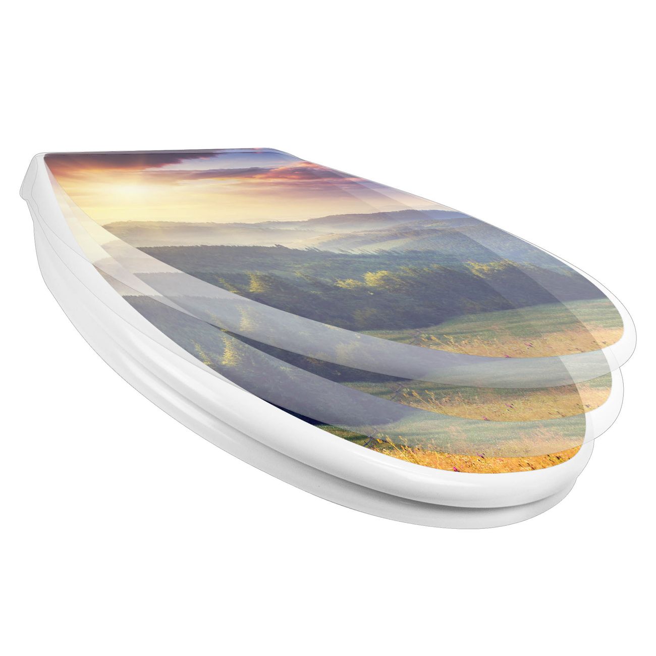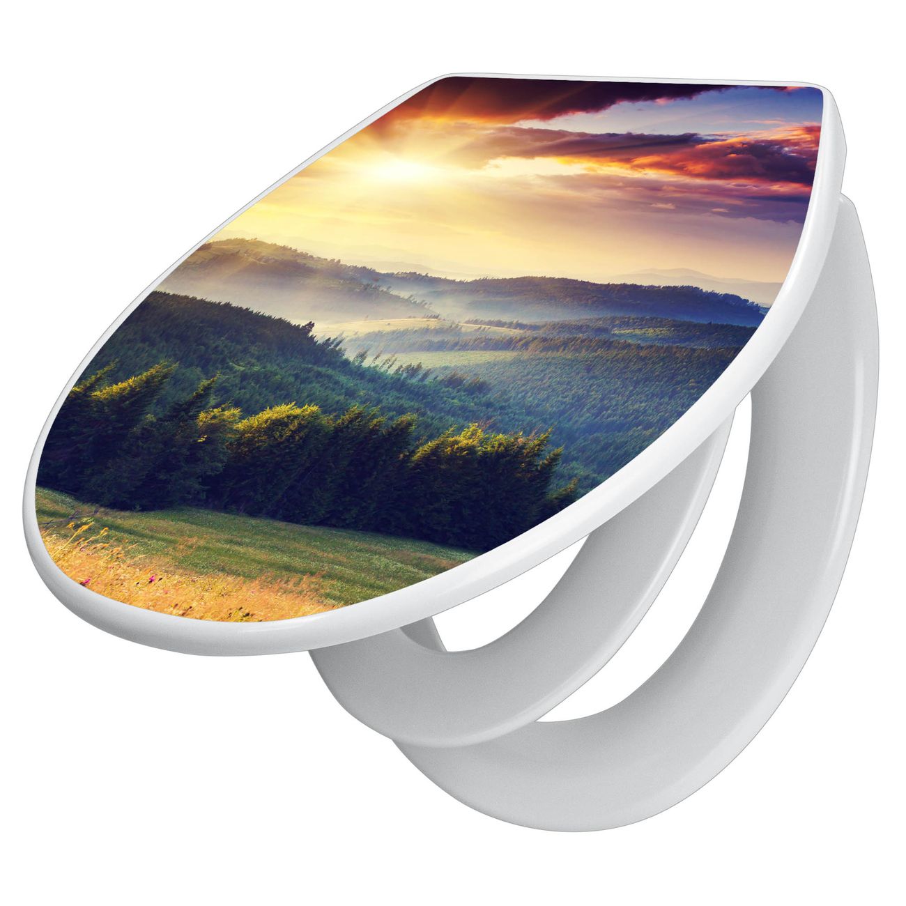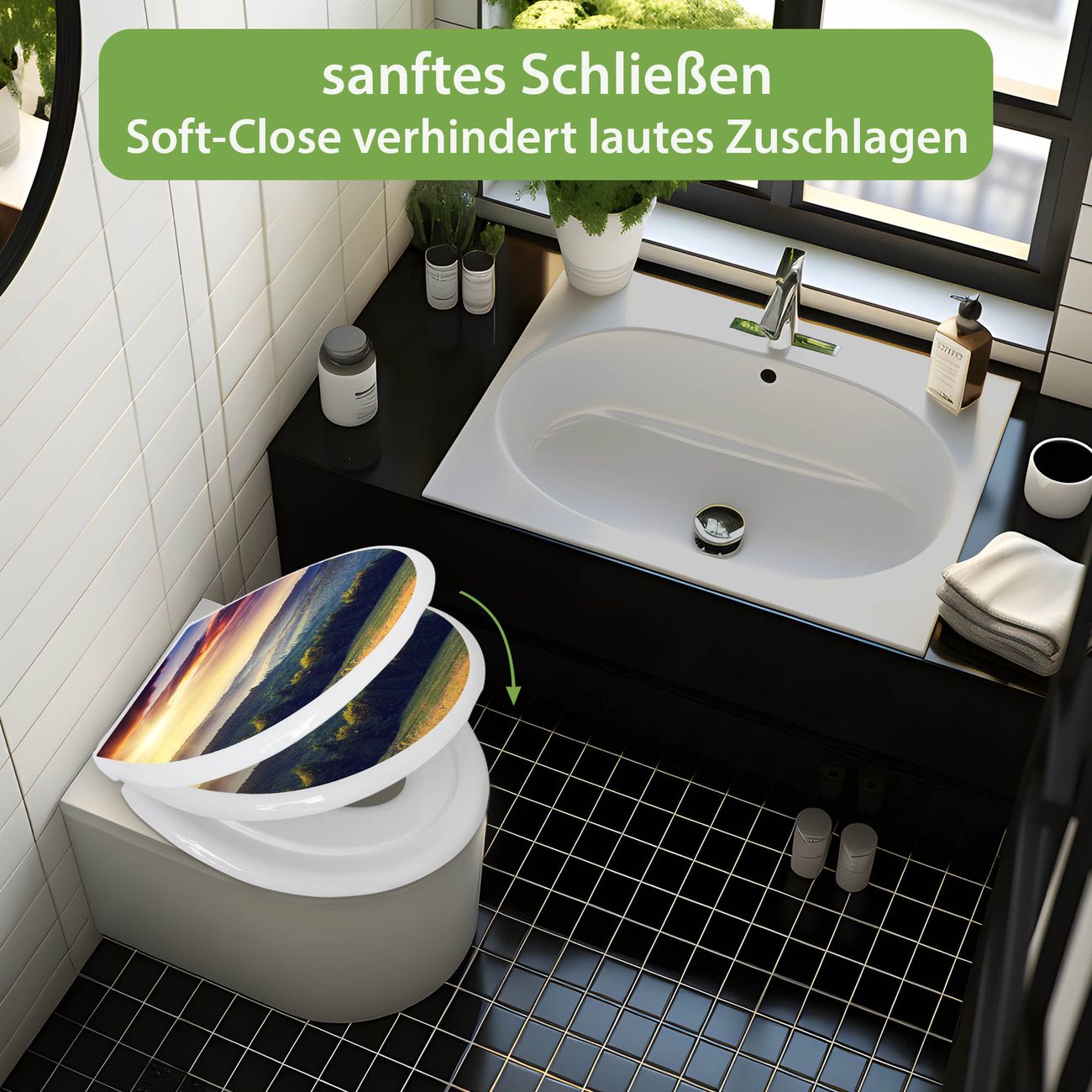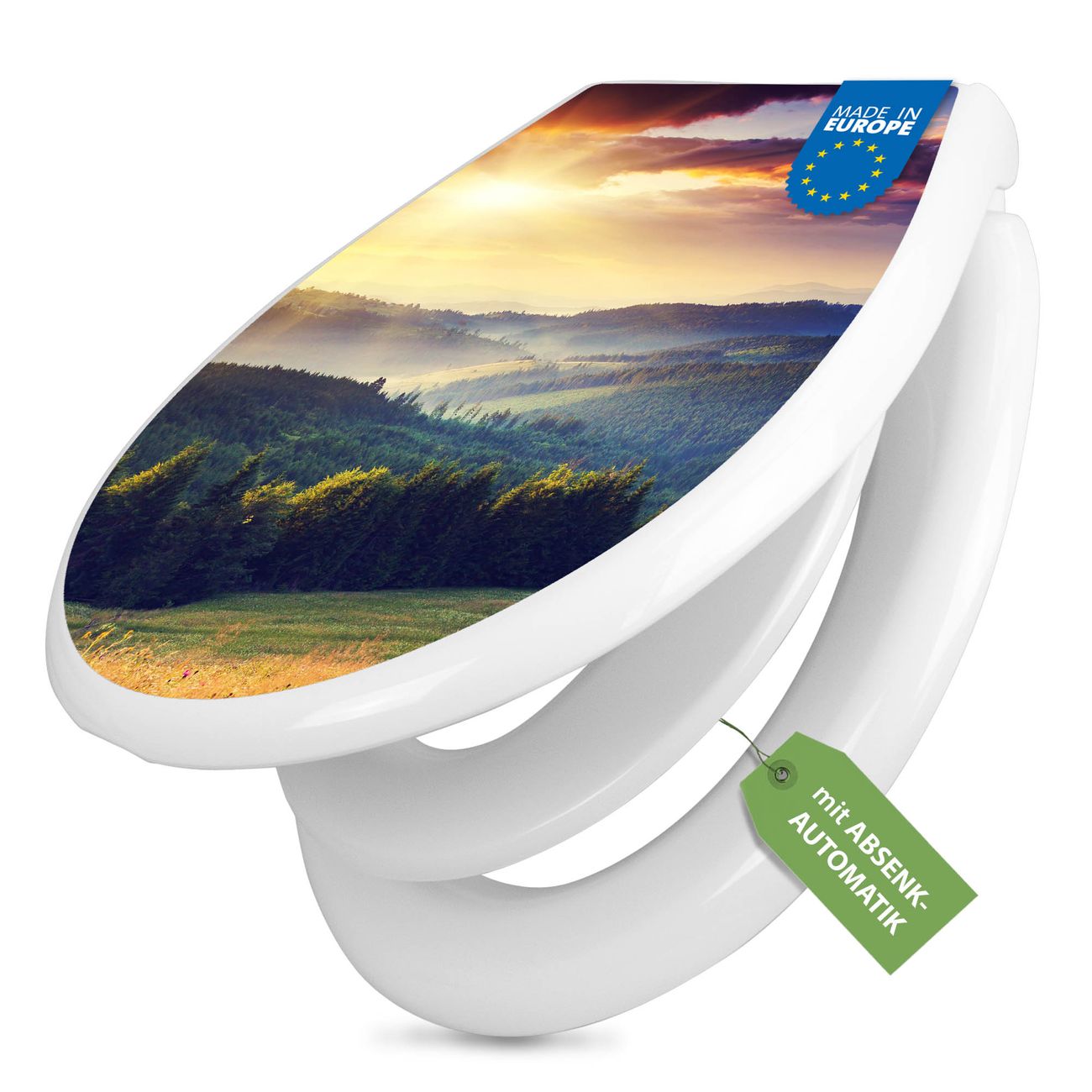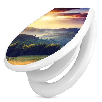 Toilettendeckel weiß mit Absenkautomatik Motiv Karpaten Sonnenuntergang