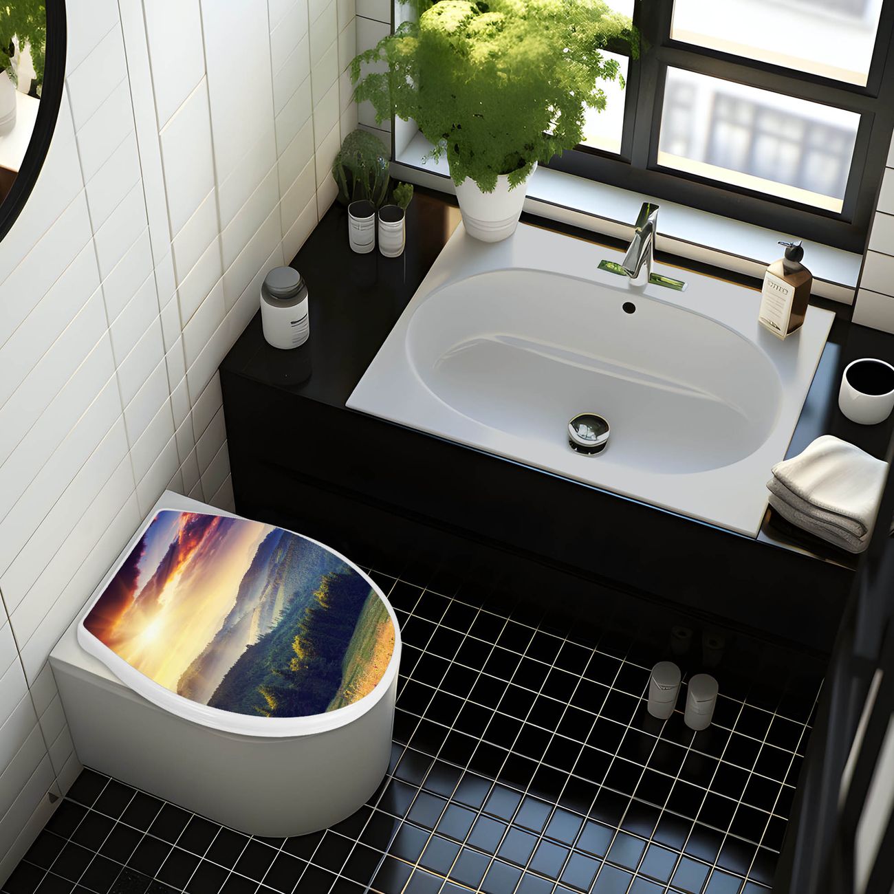 FUNKTION:Mit dem banjado Familien WC Sitz mit Absenkautomatik und dem Motiv Karpaten Sonnenuntergang verbinden Sie Design mit Funktionalität. Sie erhalten den Toilettendeckel in bewährt guter Qualität mit Montagematerial passend auf alle Euro-WC-Becken. Die Gesamtgröße beträgt 37cm x 44,5cm x 5cm, die Grundfarbe ist weiß.</p> DESIGN:Der Klodeckel in weiß mit Motiv Karpaten Sonnenuntergang hat eine ansprechende Optik, eine besondere Form und ist sehr stabil. Das Motiv besteht aus einer farbbrillianten Motivfolie, die durch ein Schutzlaminat zusätzlich vor Kratzern schützt. Der integrierte Kindersitz fügt sich harmonisch ein. DETAILS:Der Toilettensitz mit Soft Close besteht aus hochwertigem Polypropylen, ist geruchlos, ungiftig und kann mit handelsüblicher Seife gereinigt werden. Die Montage kann von von oben oder von unten erfolgen und ist kinderleicht. NUTZEN:Mit Hilfe der detaillierten Aufbauanleitung ermöglichen wir eine schnelle und unkomplizierte Montage. Die banjado Klobrille ist universell geeignet für alle Euro-WC-Schüsseln. Der Kindersitz kann unkompliziert entfernt werden. BANJADO:Ihr WC-Deckel wird in Sachsen in einer kleinen Manufaktur von Hand veredelt. Die Motivfolie ist lösungsmittelfrei und schutzlaminiert für einen langen Halt. Wir wünschen viel Freude bei der Auswahl eines schönen Motivs.