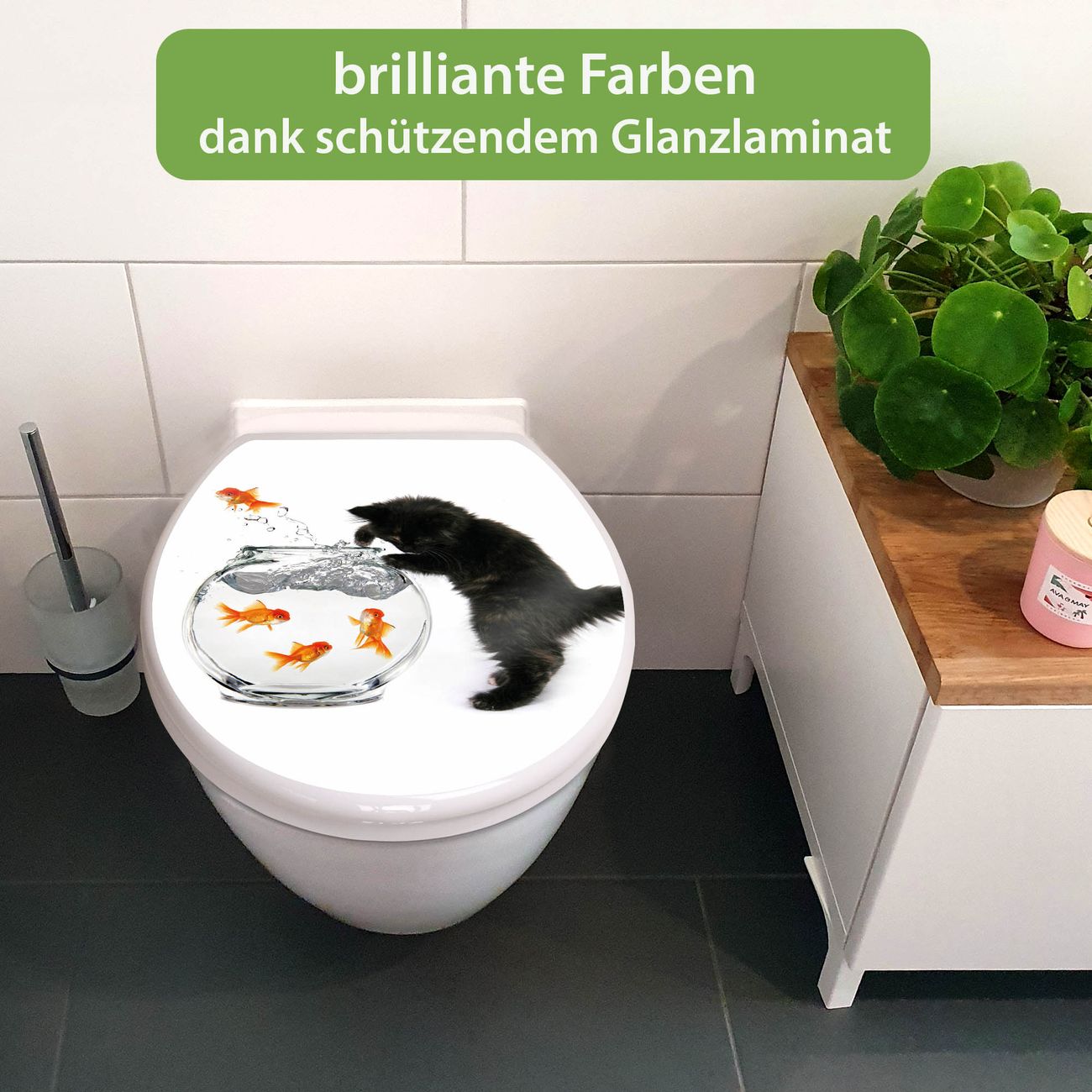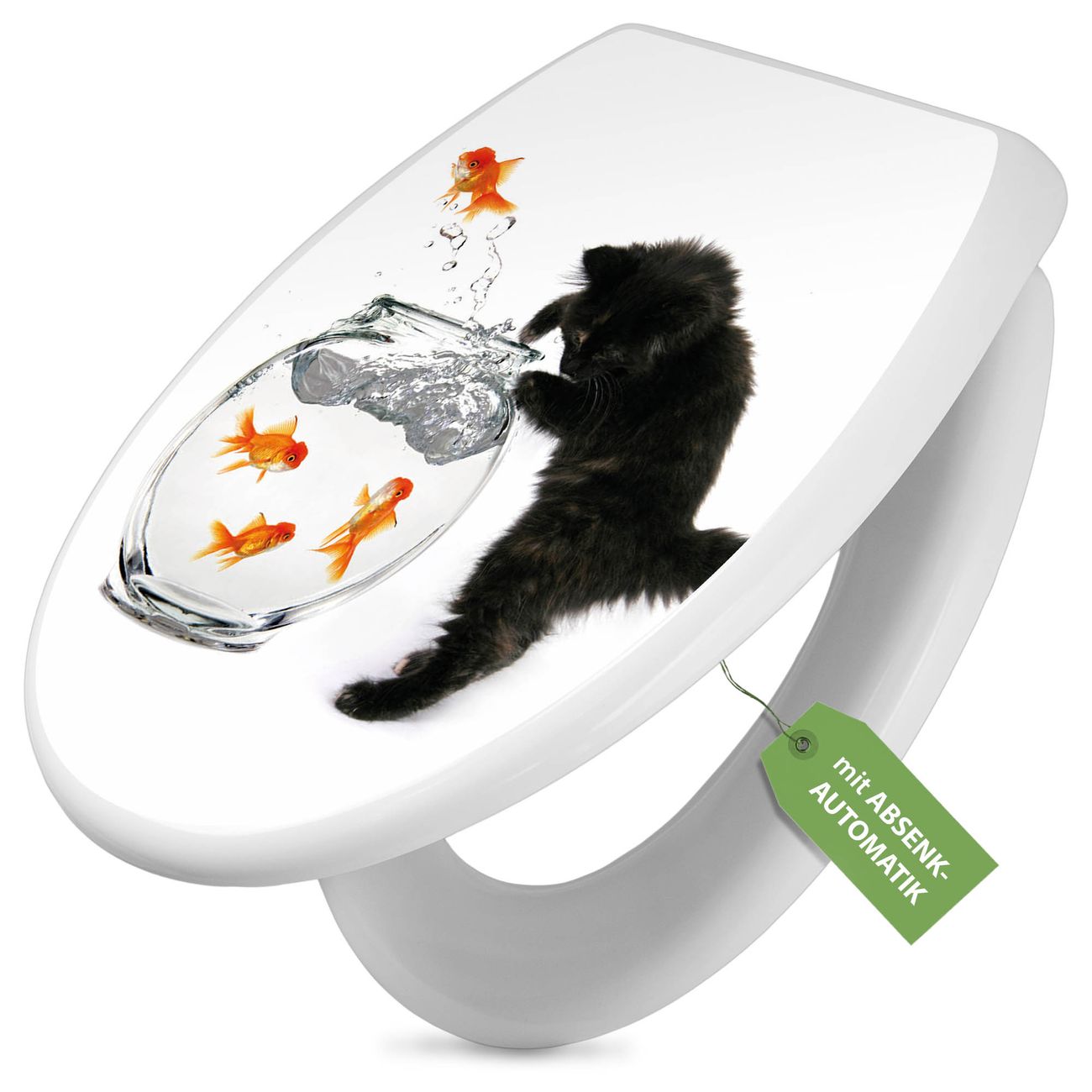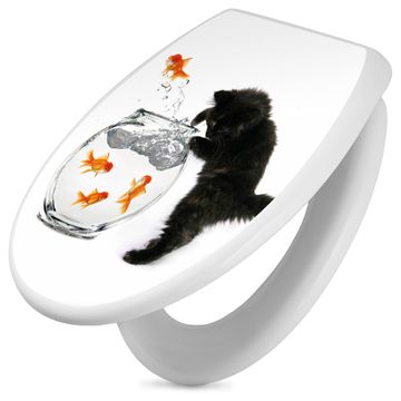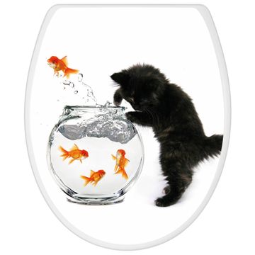 Toilettendeckel weiß mit Absenkautomatik Motiv Katze Und Fisch