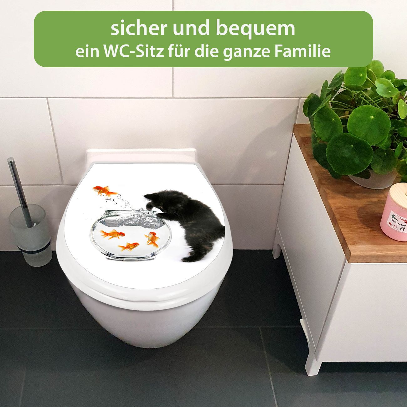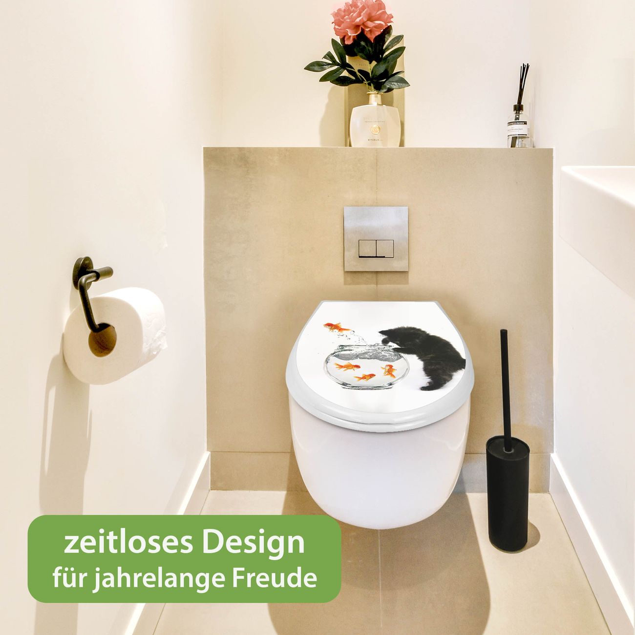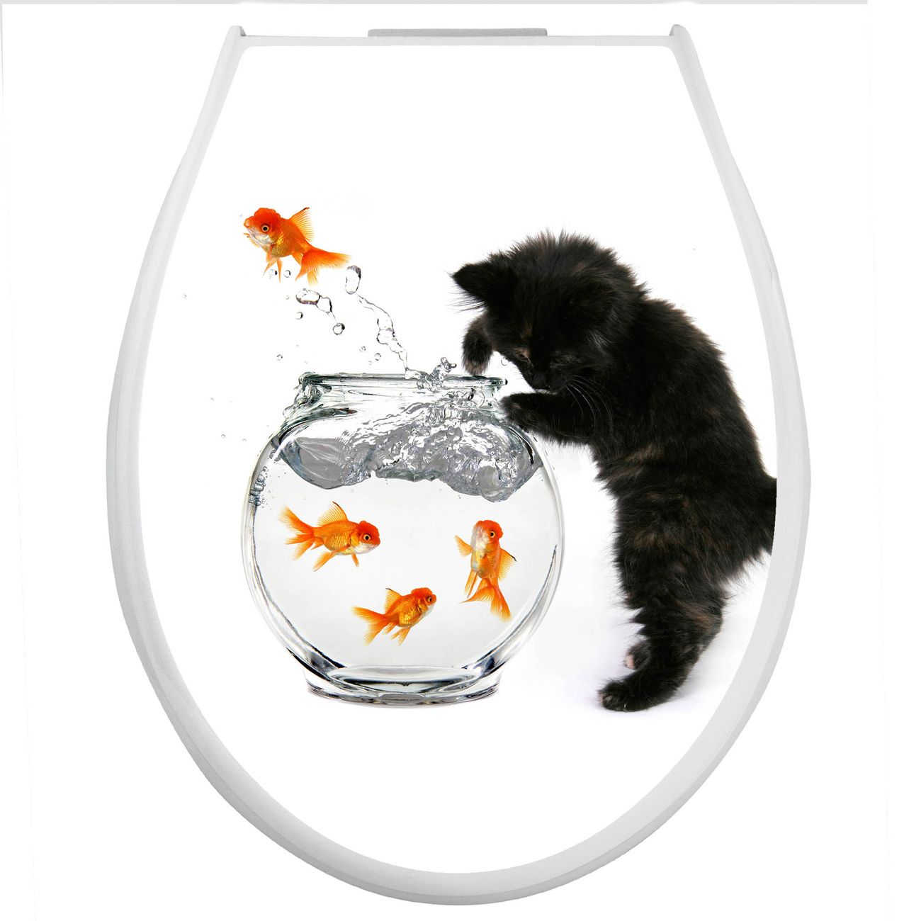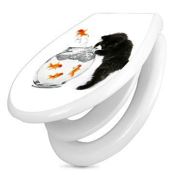 Toilettendeckel weiß mit Absenkautomatik Motiv Katze Und Fisch
