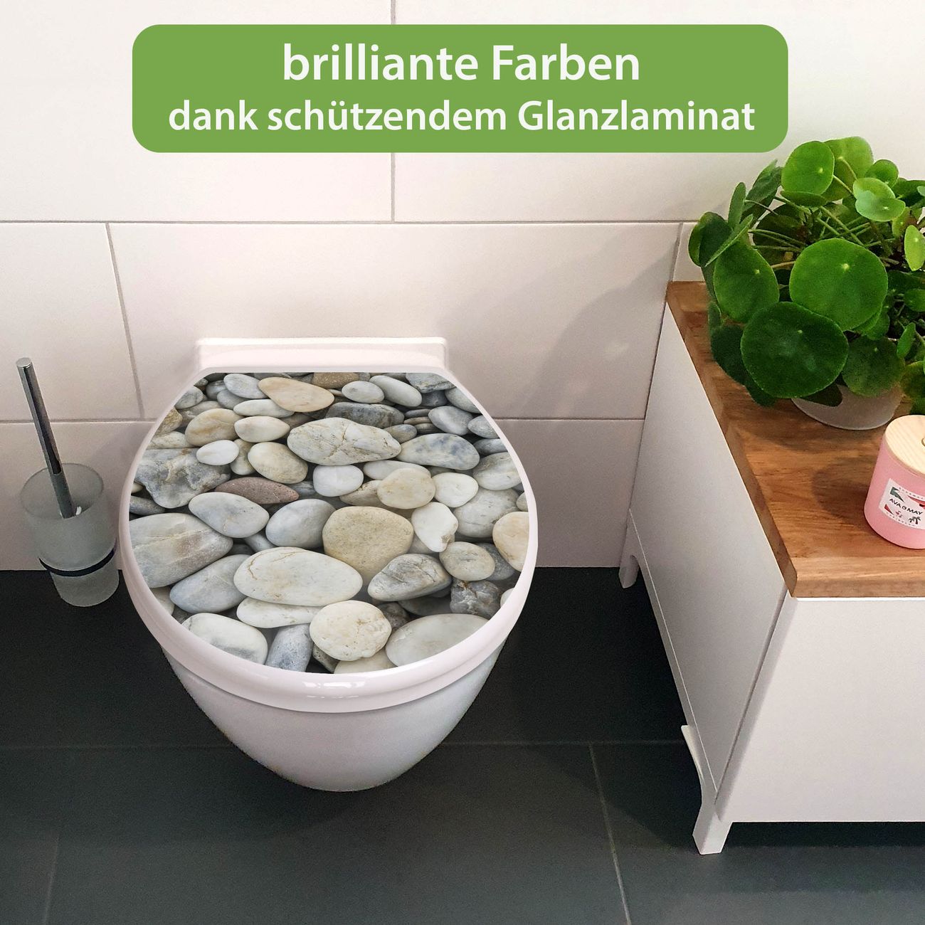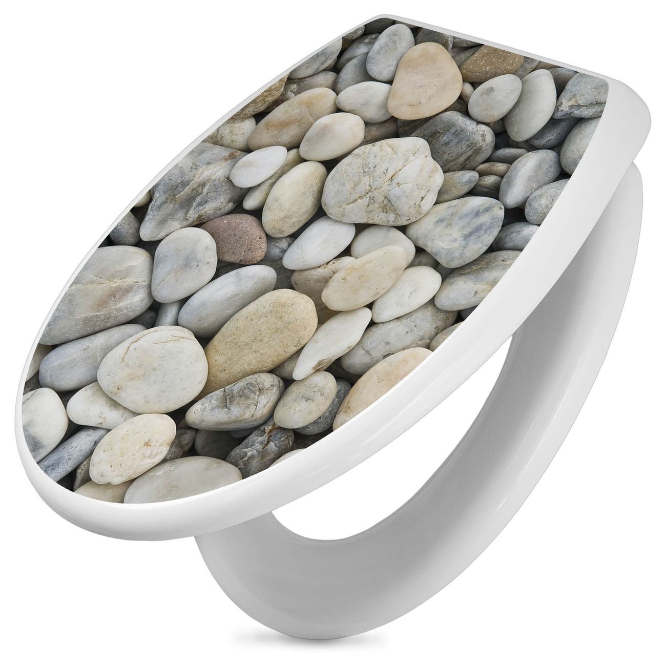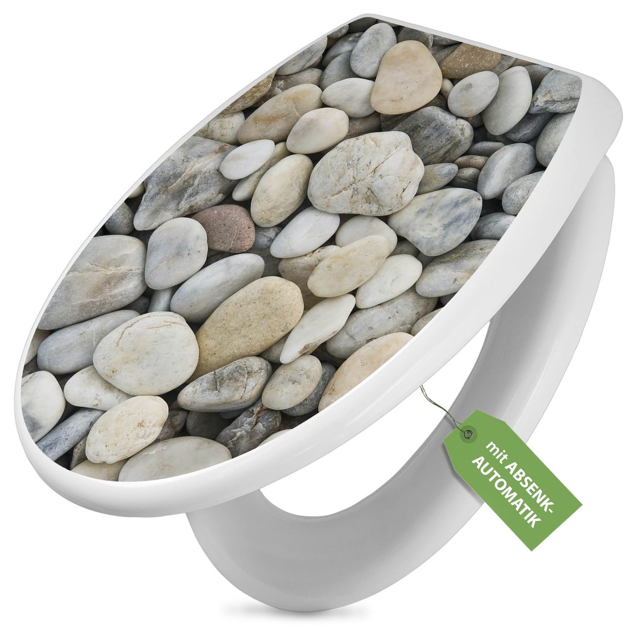 Toilettendeckel weiß mit Absenkautomatik Motiv Kieselsteine