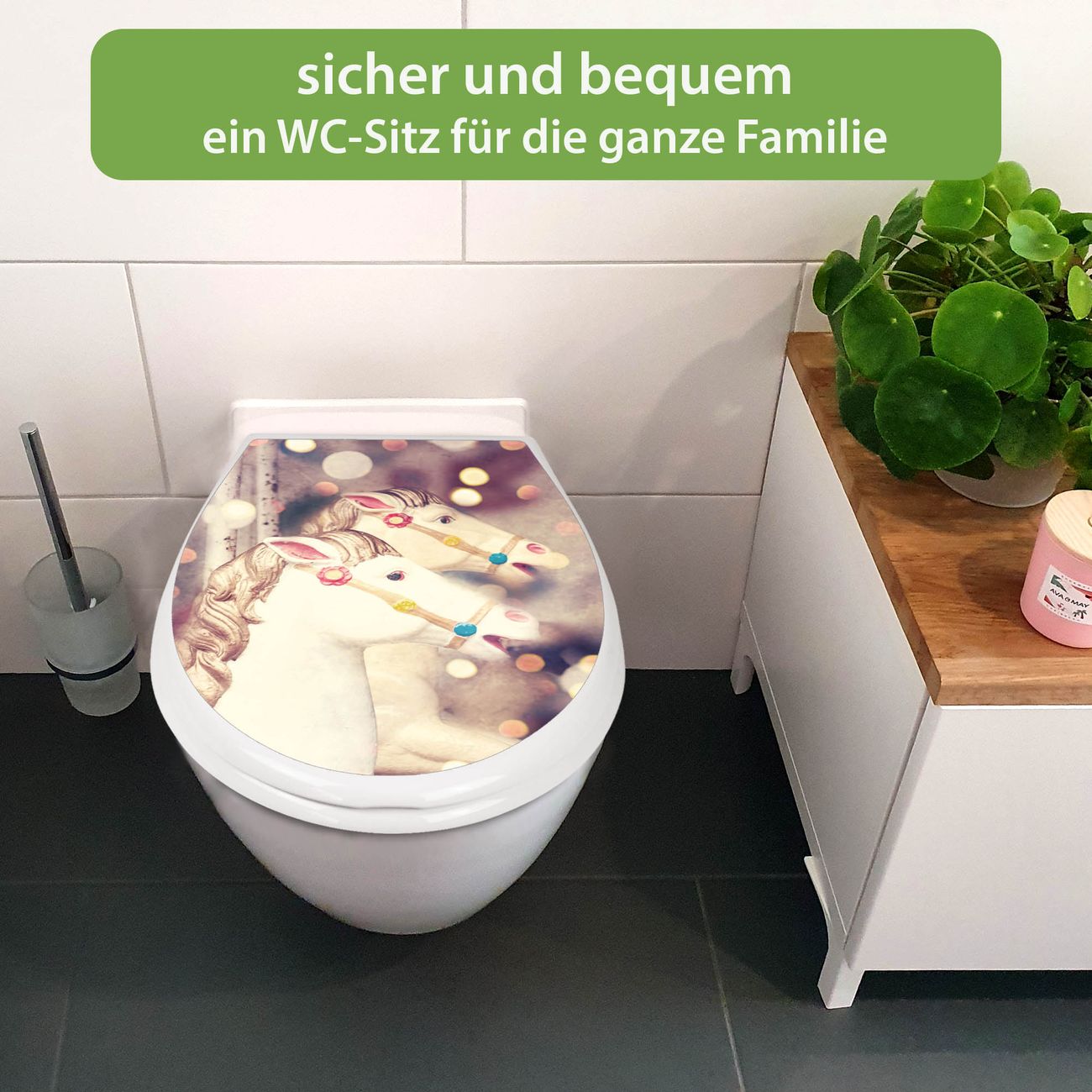 Toilettendeckel weiß mit Absenkautomatik Motiv Kinderkarussell