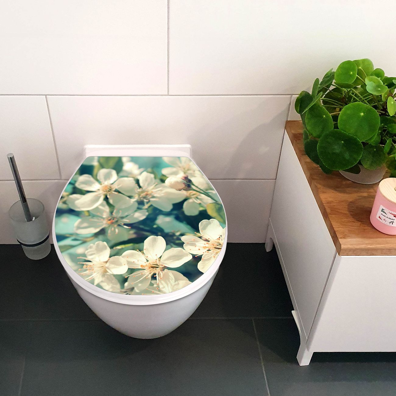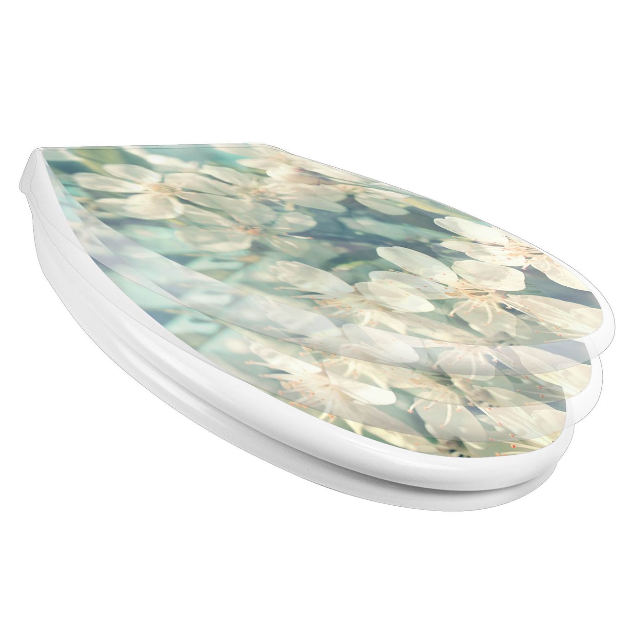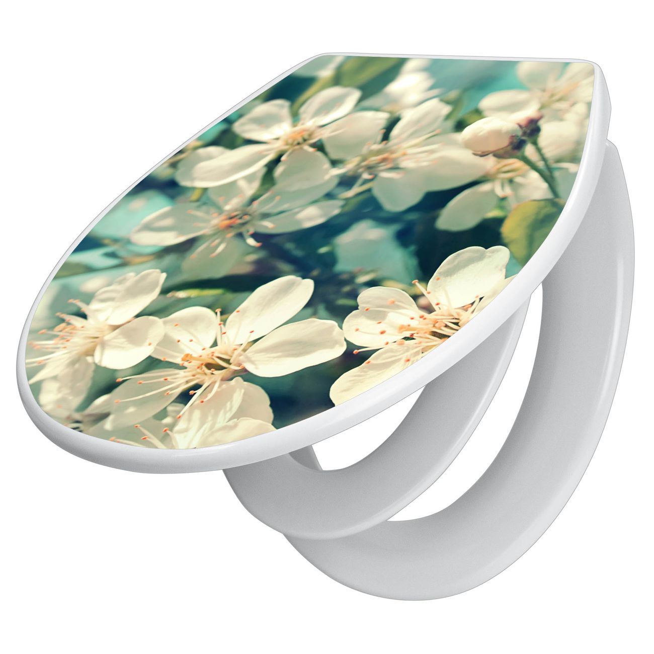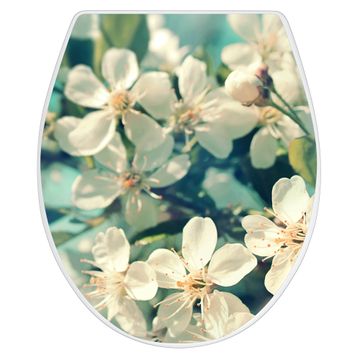 Toilettendeckel weiß mit Absenkautomatik Motiv Kirschblüten 2