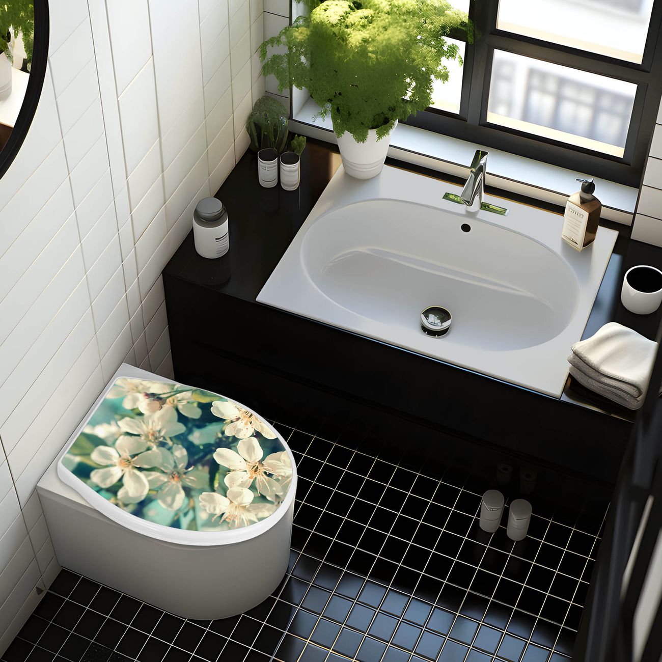 FUNKTION:Mit dem banjado Familien WC Sitz mit Absenkautomatik und dem Motiv Kirschblüten 2 verbinden Sie Design mit Funktionalität. Sie erhalten den Toilettendeckel in bewährt guter Qualität mit Montagematerial passend auf alle Euro-WC-Becken. Die Gesamtgröße beträgt 37cm x 44,5cm x 5cm, die Grundfarbe ist weiß.</p> DESIGN:Der Klodeckel in weiß mit Motiv Kirschblüten 2 hat eine ansprechende Optik, eine besondere Form und ist sehr stabil. Das Motiv besteht aus einer farbbrillianten Motivfolie, die durch ein Schutzlaminat zusätzlich vor Kratzern schützt. Der integrierte Kindersitz fügt sich harmonisch ein. DETAILS:Der Toilettensitz mit Soft Close besteht aus hochwertigem Polypropylen, ist geruchlos, ungiftig und kann mit handelsüblicher Seife gereinigt werden. Die Montage kann von von oben oder von unten erfolgen und ist kinderleicht. NUTZEN:Mit Hilfe der detaillierten Aufbauanleitung ermöglichen wir eine schnelle und unkomplizierte Montage. Die banjado Klobrille ist universell geeignet für alle Euro-WC-Schüsseln. Der Kindersitz kann unkompliziert entfernt werden. BANJADO:Ihr WC-Deckel wird in Sachsen in einer kleinen Manufaktur von Hand veredelt. Die Motivfolie ist lösungsmittelfrei und schutzlaminiert für einen langen Halt. Wir wünschen viel Freude bei der Auswahl eines schönen Motivs.