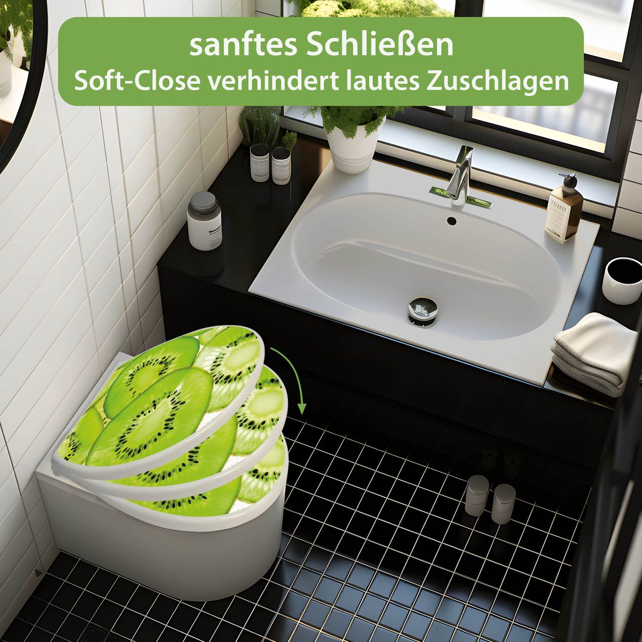 Toilettendeckel weiß mit Absenkautomatik Motiv Kiwi