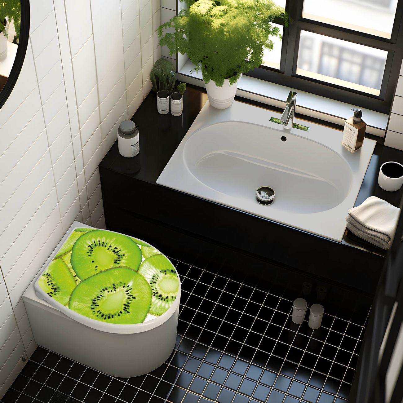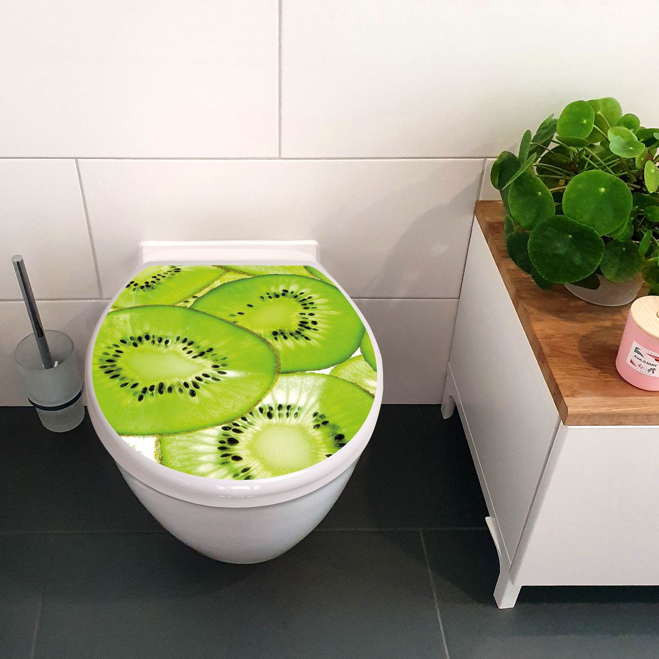 Toilettendeckel weiß mit Absenkautomatik Motiv Kiwi