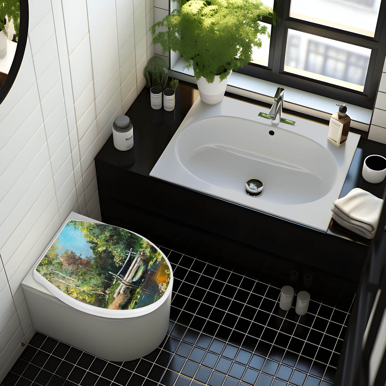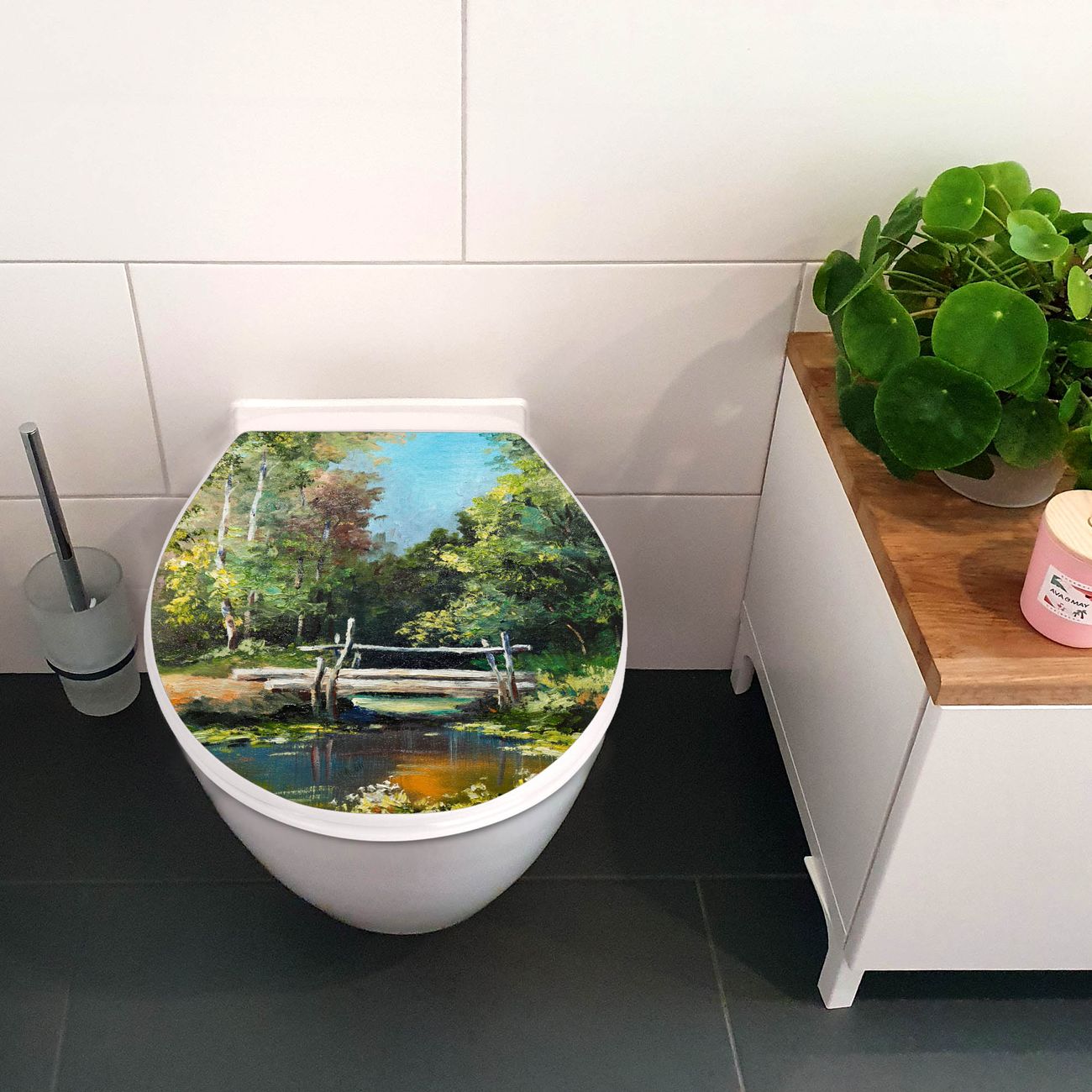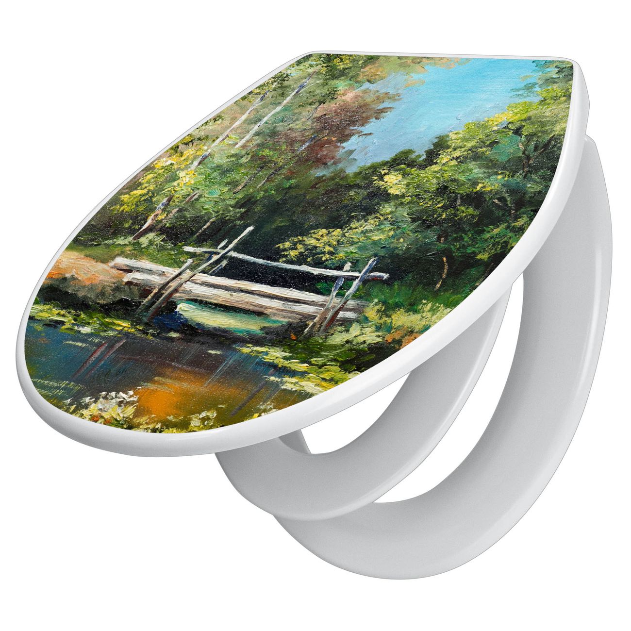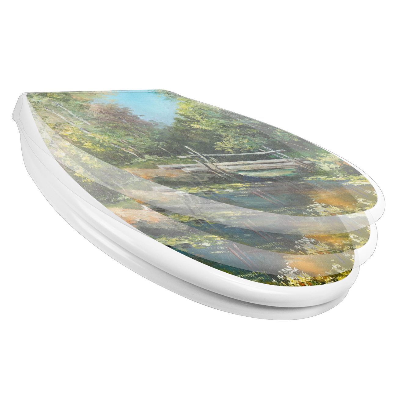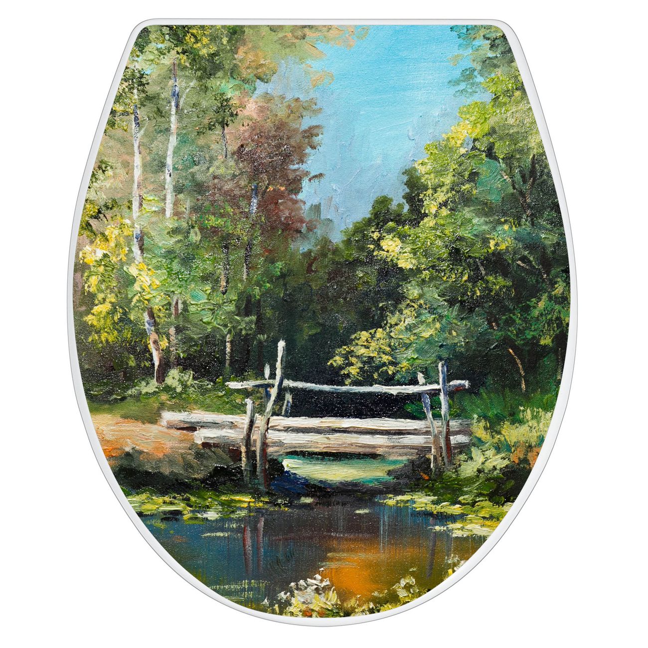 Toilettendeckel weiß mit Absenkautomatik Motiv Kleine Brücke