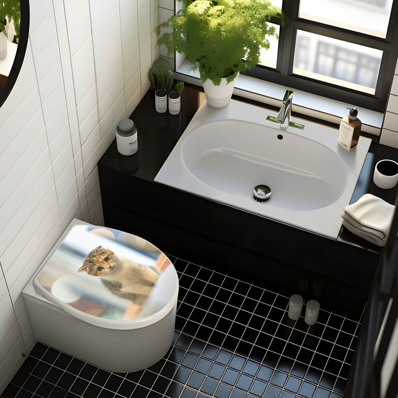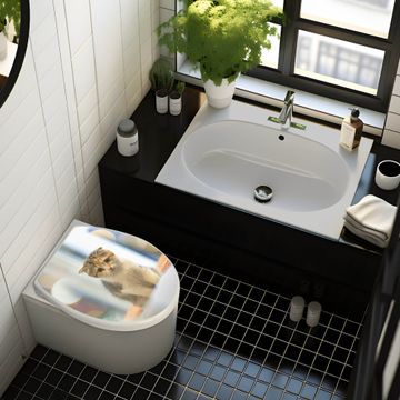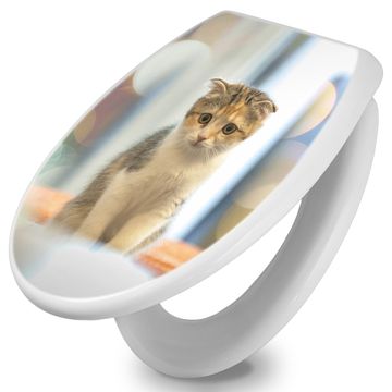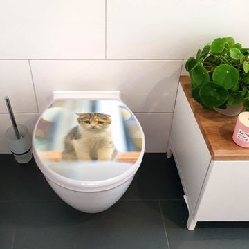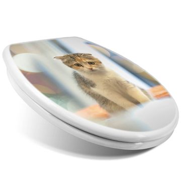 Toilettendeckel weiß mit Absenkautomatik Motiv Kleine Katze
