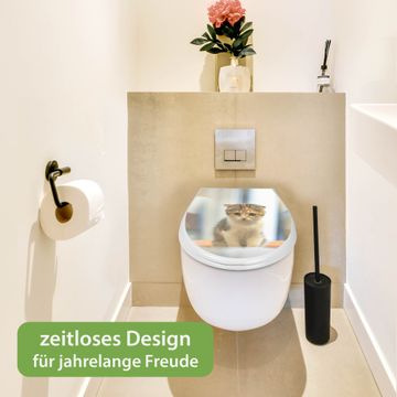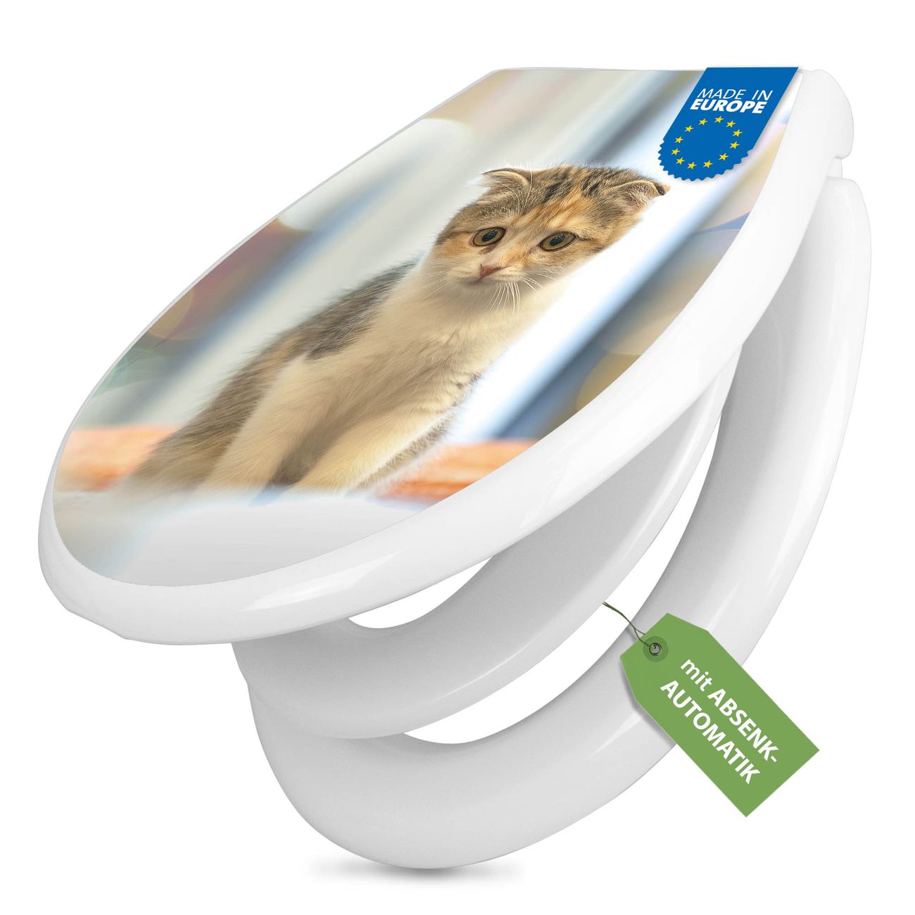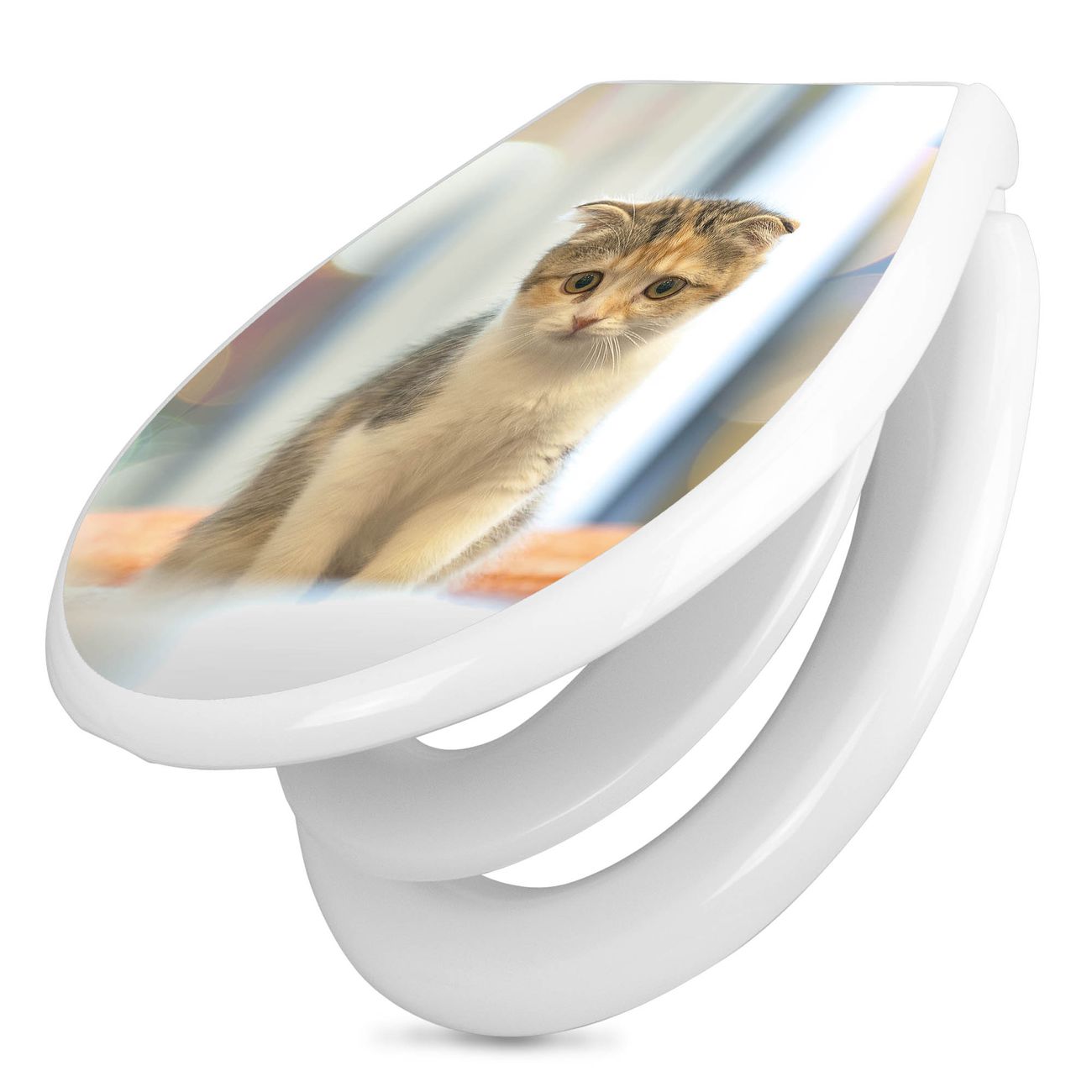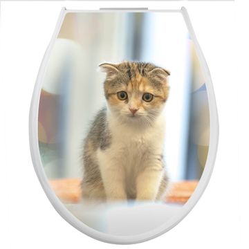 Toilettendeckel weiß mit Absenkautomatik Motiv Kleine Katze