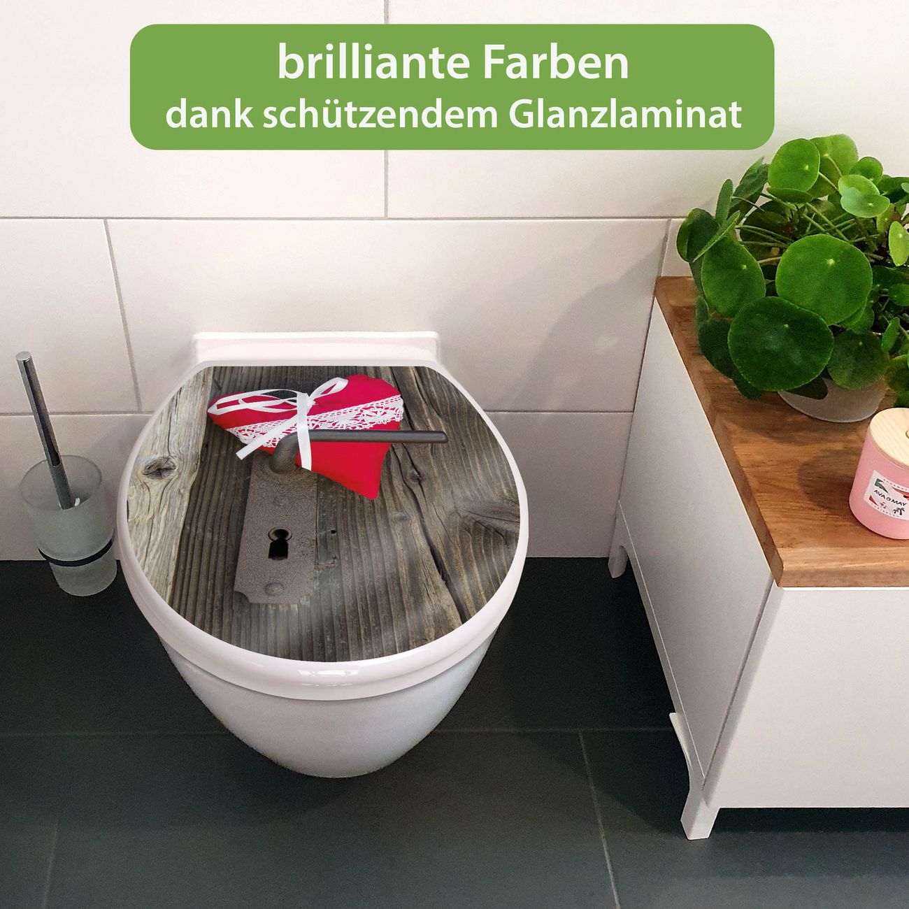 FUNKTION: Mit dem banjado Toilettendeckel mit Absenkautomatik verbinden Sie Design mit Funktionalität. Sie erhalten den WC Sitz in bewährt guter Qualität mit Edelstahl Scharnieren und Montagematerial. DESIGN: Der Klodeckel hat eine ansprechende Optik, eine besondere Form und ist sehr stabil. Das Motiv besteht aus einer farbbrillianten Motivfolie, die durch ein Schutzlaminat zusätzlich vor Kratzern schützt. DETAILS: Der Toilettensitz besteht aus Duroplast, die Scharniere sind aus hochwertigem Edelstahl, Materialien die Ihnen eine leichte und hygienische Reinigung ermöglichen. Die Gesamtgröße beträgt 37,3cm x 45cm x 5cm, die Grundfarbe ist weiß. NUTZEN: Mit Hilfe der detaillierten Aufbauanleitung ermöglichen wir eine schnelle und unkomplizierte Montage. Die banjado Klobrille ist universell geeignet für alle gängigen WC Schüsseln. Der Lochabstand zur Befestigung kann variable eingestellt werden. BANJADO: Ihr WC-Deckel wird in Sachsen in einer kleinen Manufaktur von Hand veredelt. Die Motivfolie ist lösungsmittelfrei und schutzlaminiert, für einen langen Halt. Wir wünschen viel Freude bei der Auswahl eines schönen Motivs.
