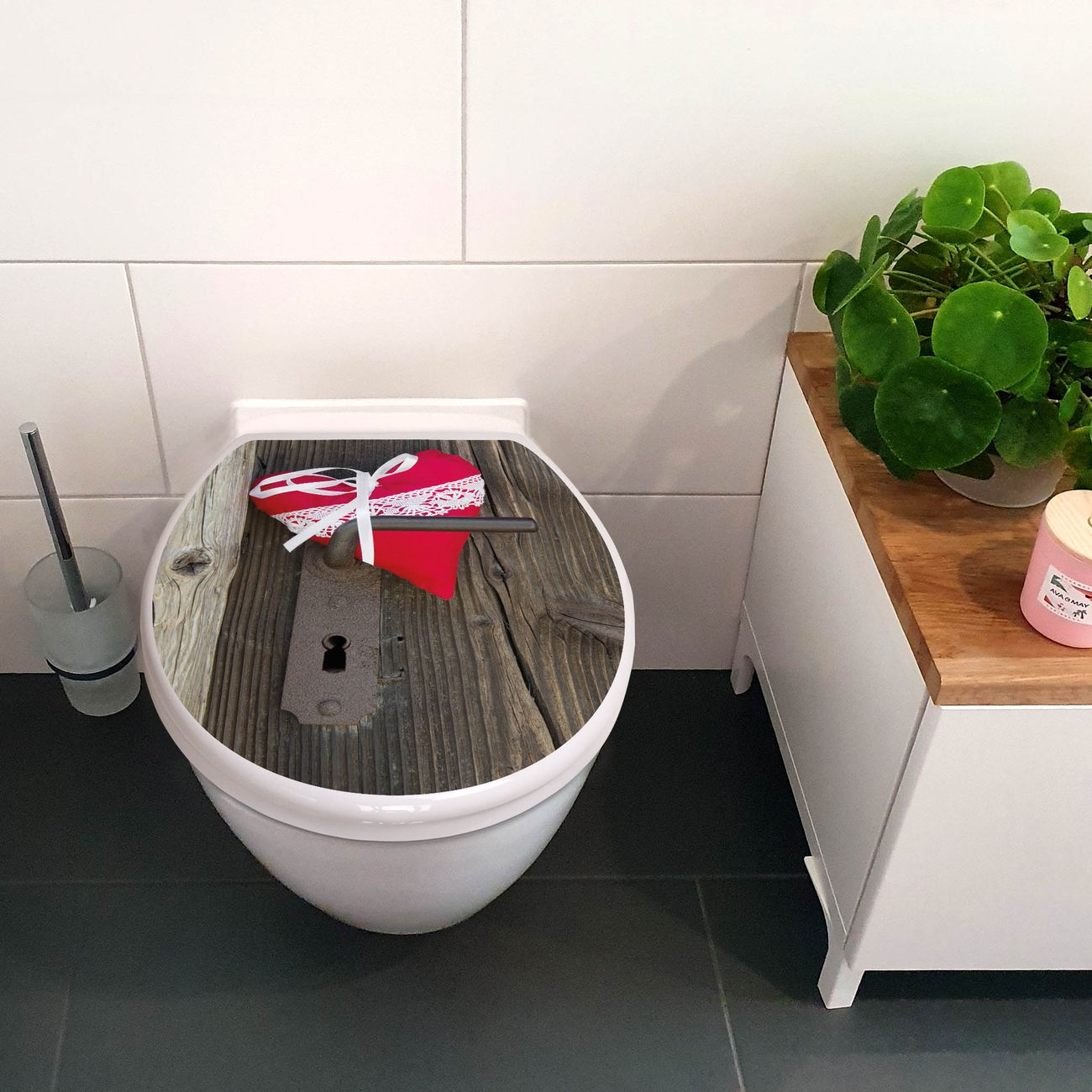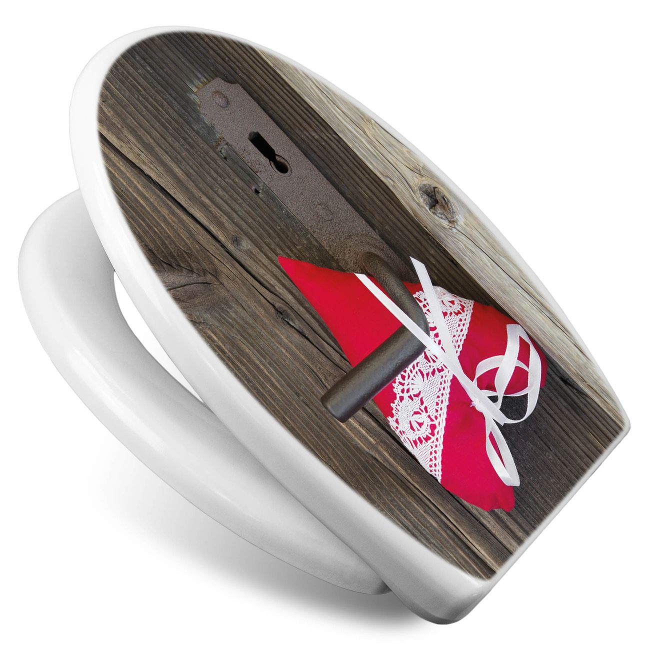 Toilettendeckel weiß mit Absenkautomatik Motiv Knock On Your Door