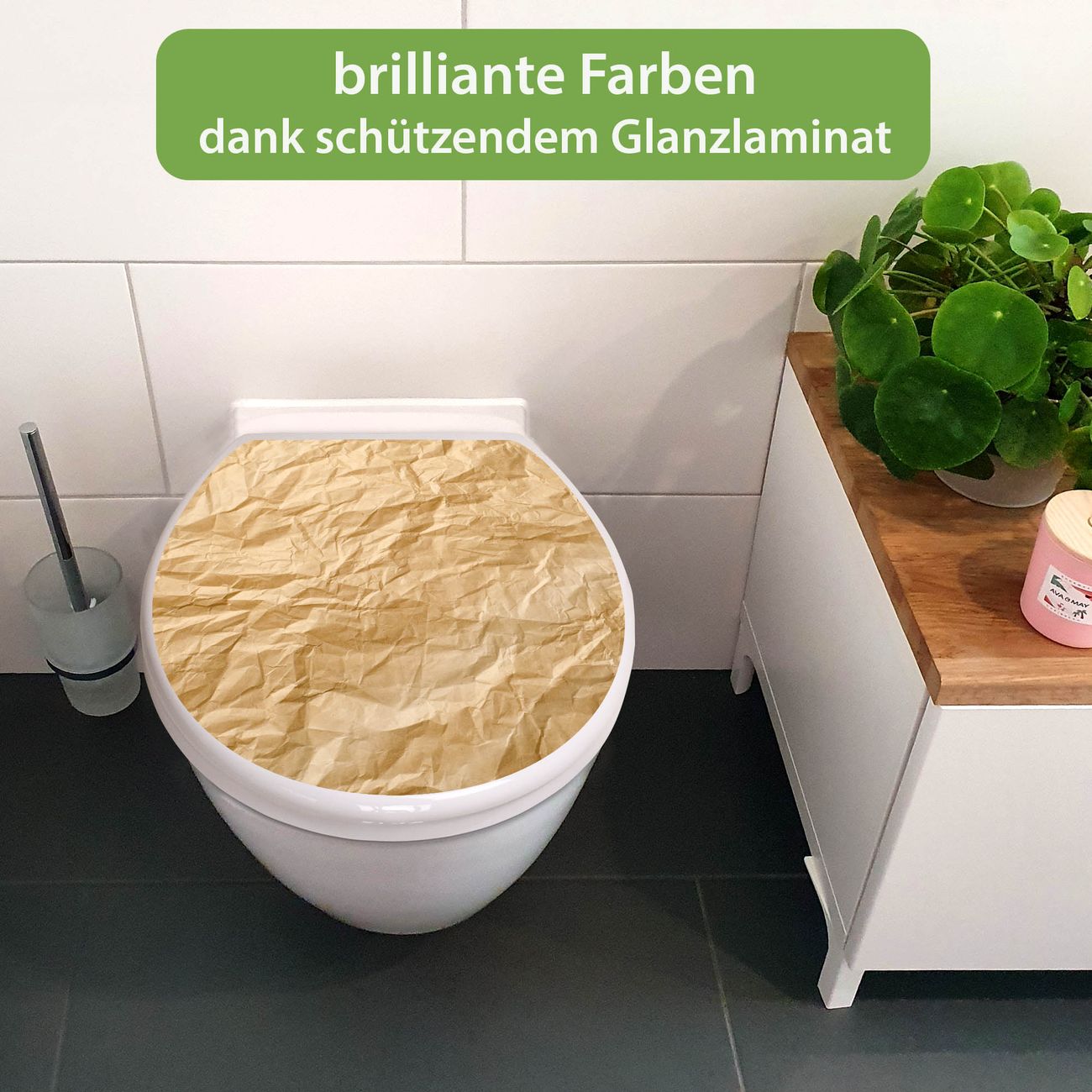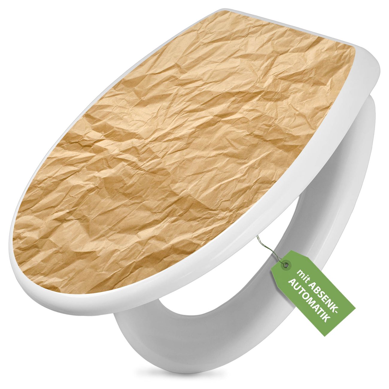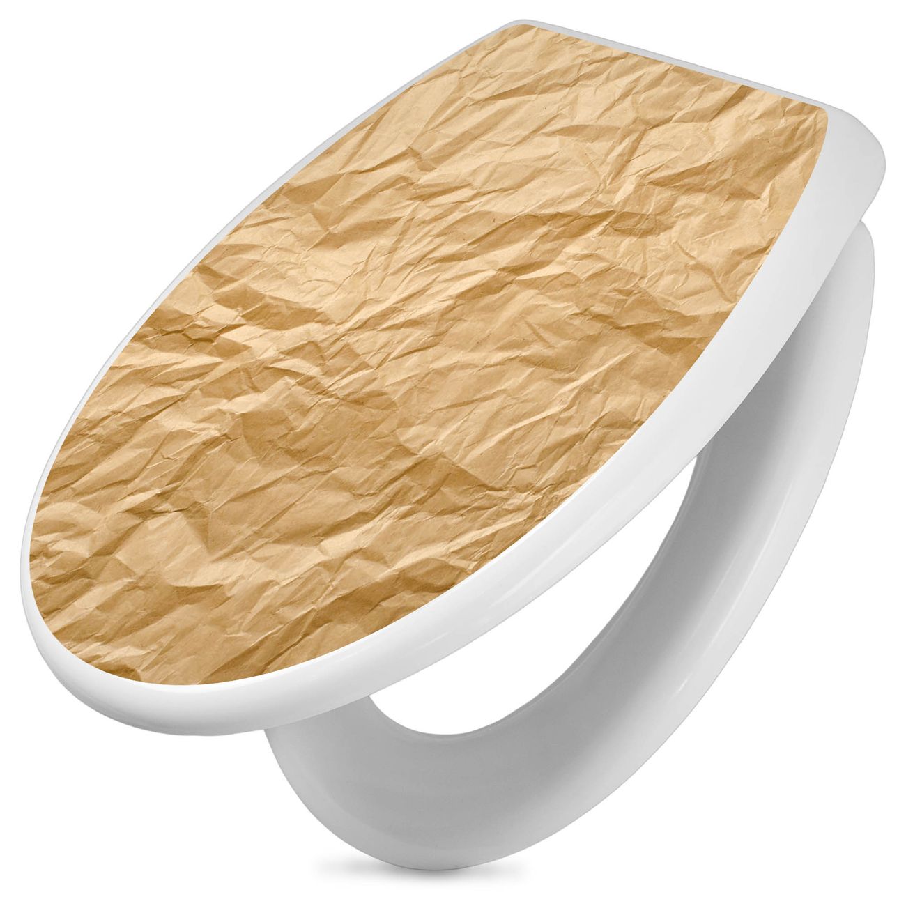 Toilettendeckel weiß mit Absenkautomatik Motiv Knüllpapier