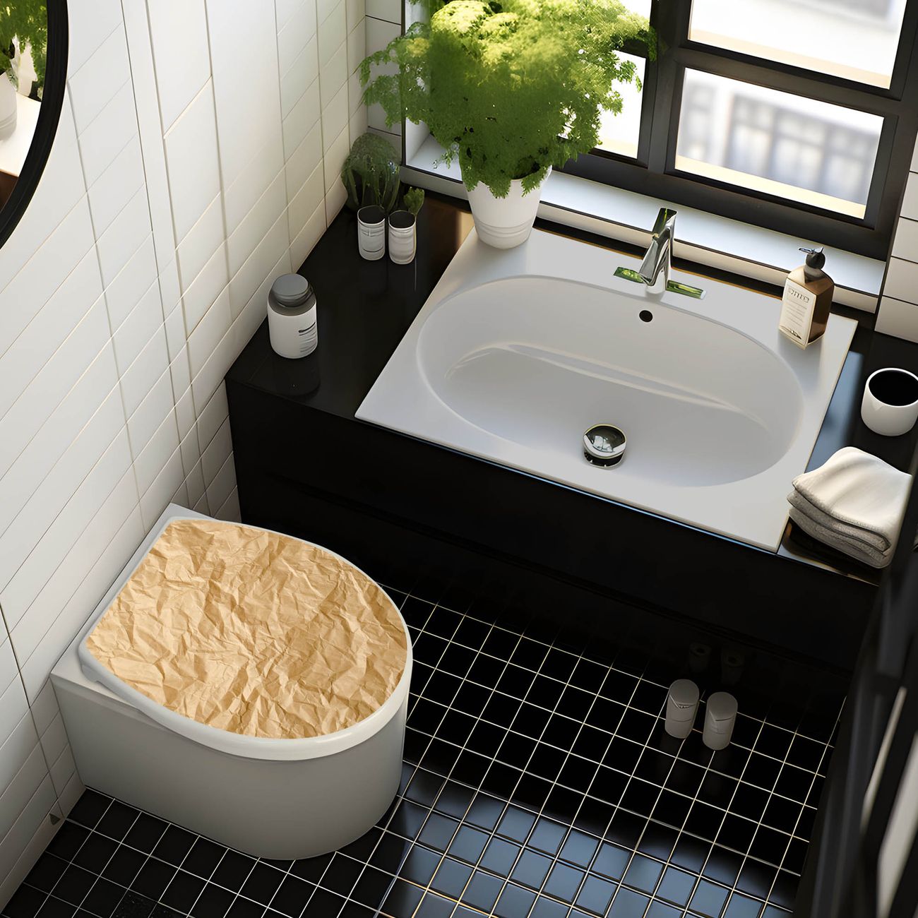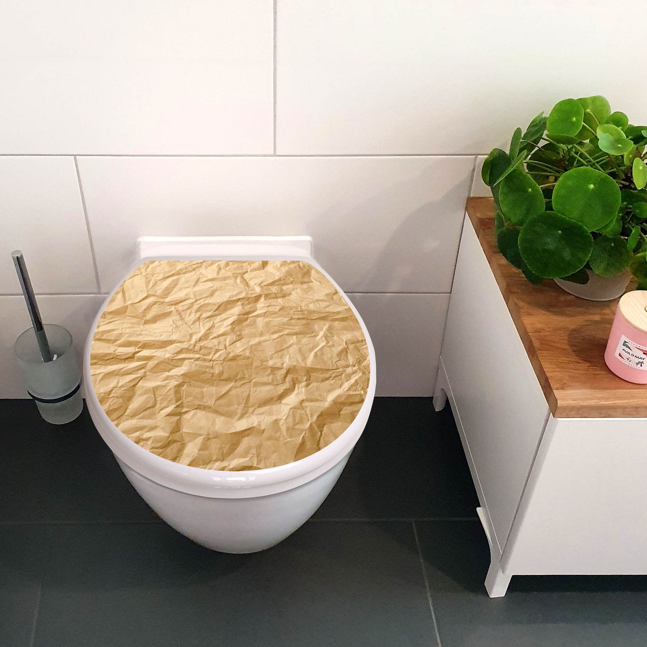 Toilettendeckel weiß mit Absenkautomatik Motiv Knüllpapier