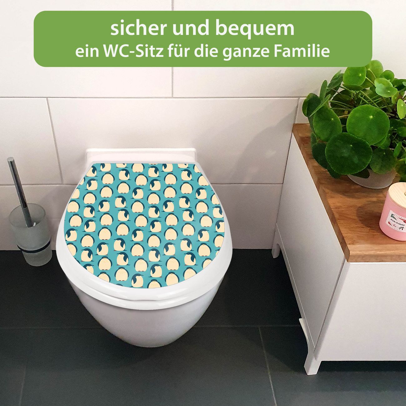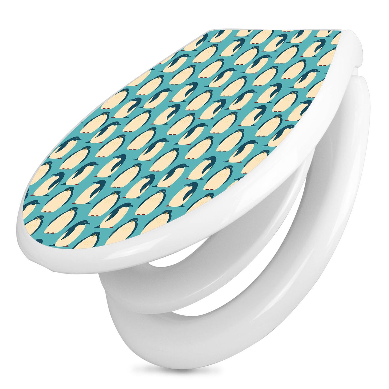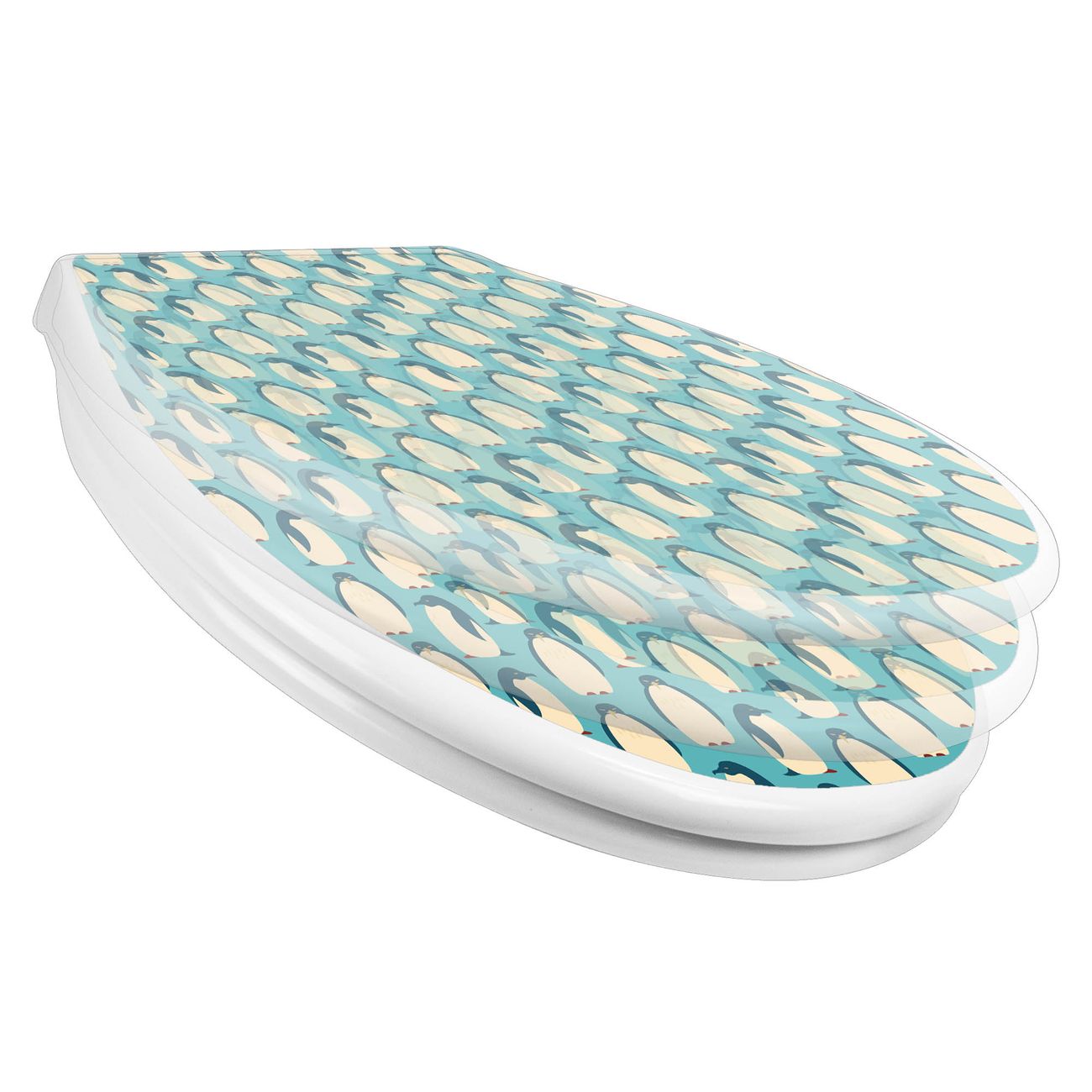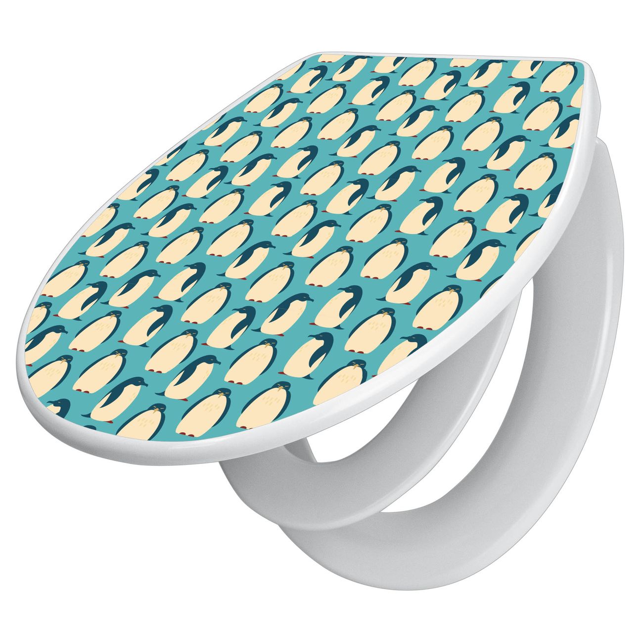 Toilettendeckel weiß mit Absenkautomatik Motiv Königspinguine