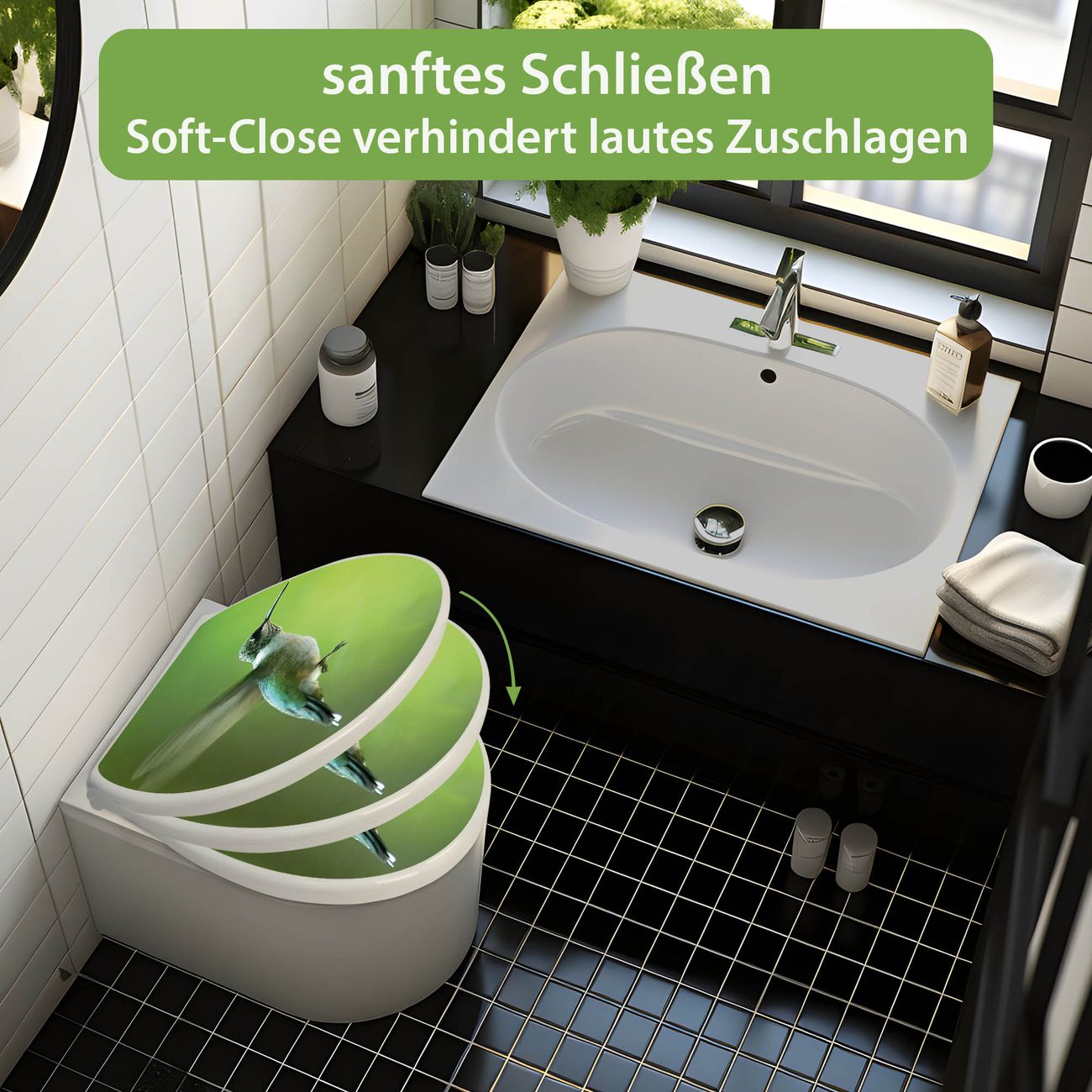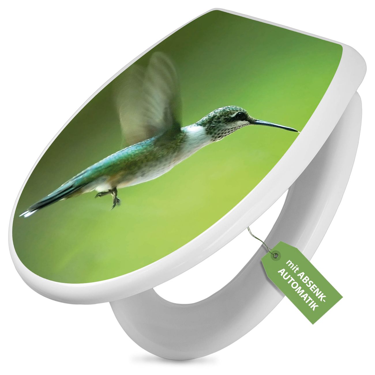Toilettendeckel weiß mit Absenkautomatik Motiv Kolibri