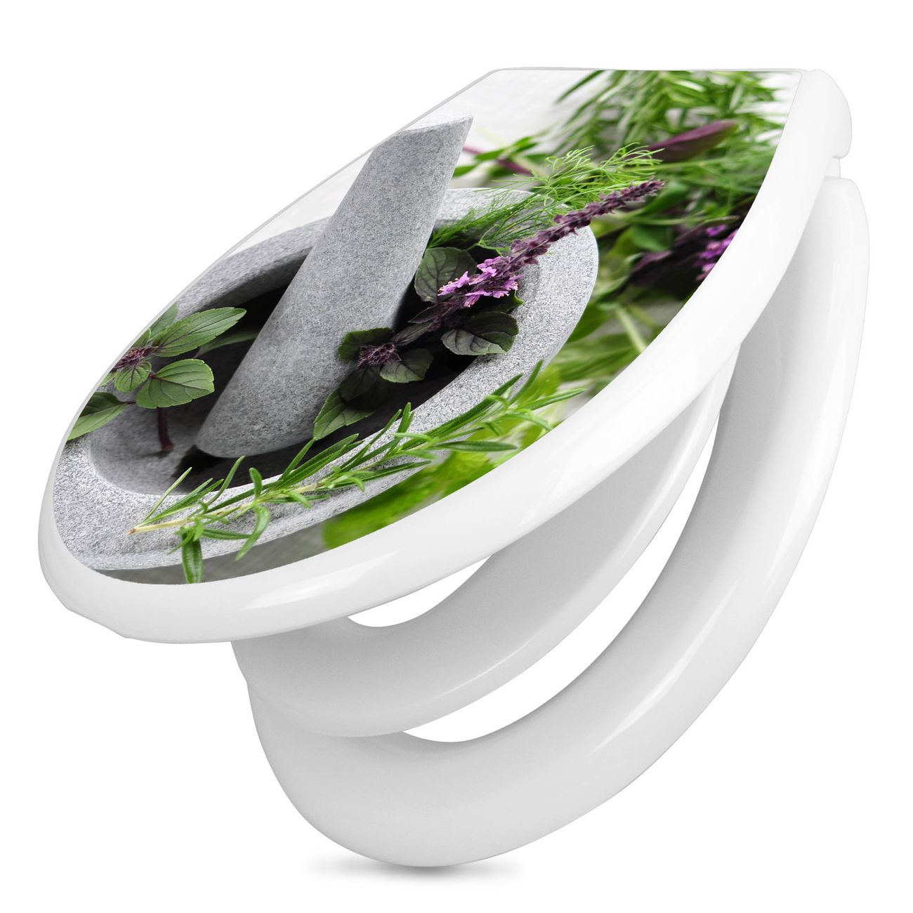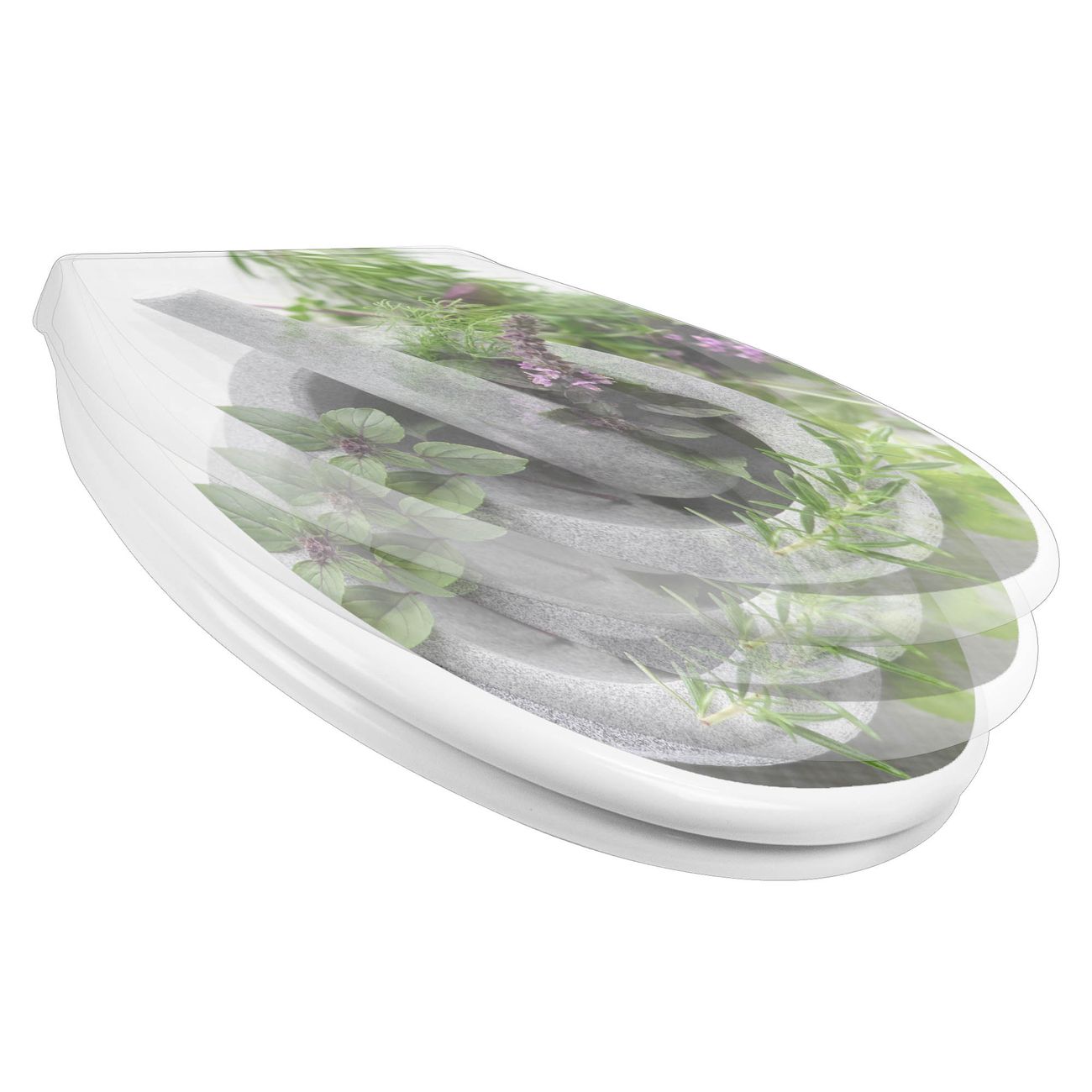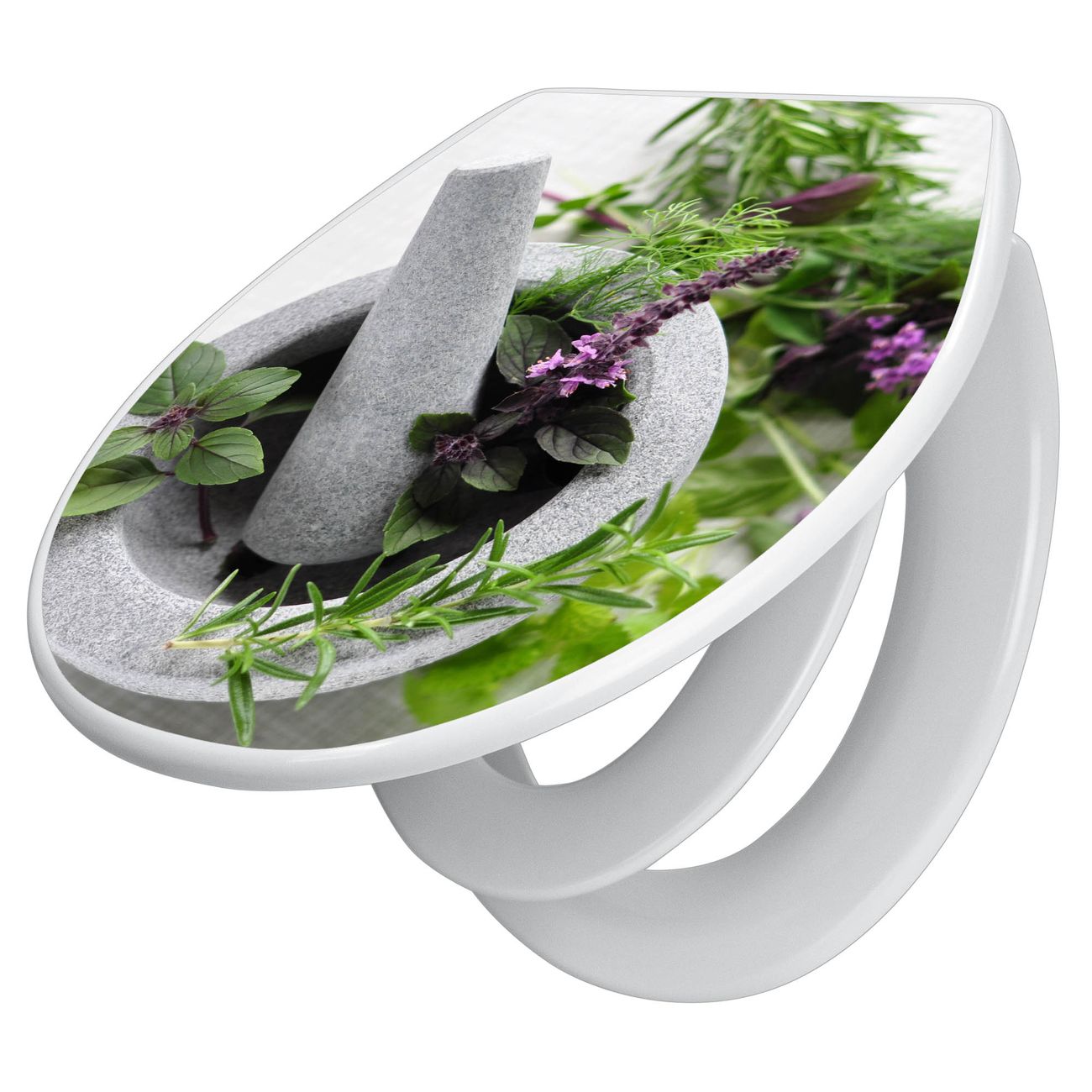Toilettendeckel weiß mit Absenkautomatik Motiv Kräuter