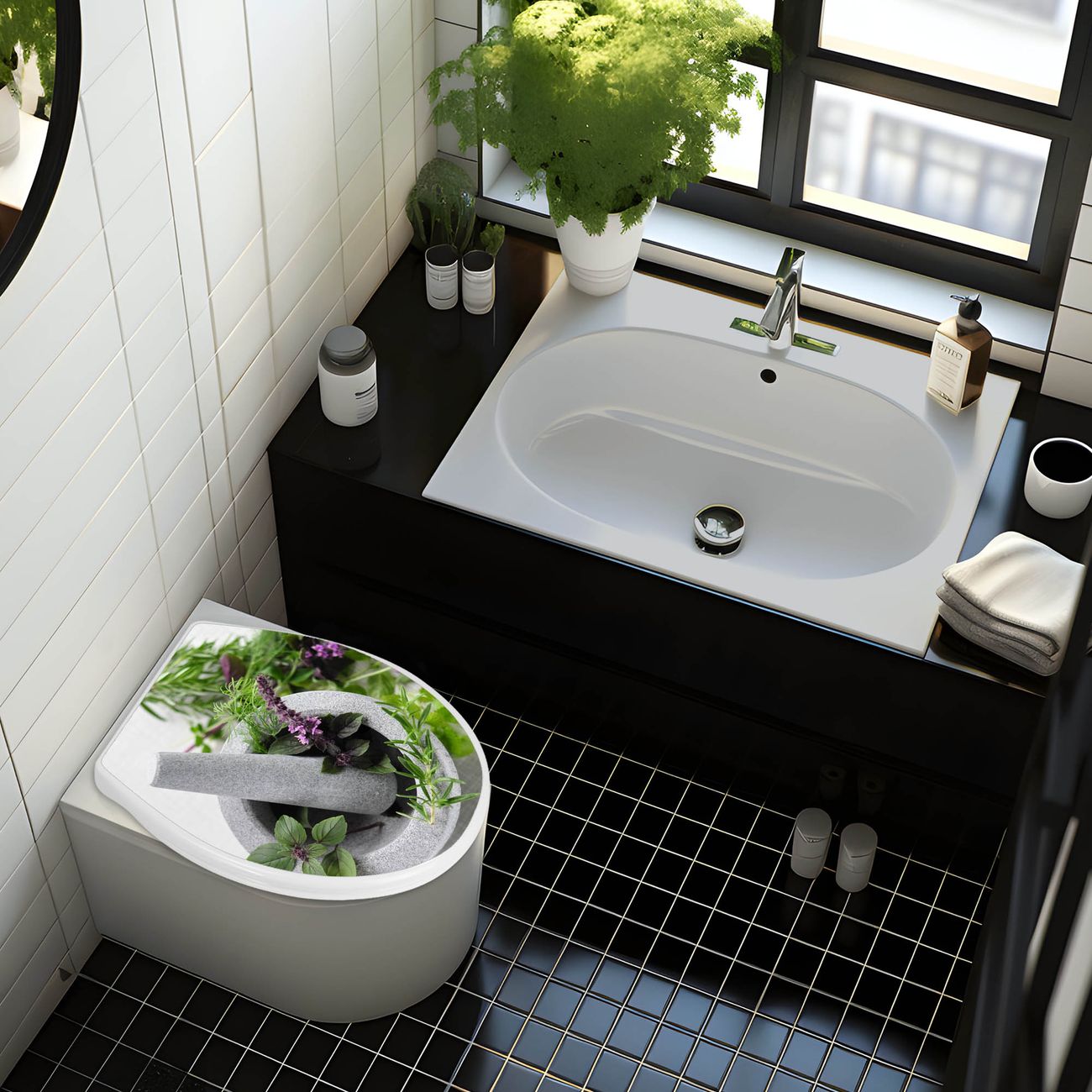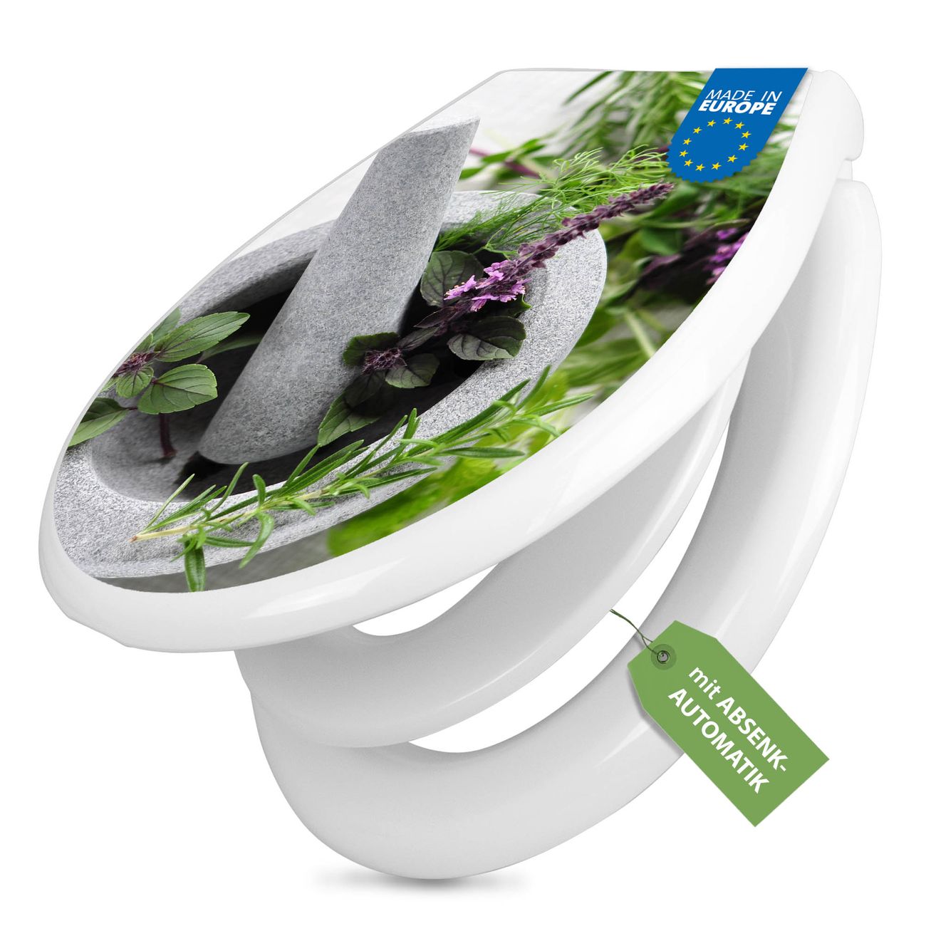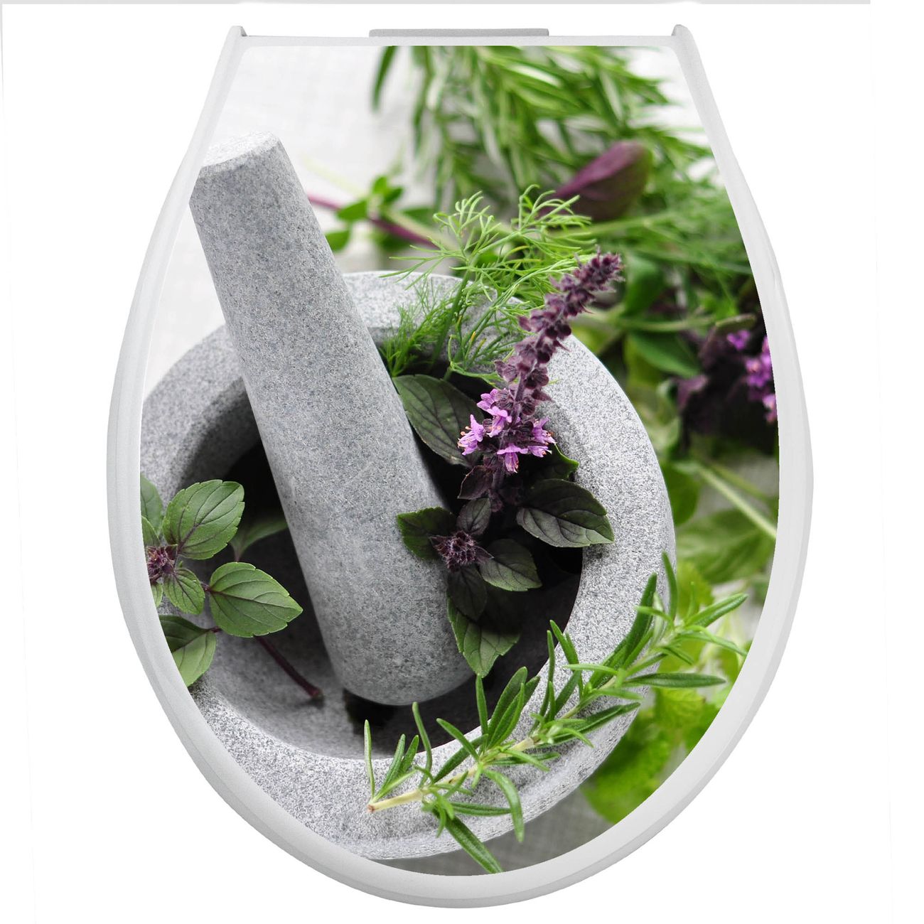 Toilettendeckel weiß mit Absenkautomatik Motiv Kräuter