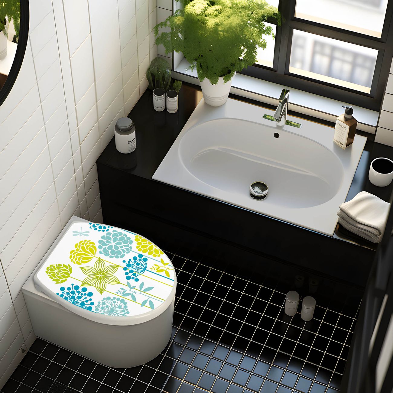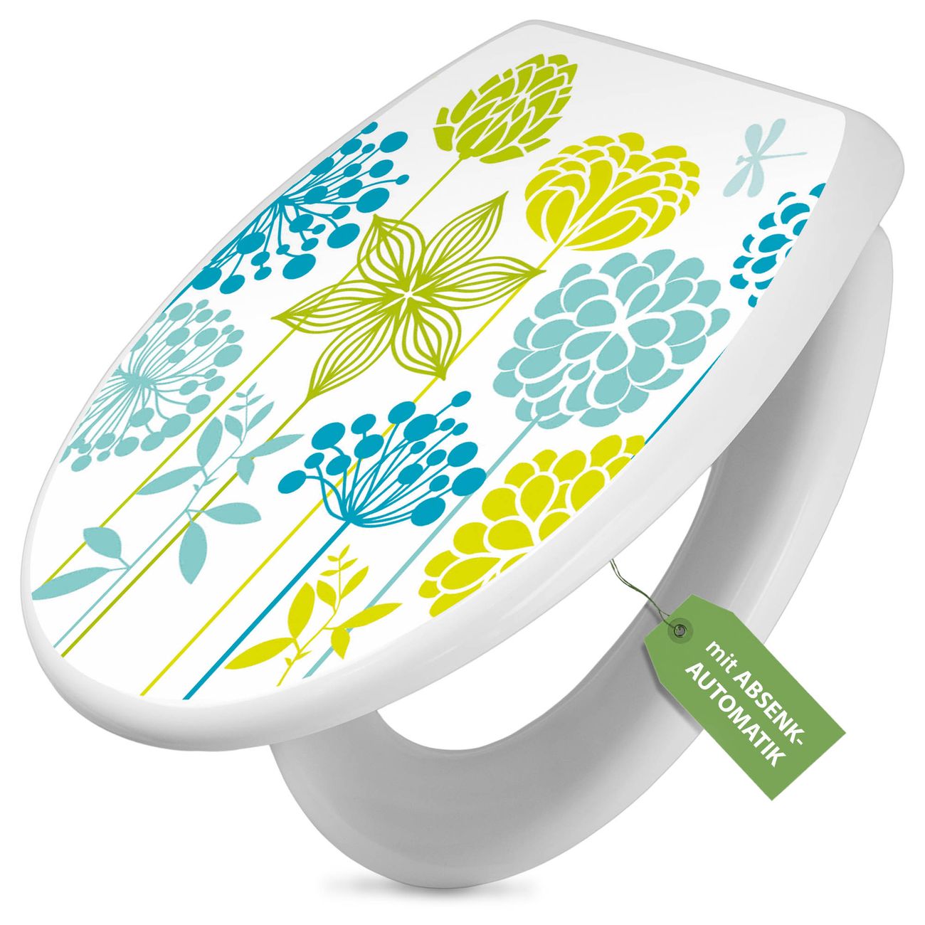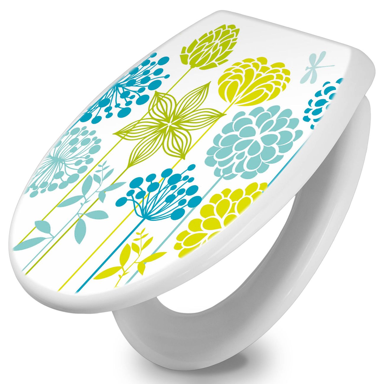 Toilettendeckel weiß mit Absenkautomatik Motiv Kräuterwiese