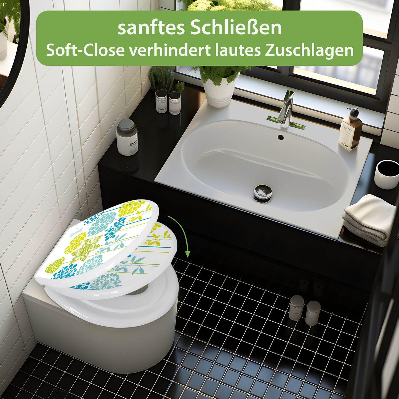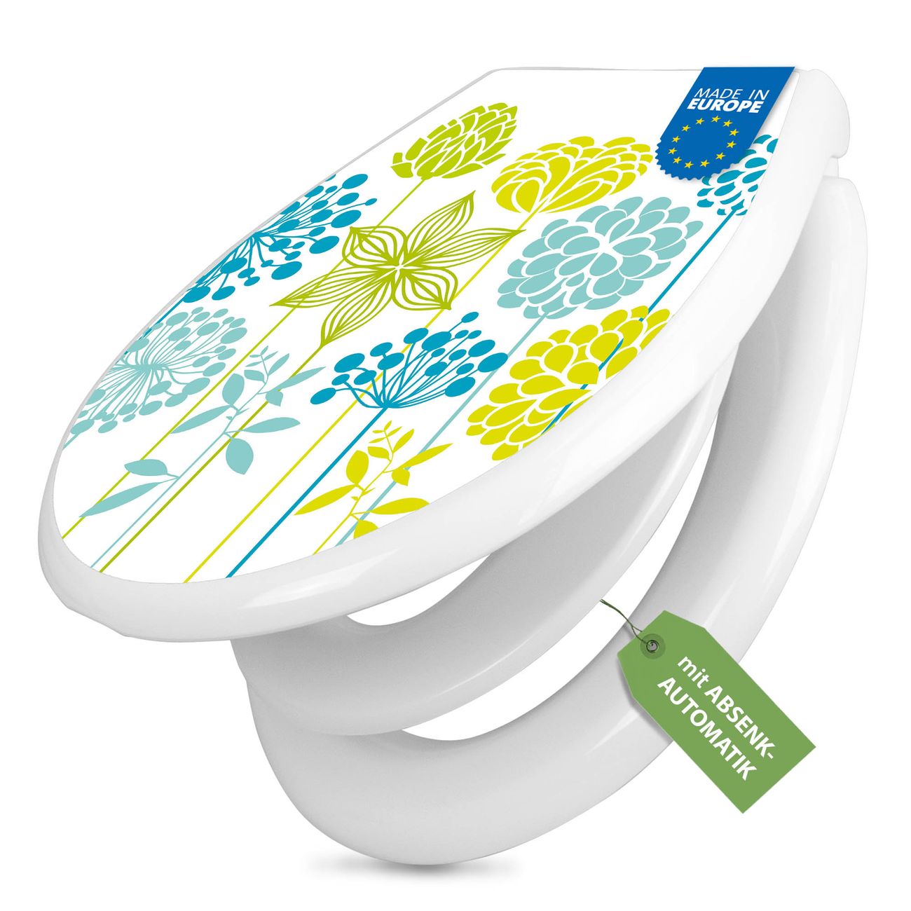 Toilettendeckel weiß mit Absenkautomatik Motiv Kräuterwiese