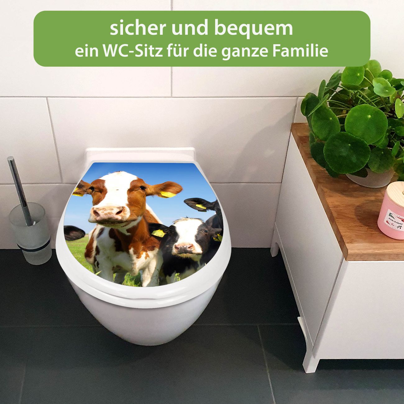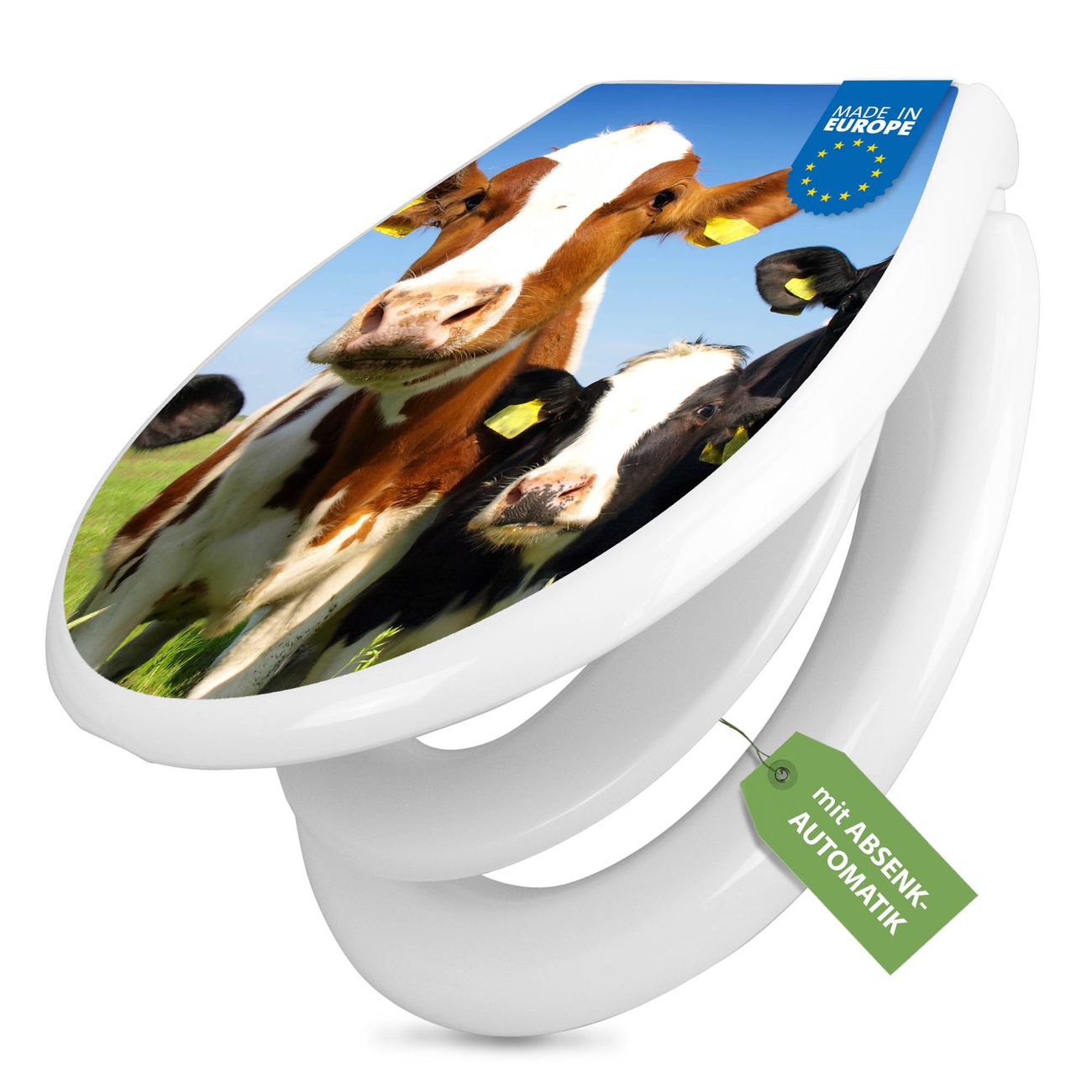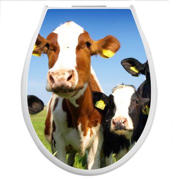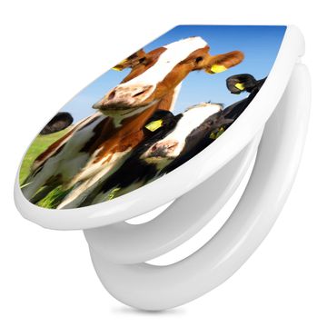 Toilettendeckel weiß mit Absenkautomatik Motiv Kühe
