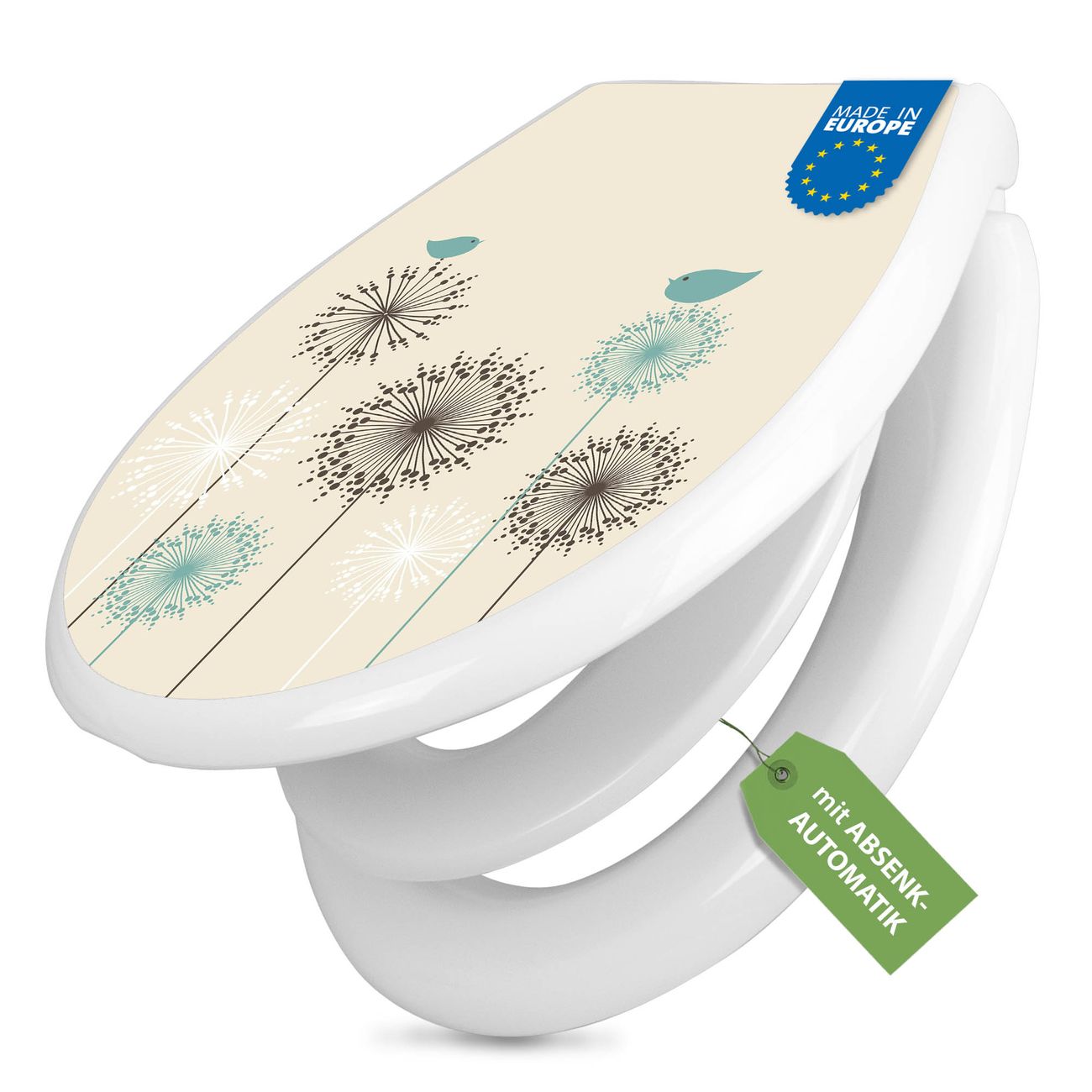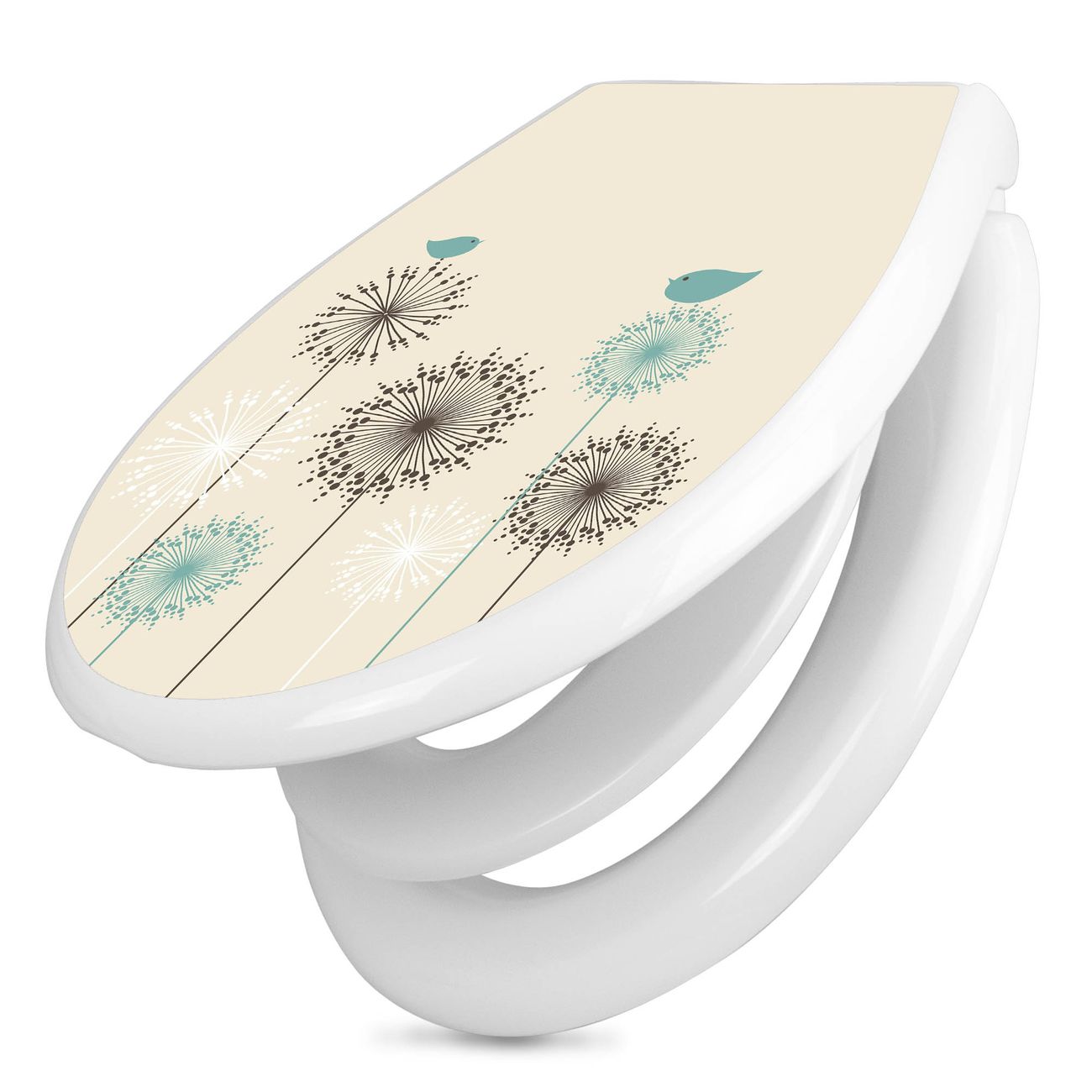 Toilettendeckel weiß mit Absenkautomatik Motiv Kugelfontänen