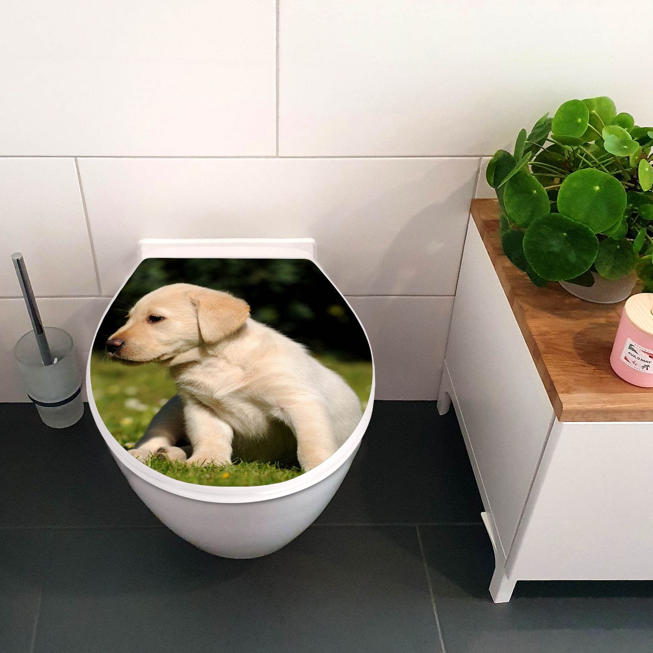 Toilettendeckel weiß mit Absenkautomatik Motiv Labrador