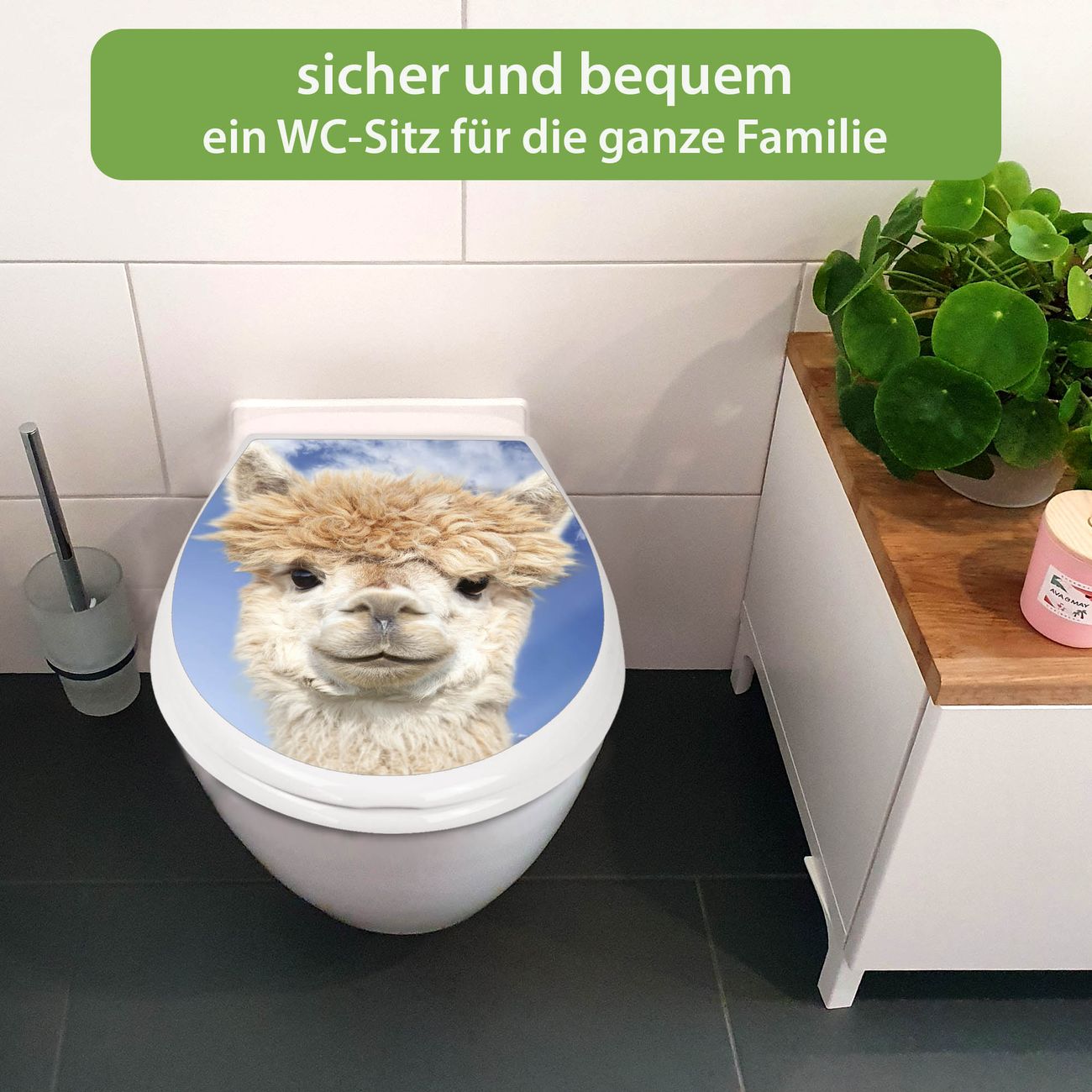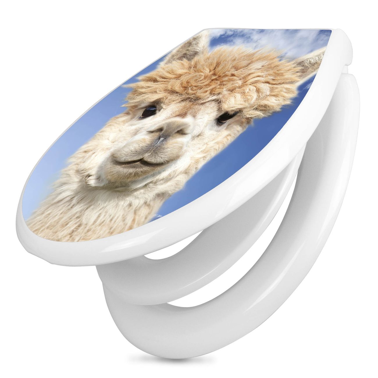 Toilettendeckel weiß mit Absenkautomatik Motiv Lama