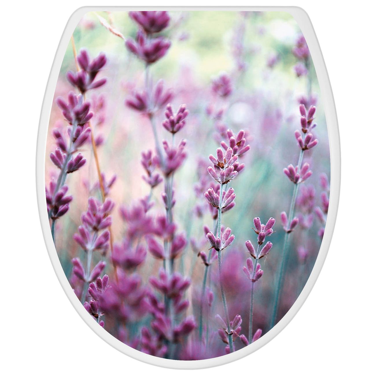 Toilettendeckel weiß mit Absenkautomatik Motiv Lavendel 2