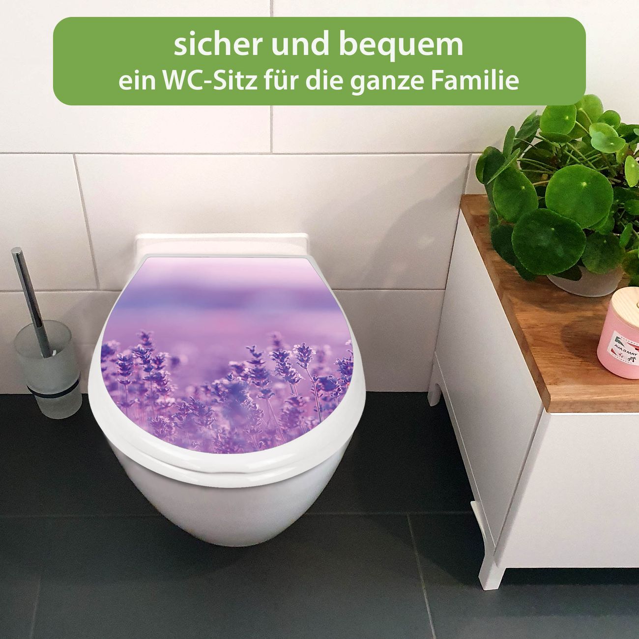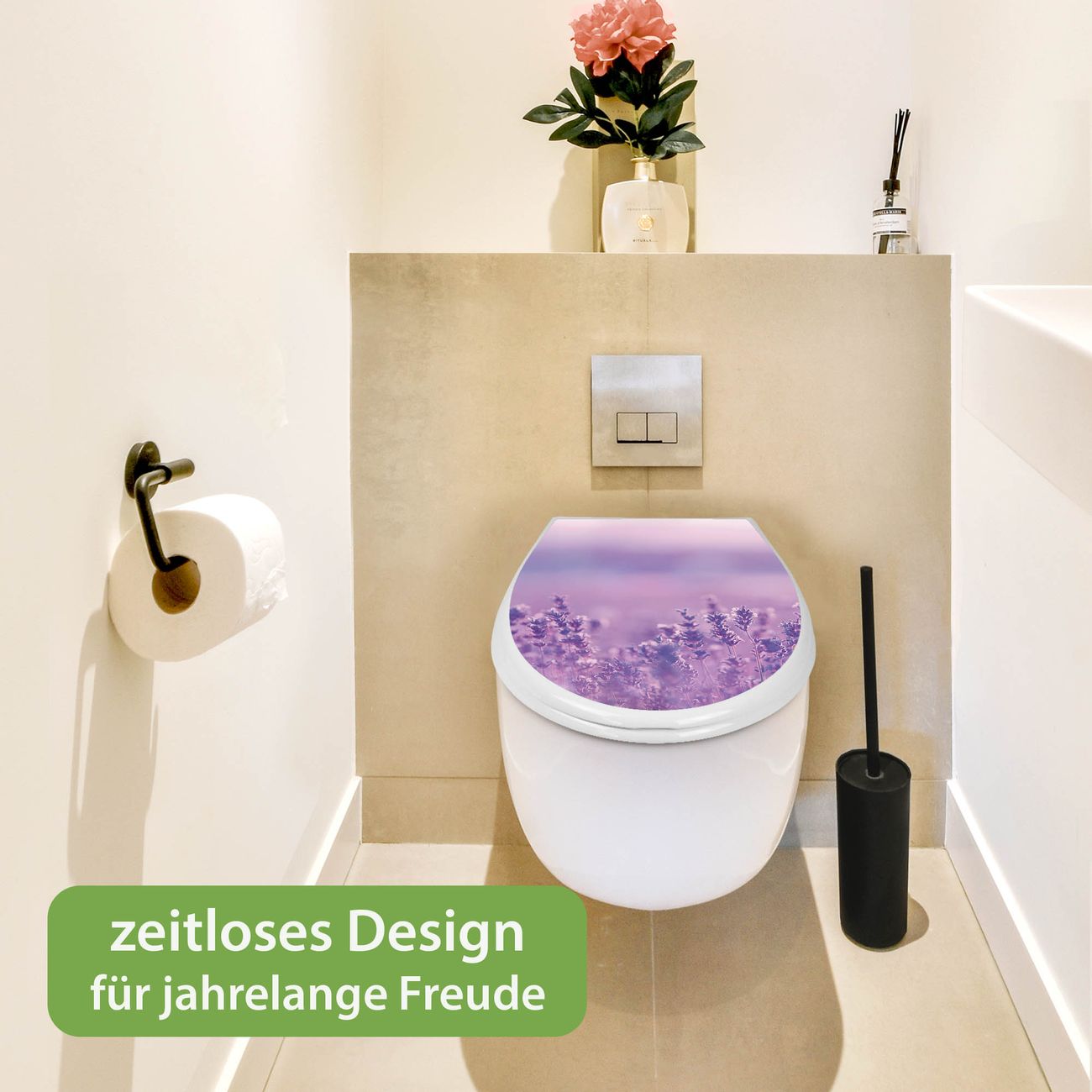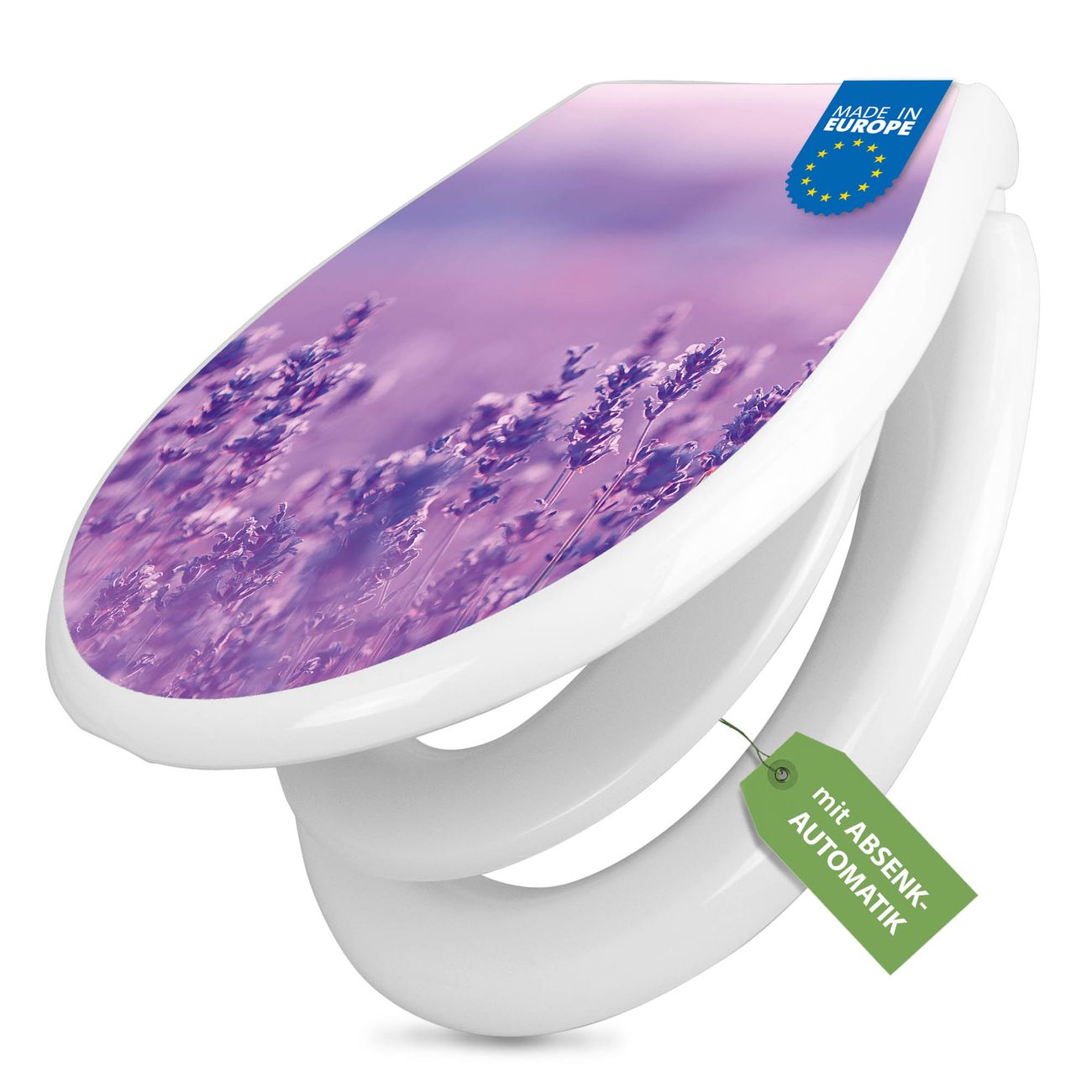 Toilettendeckel weiß mit Absenkautomatik Motiv Lavendelmeer