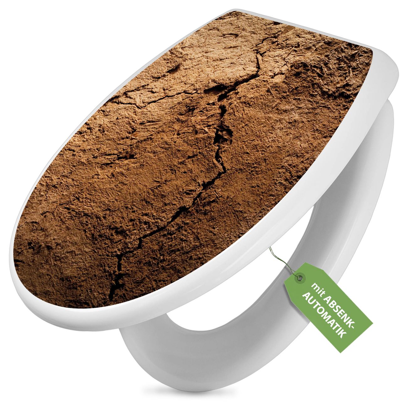 Toilettendeckel weiß mit Absenkautomatik Motiv Lehmboden